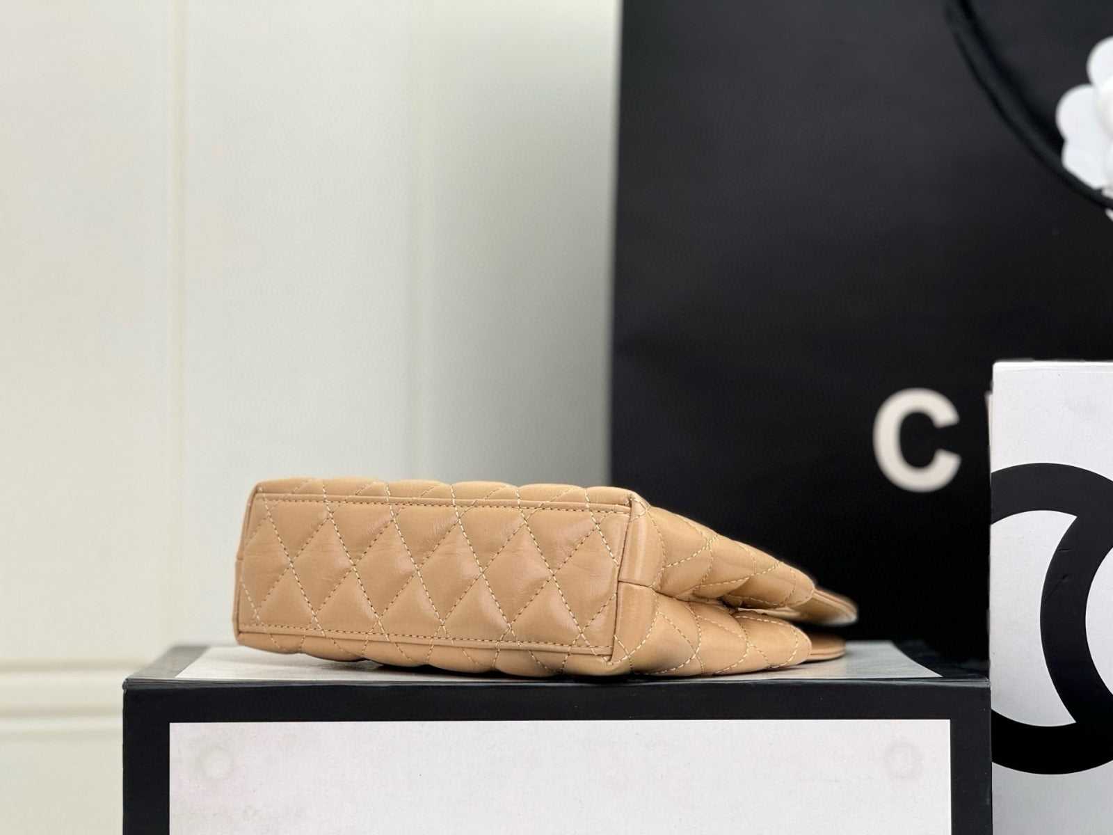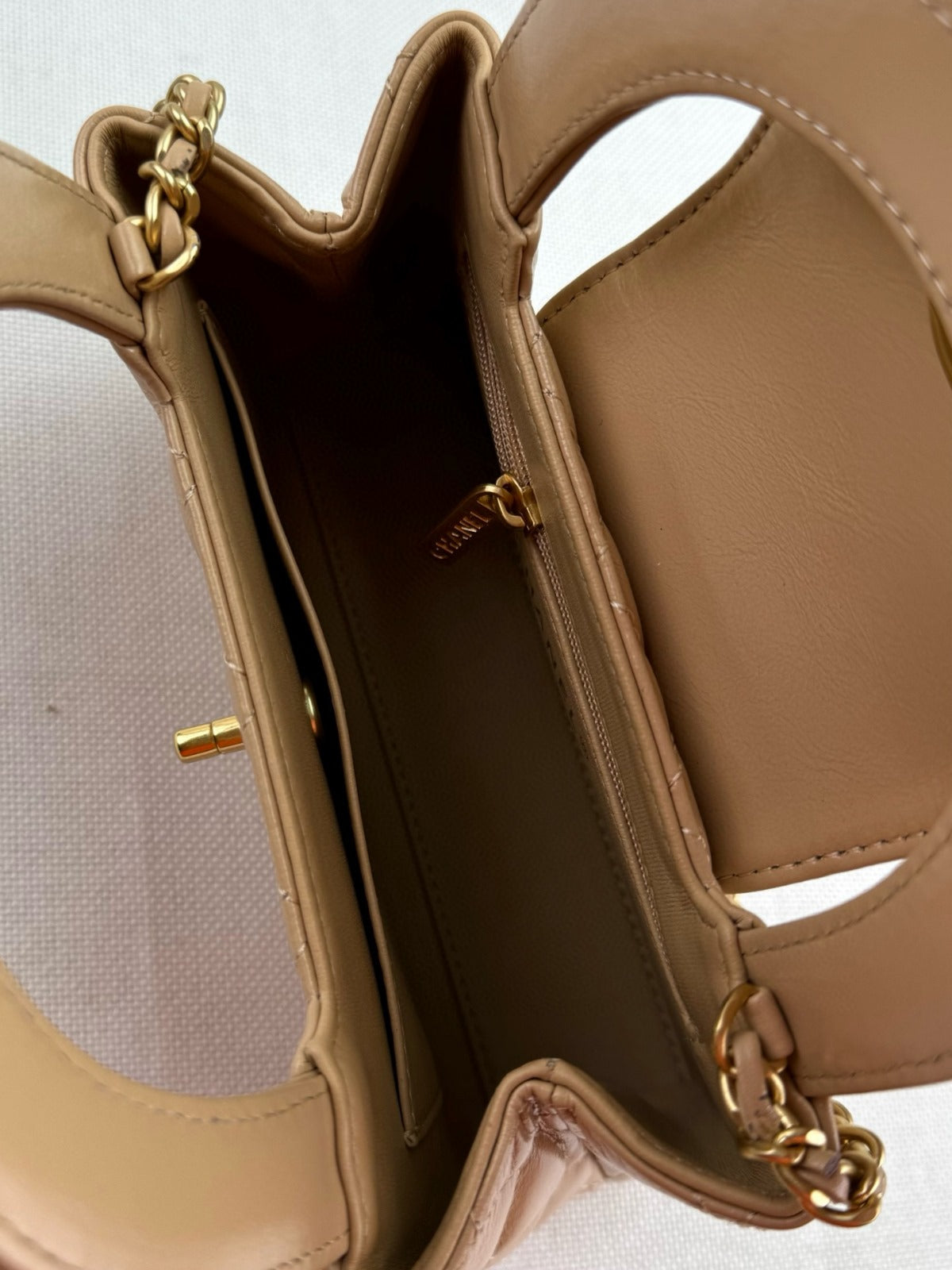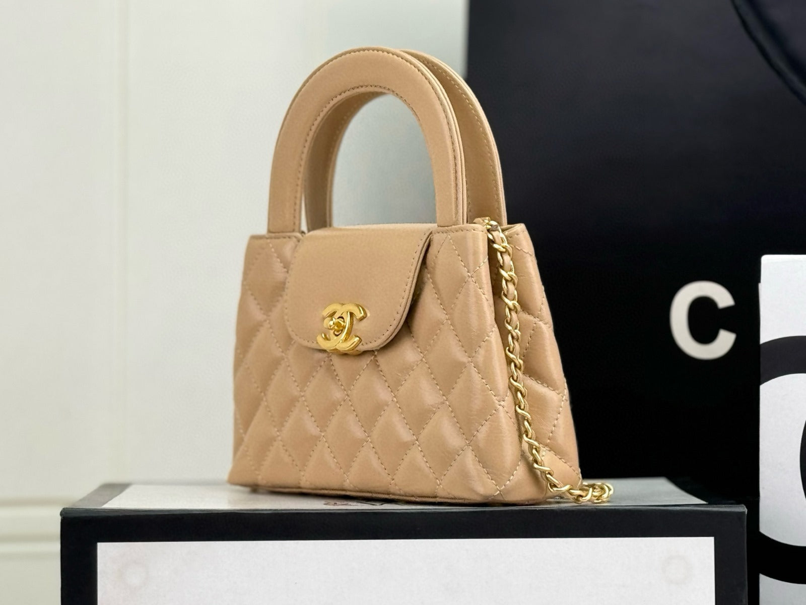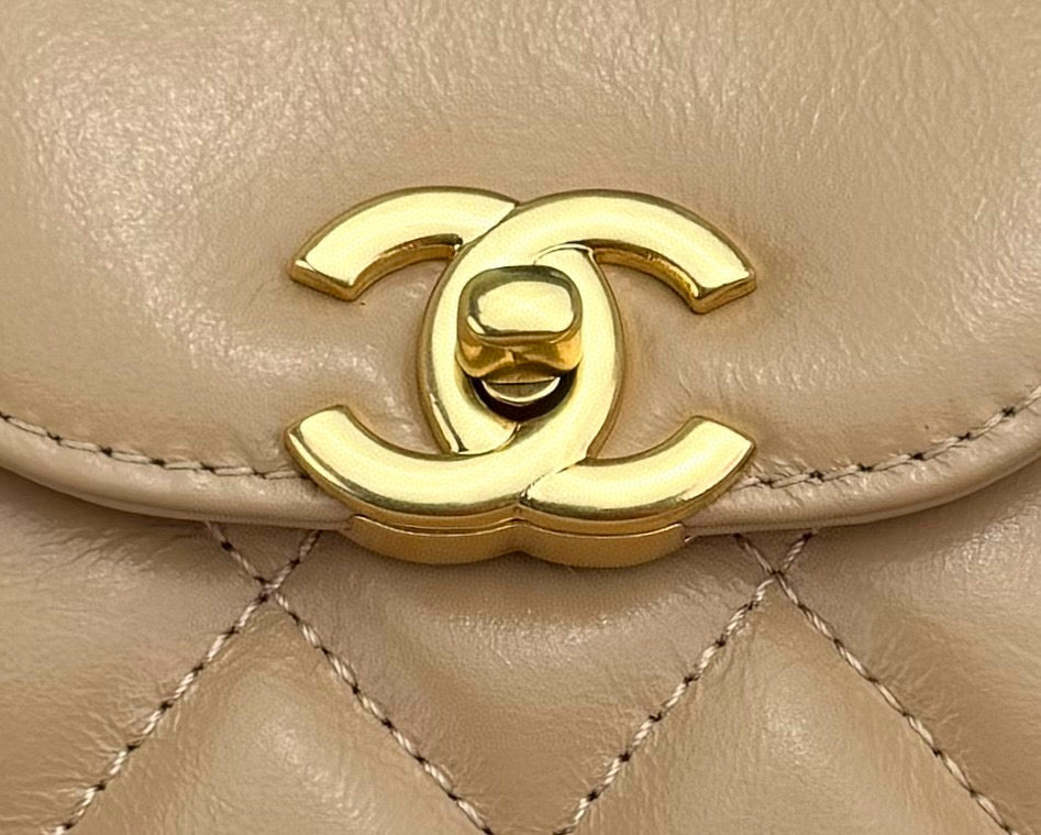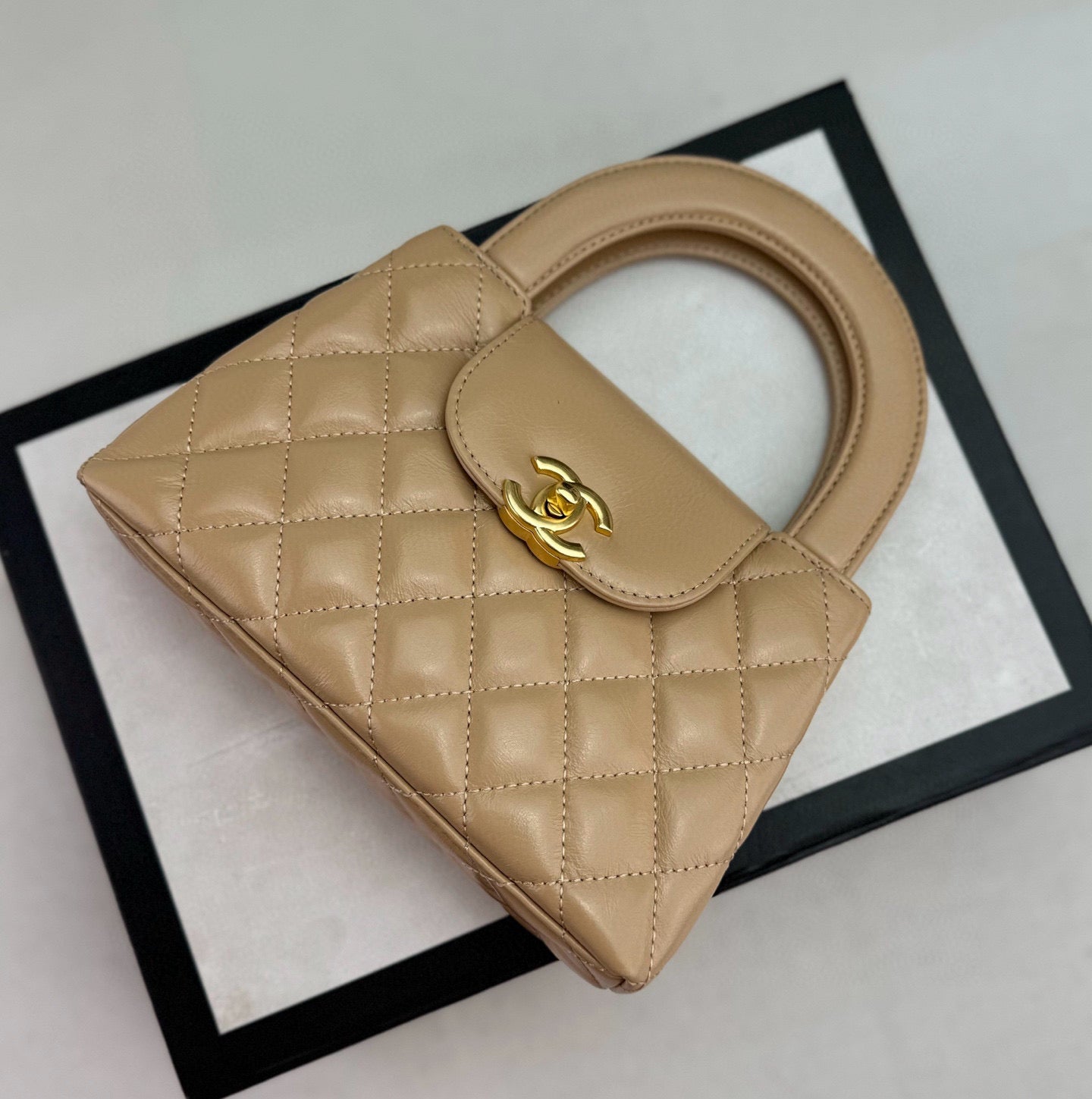 cc 24a nano 19cm kelly shopper bag beige lambskin