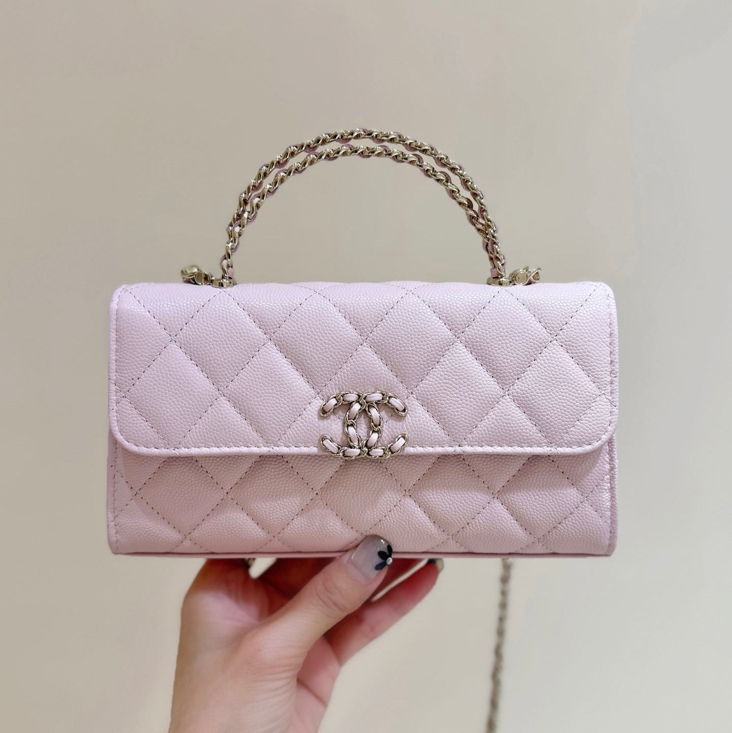 CC 25P Flap Bag Top Handle 18.5cm Black Grained Calfskin