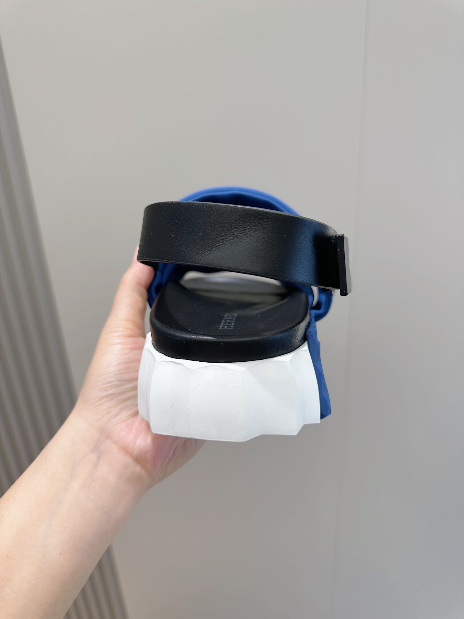 HM ELECTRIC SANDAL COBALT FABRIC AND CALFSKIN