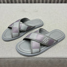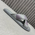 • Premium LV men's slippers, synchronizing with the 2024 early autumn runway collection. The slippers feature a high-quality fabric upper and an original, exclusive comfort sole, ensuring exceptional comfort. These are original factory-followed products.
