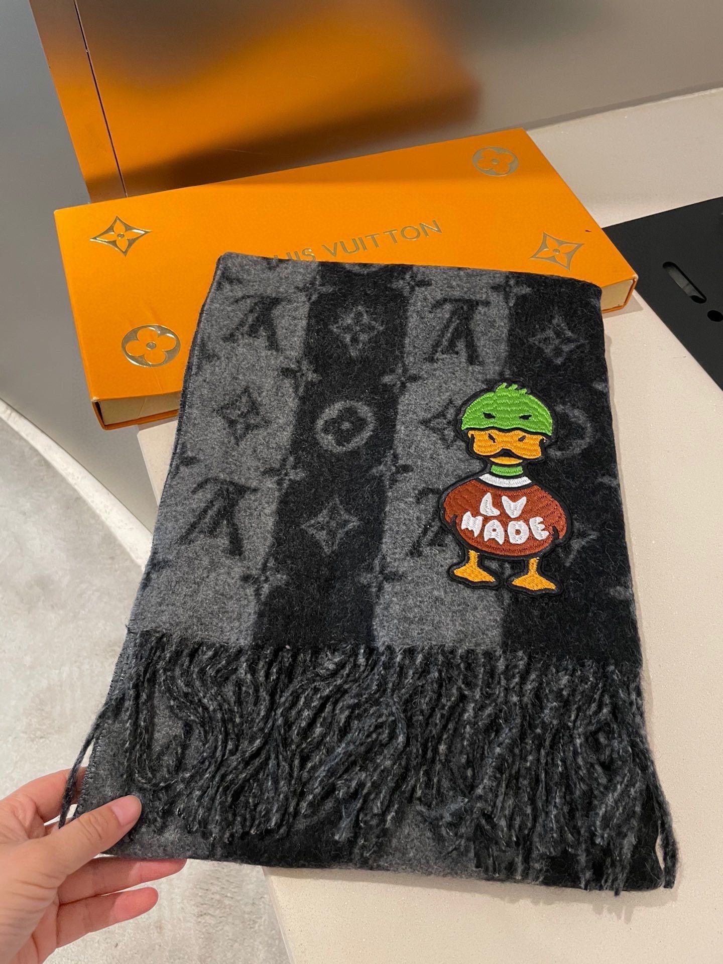 TIGER PATTERN SCARF 205 CM IN BLACK CASHMERE 390875