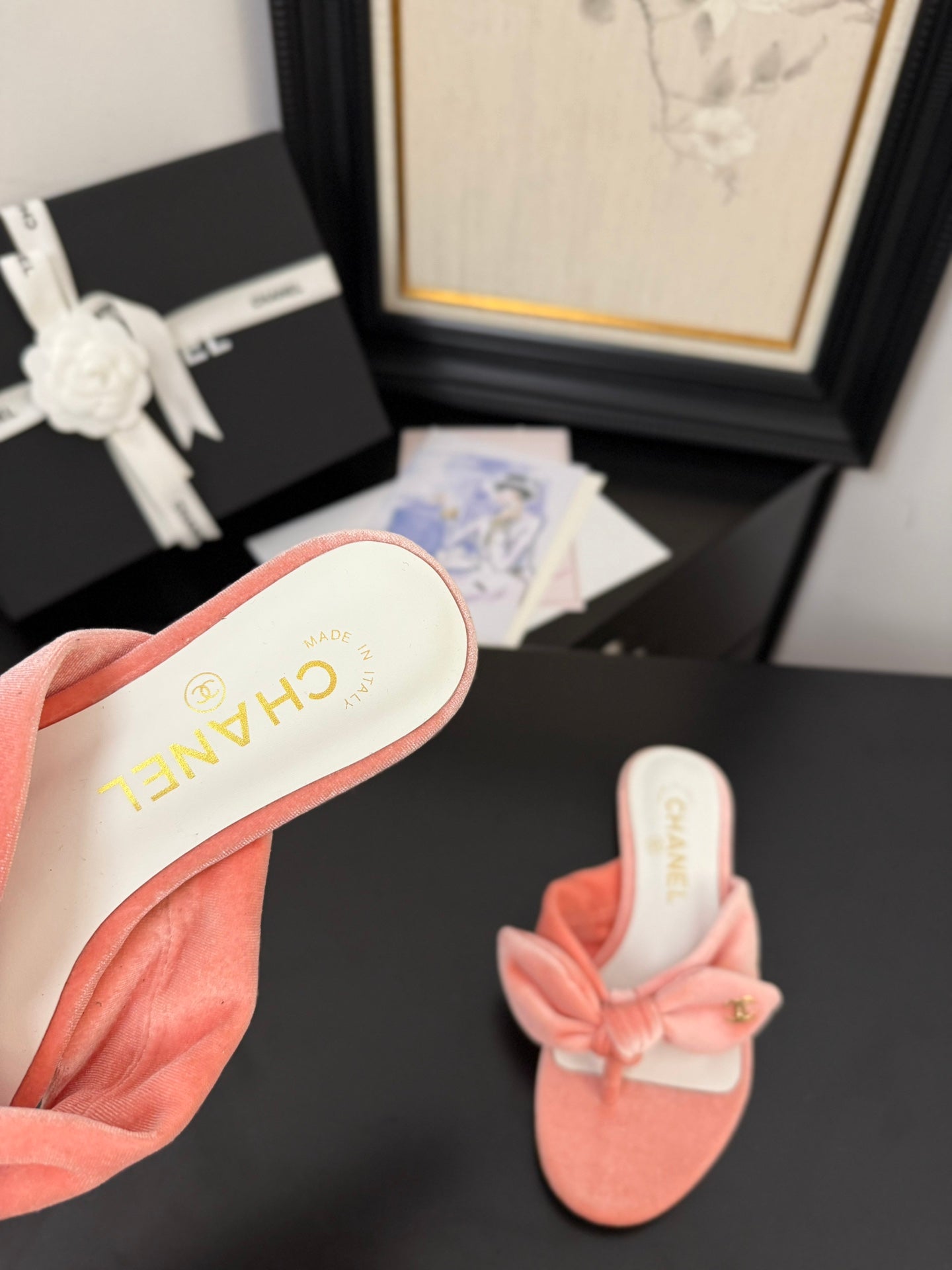 CC 25C Thong Sandal Bow Pink Velvet fabric 233567