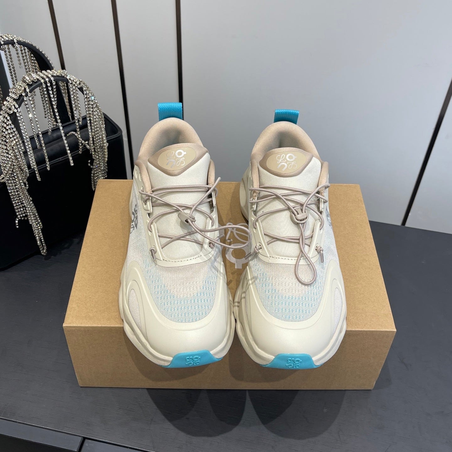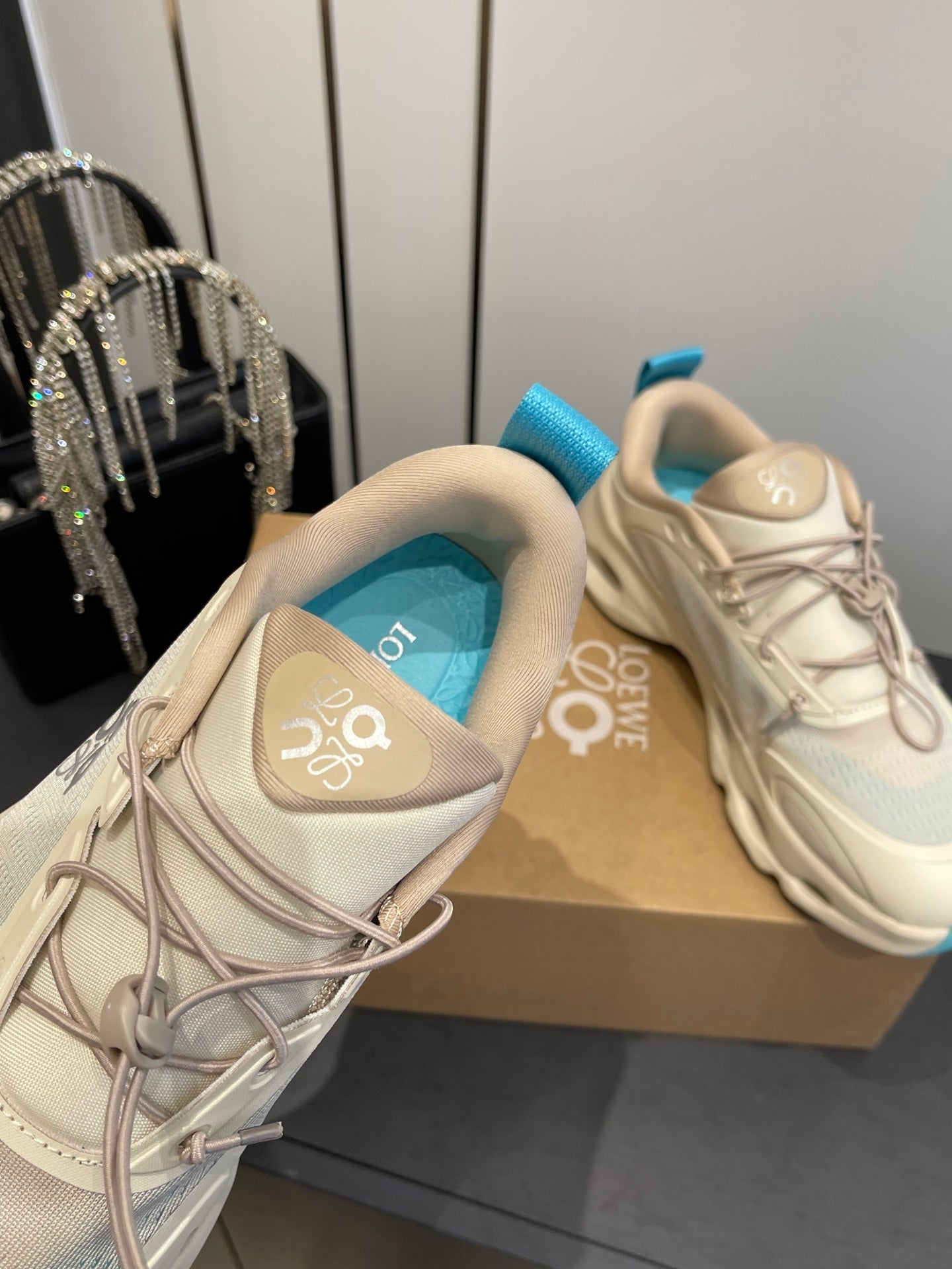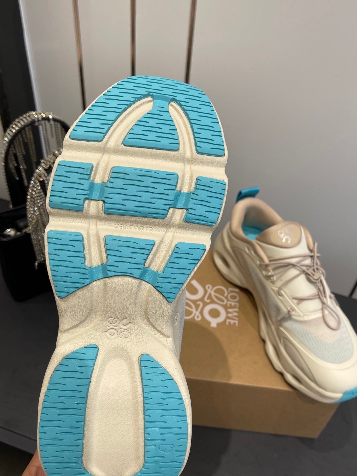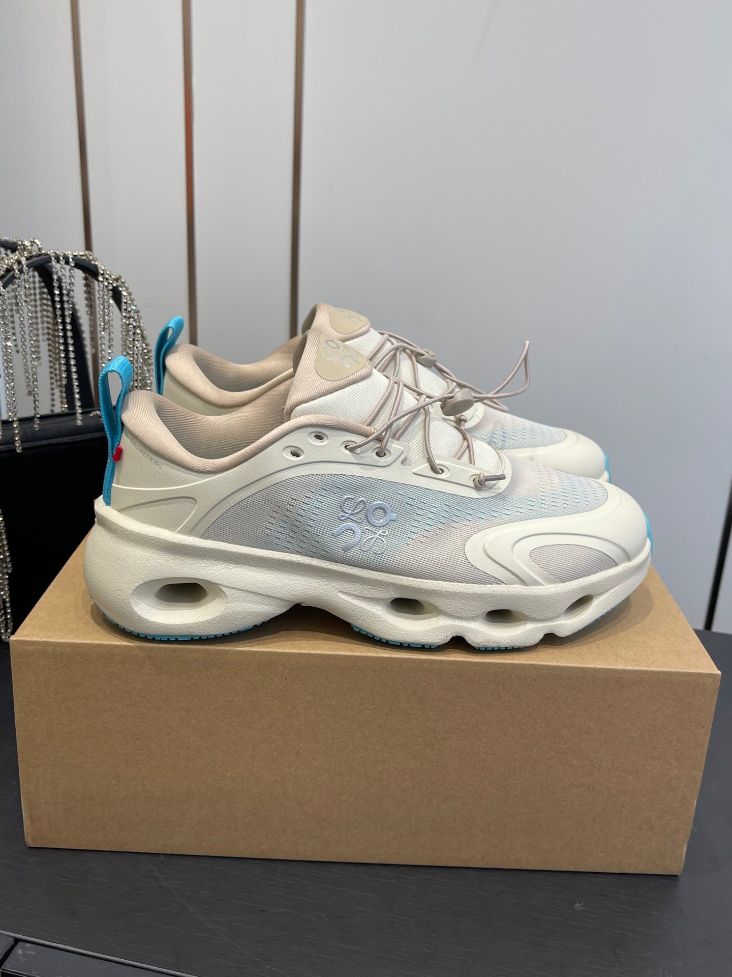 Loewe x On Cloudsolo Sneakers Cream and Light Blue Polyester and Mesh 533481