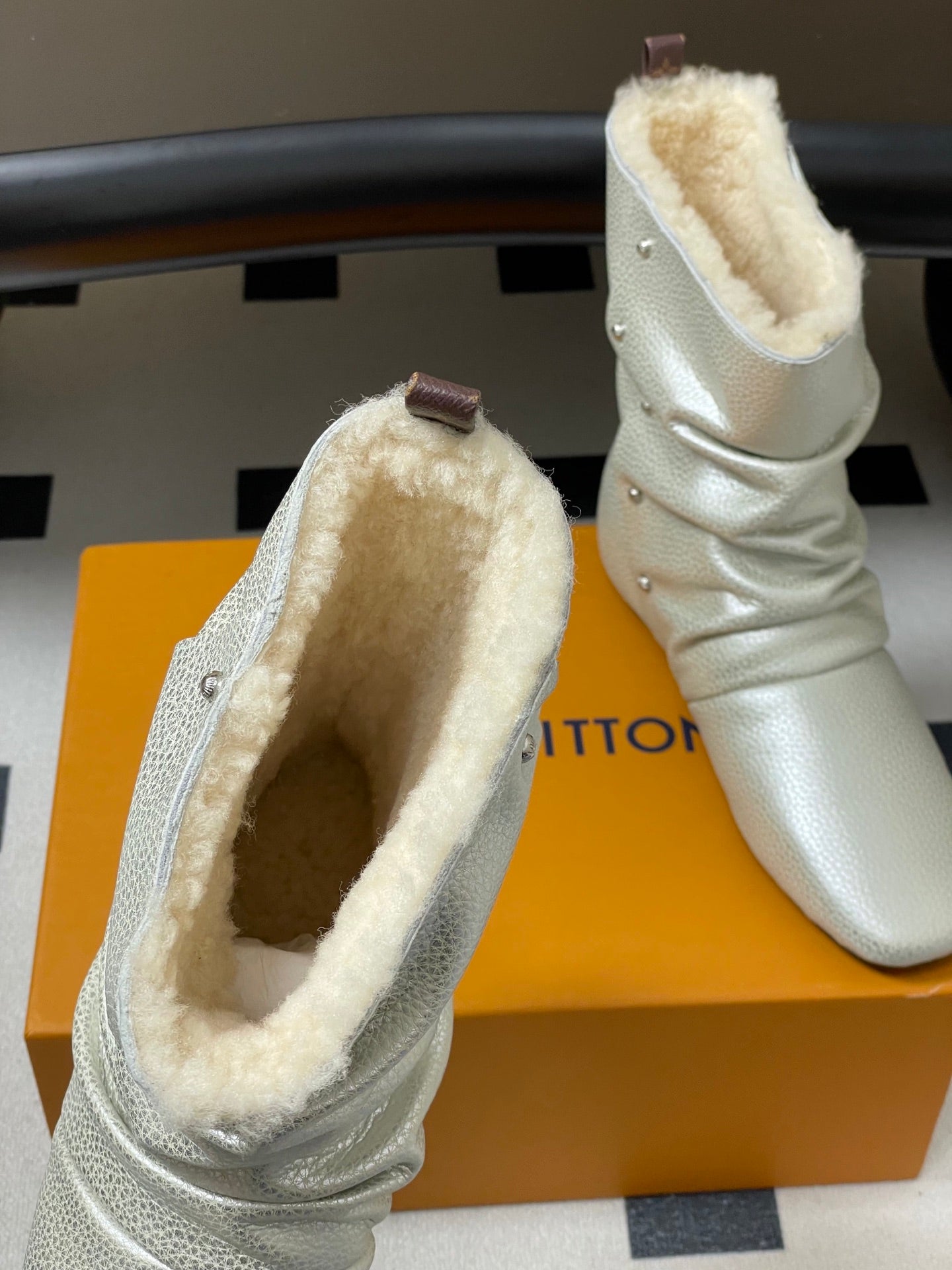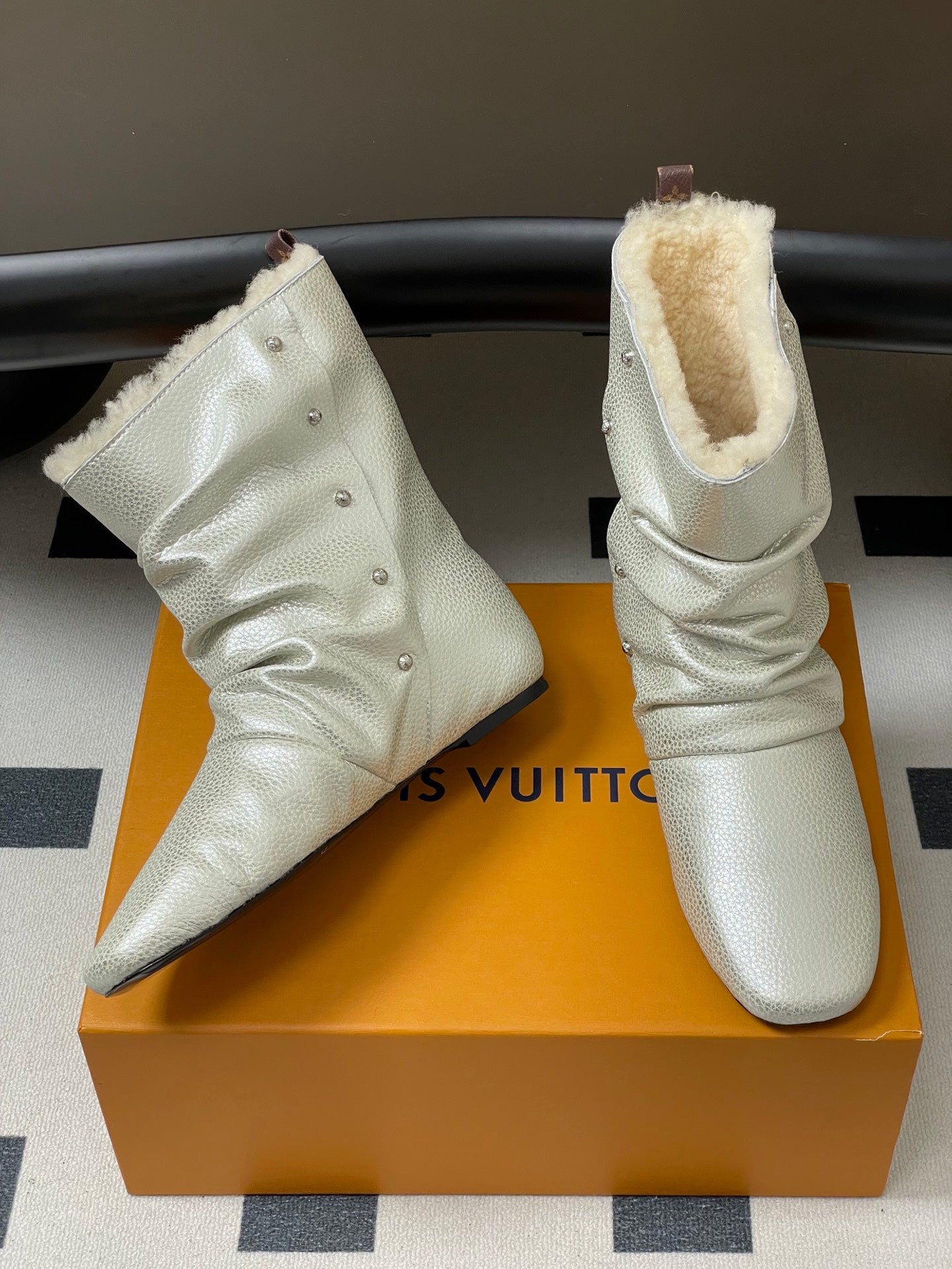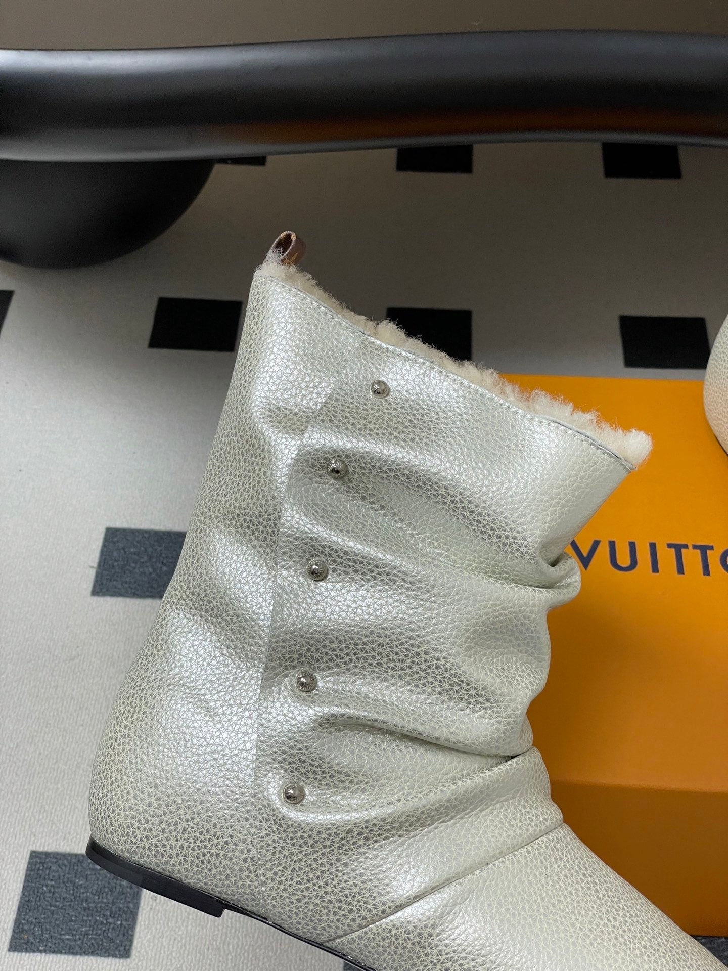 LV 25Fw Nomad Slip-on Ankle Boots Flat Silver Grain Leather Wool-lined 534593