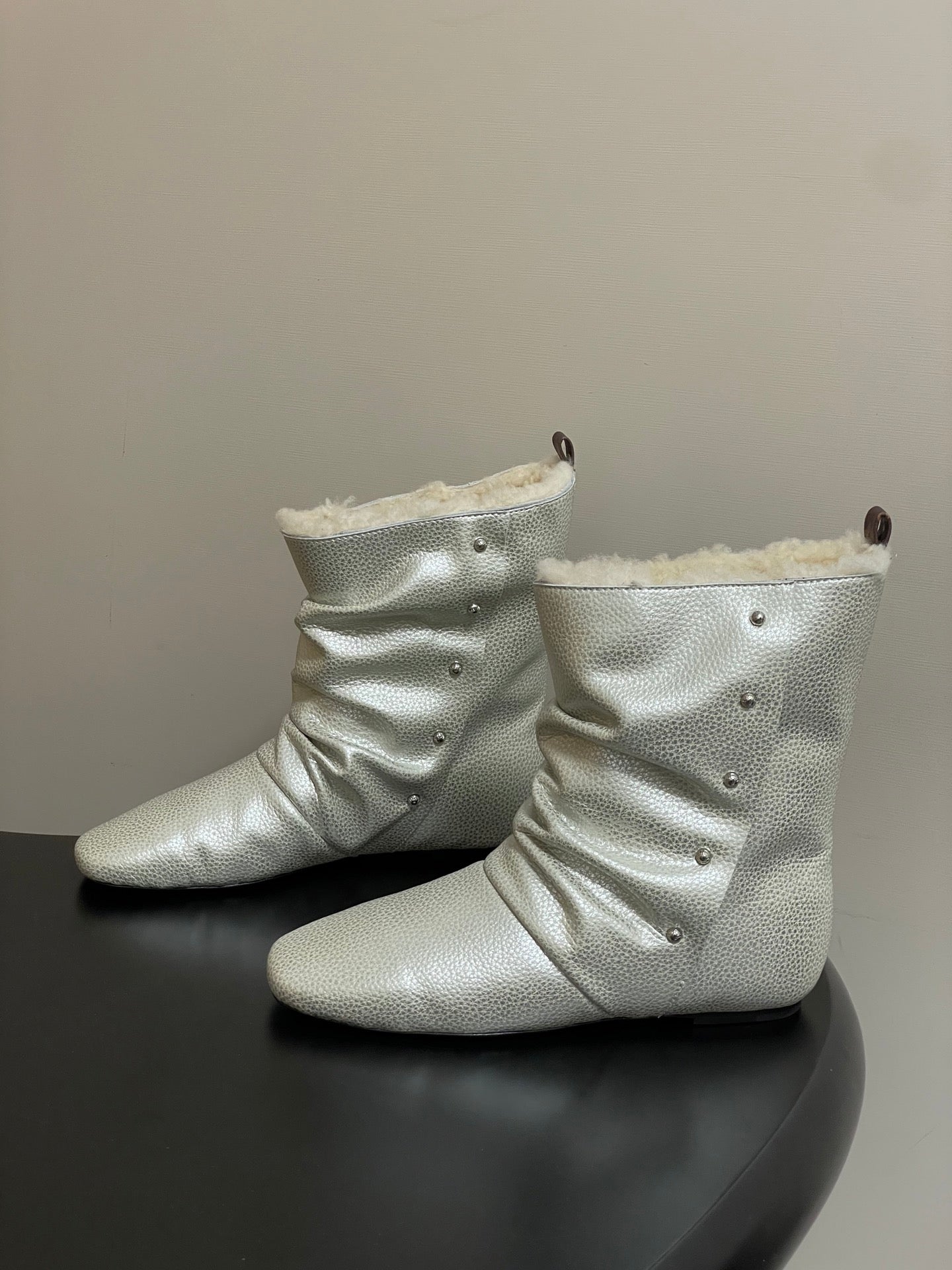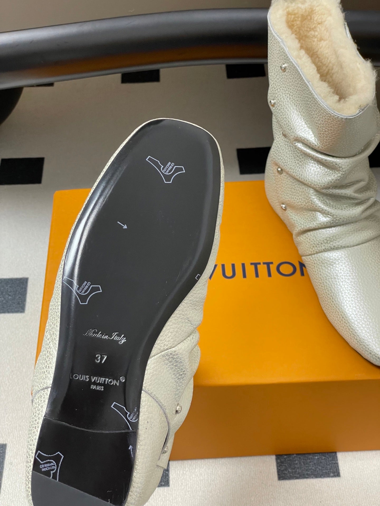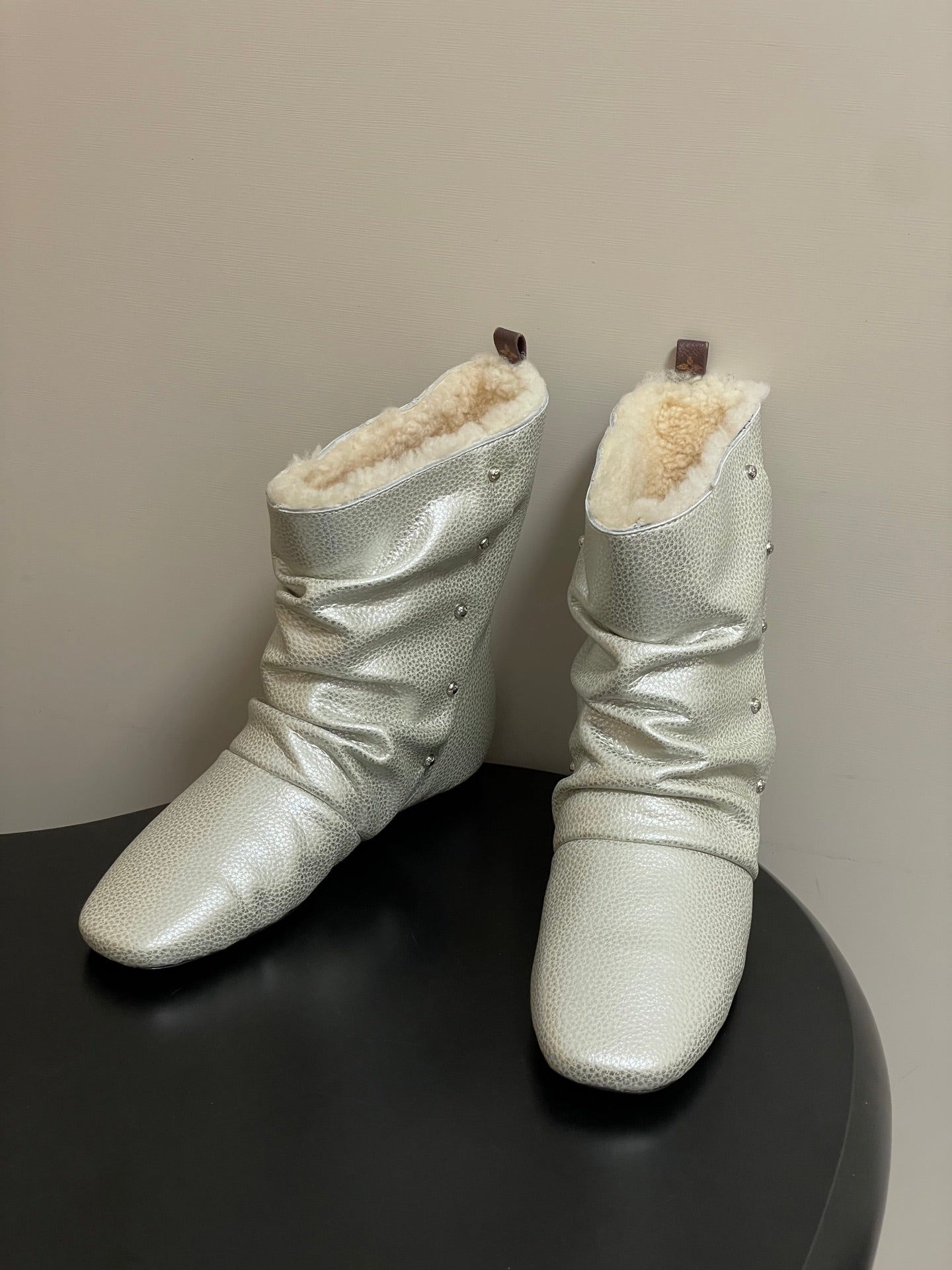 LV 25Fw Nomad Slip-on Ankle Boots Flat Silver Grain Leather Wool-lined 534593