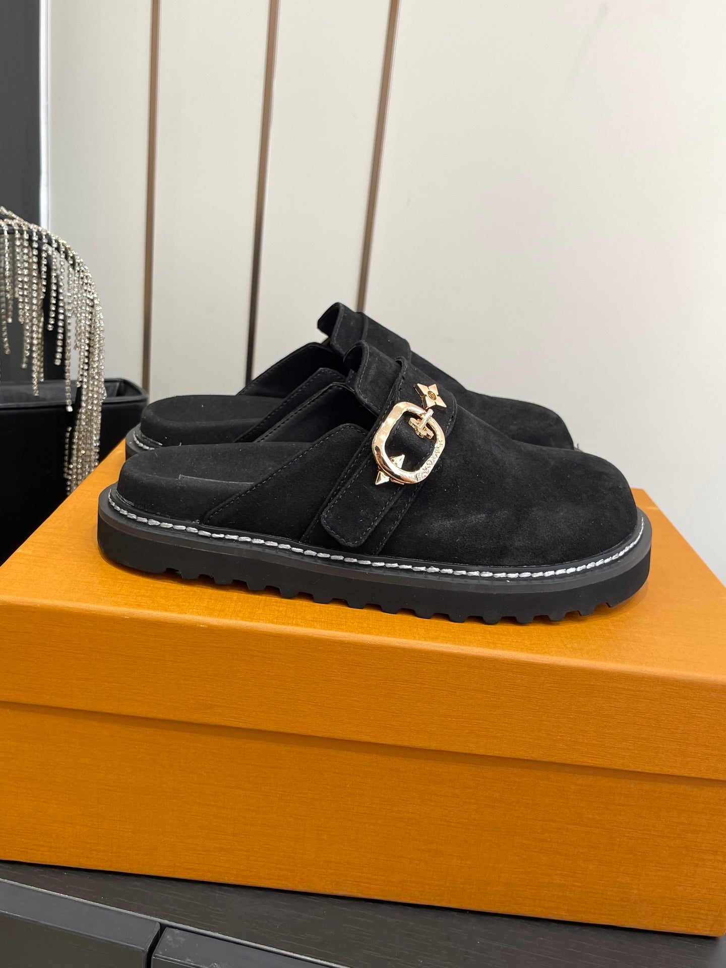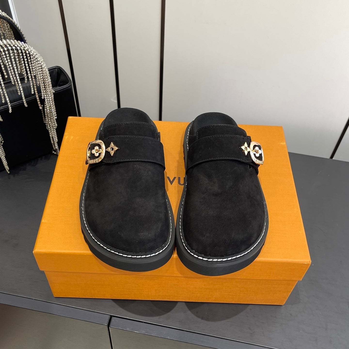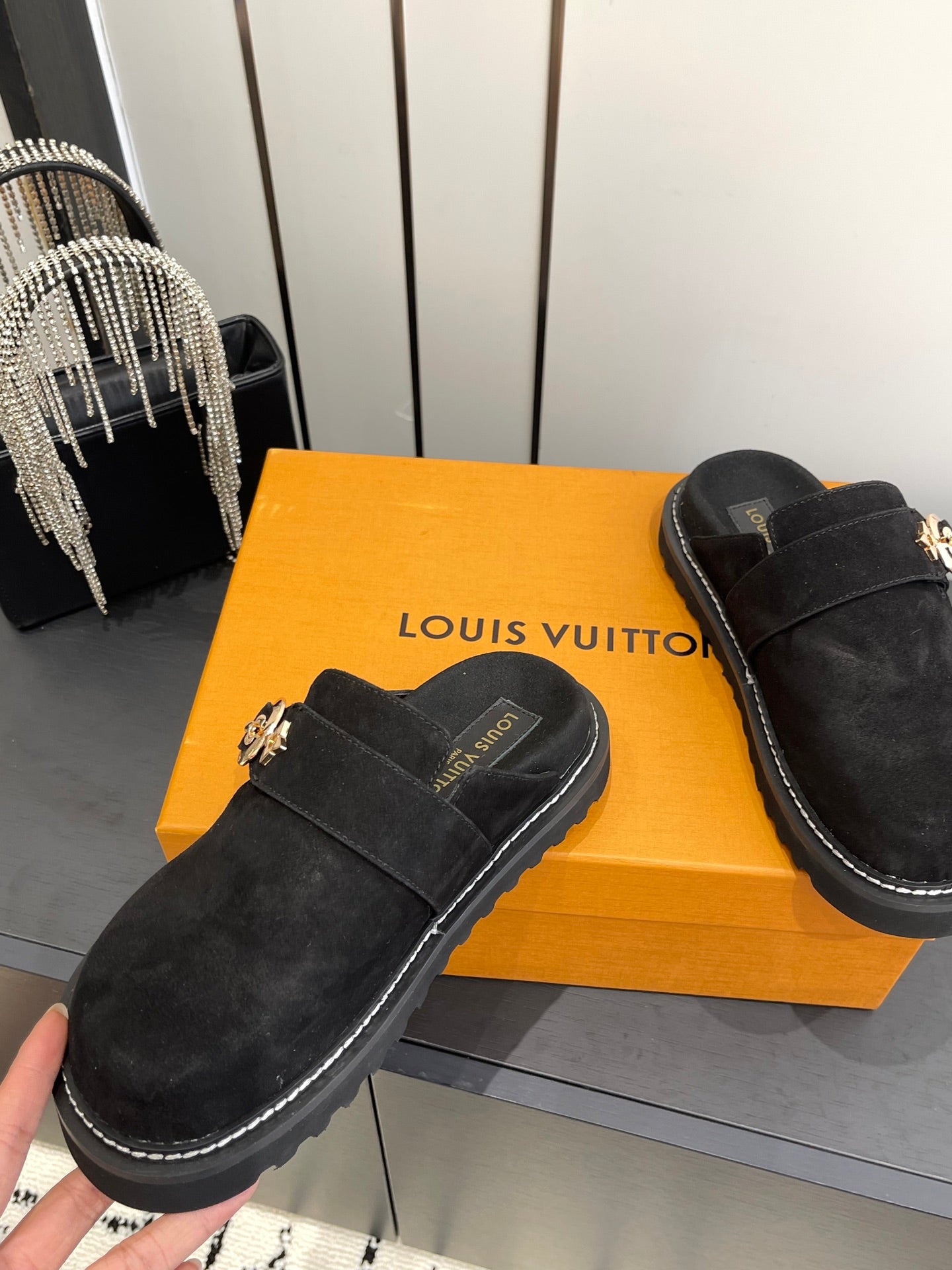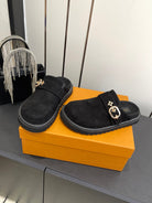 LV Cosy Comfort Mule Sandals Black Gold Suede 533465