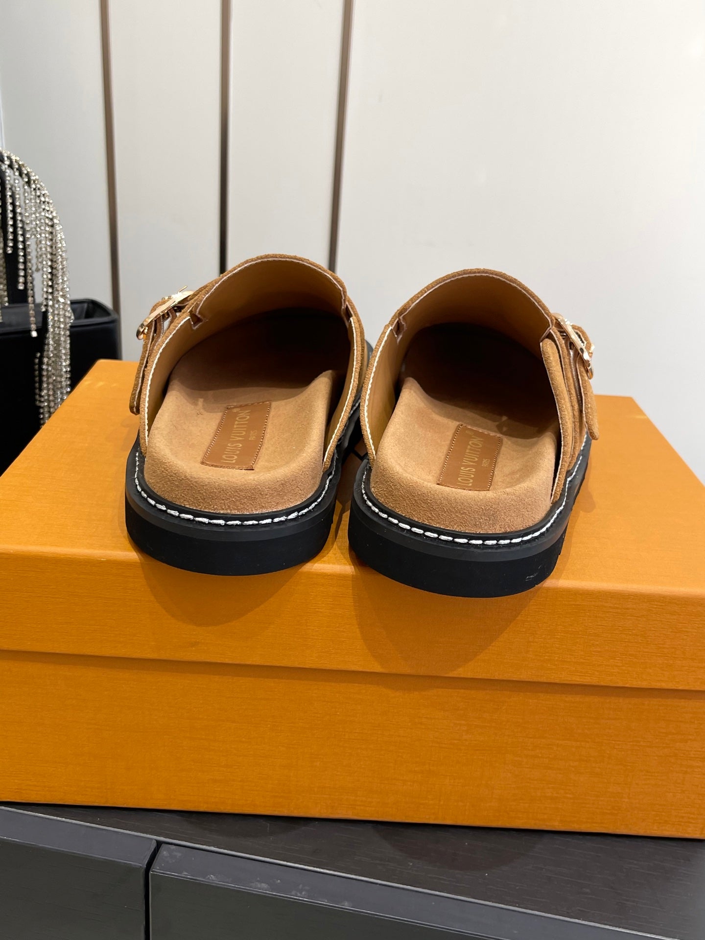 LV Cosy Comfort Mule Sandals Brown Gold Suede 533466