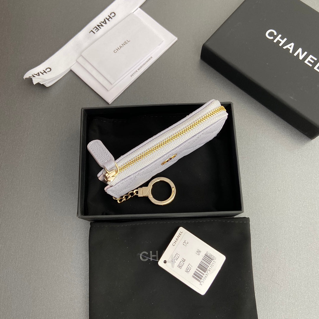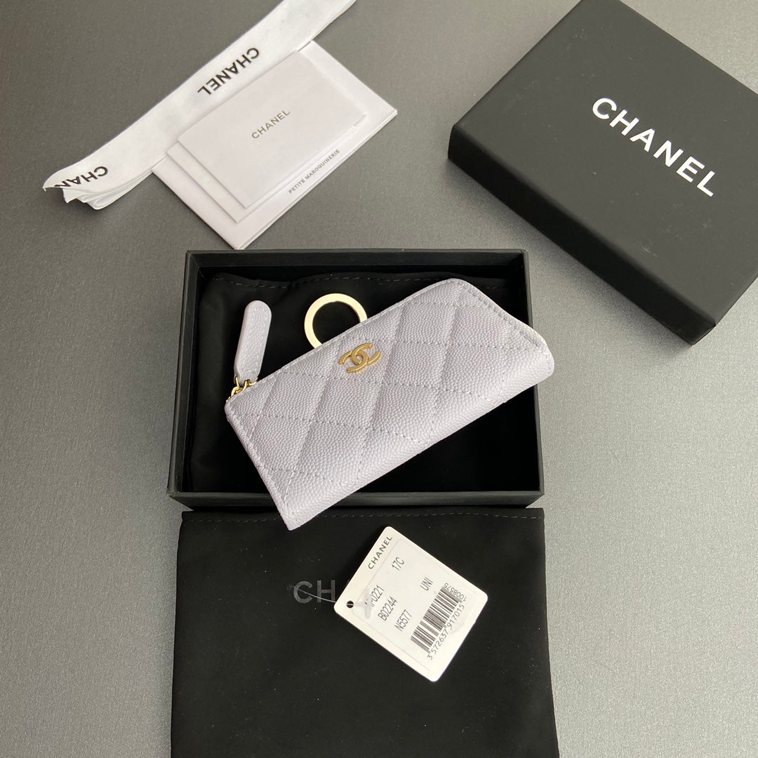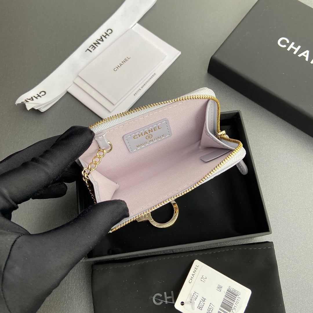 CC Hook & Chain Zipper Card Holder Light Purple Caviar GHW 234717