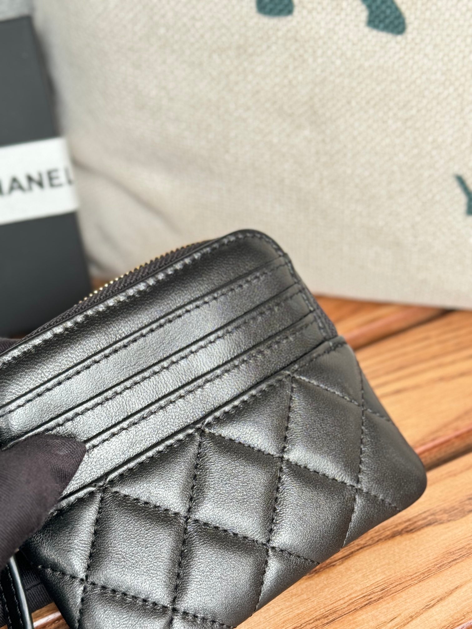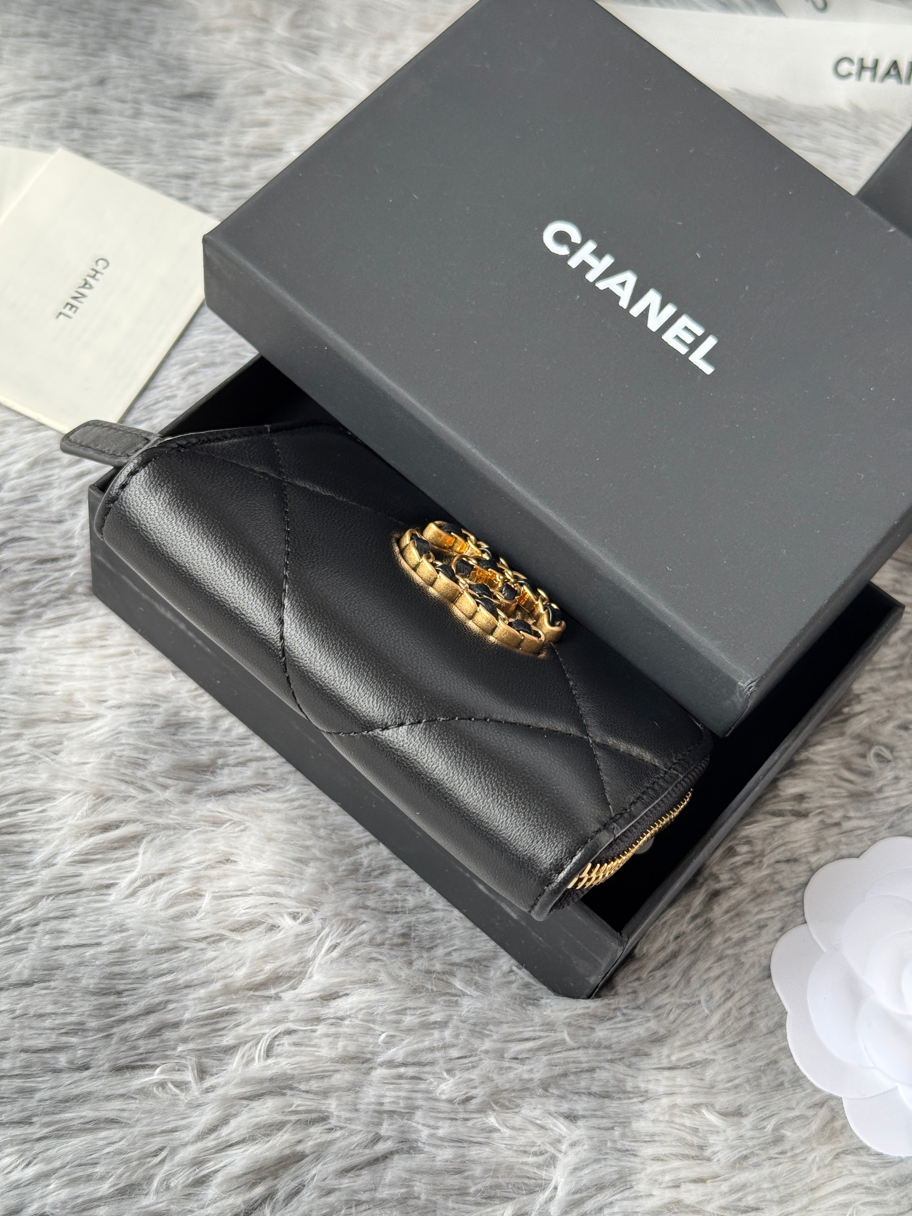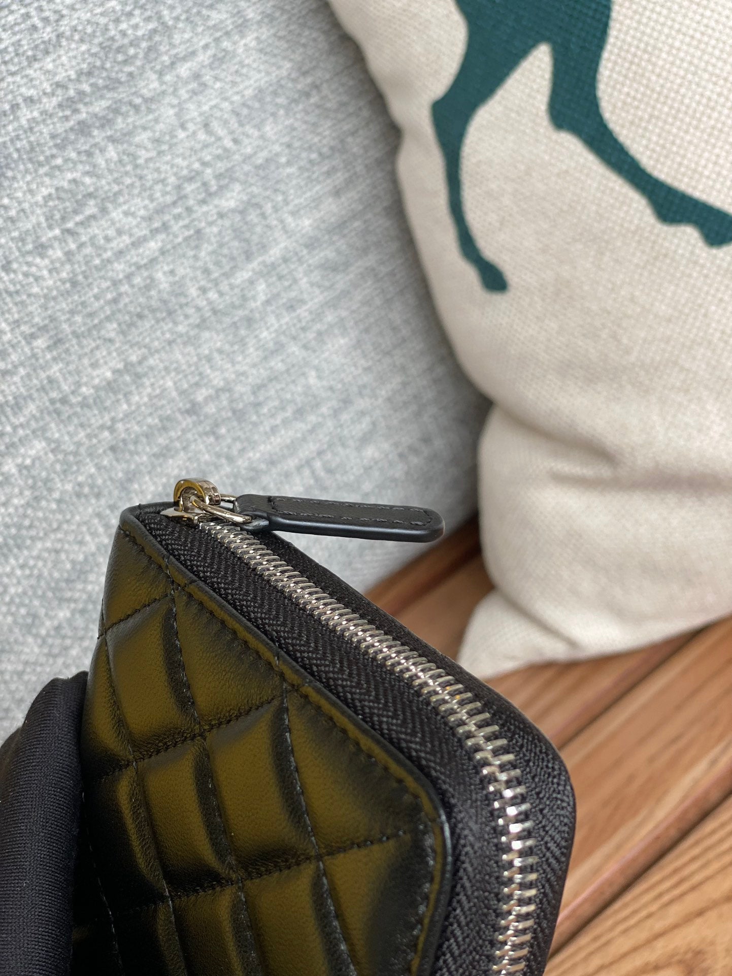 CC 19 Quilted Zipper Coin Purse Black Gold-Tone Sheepskin 242800