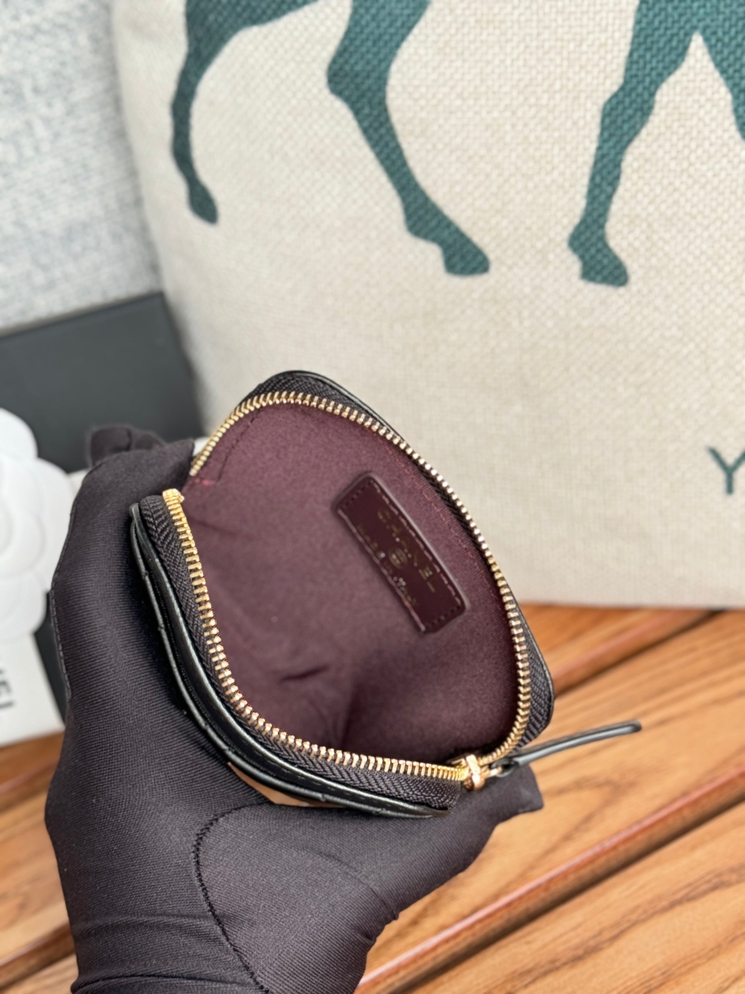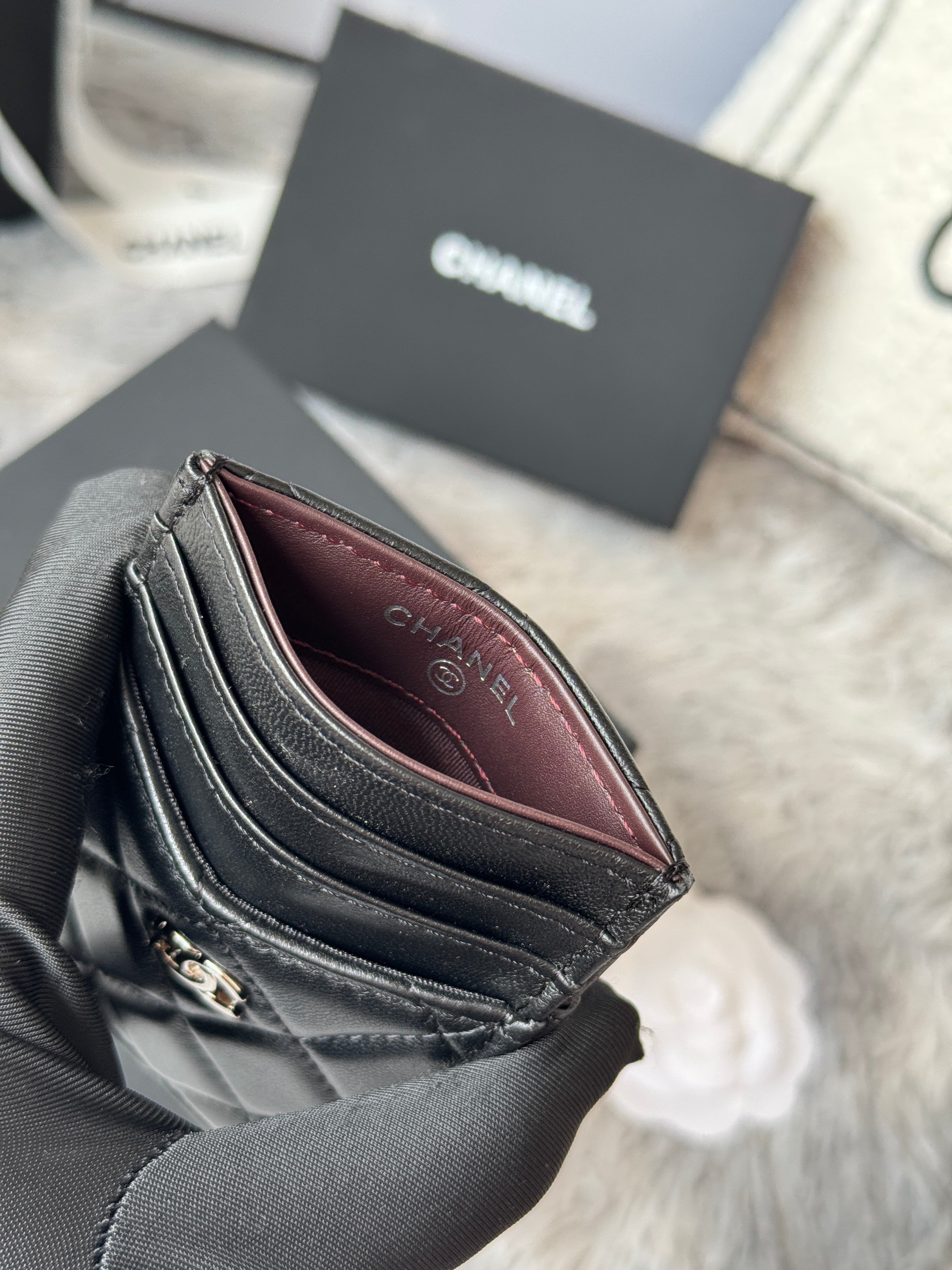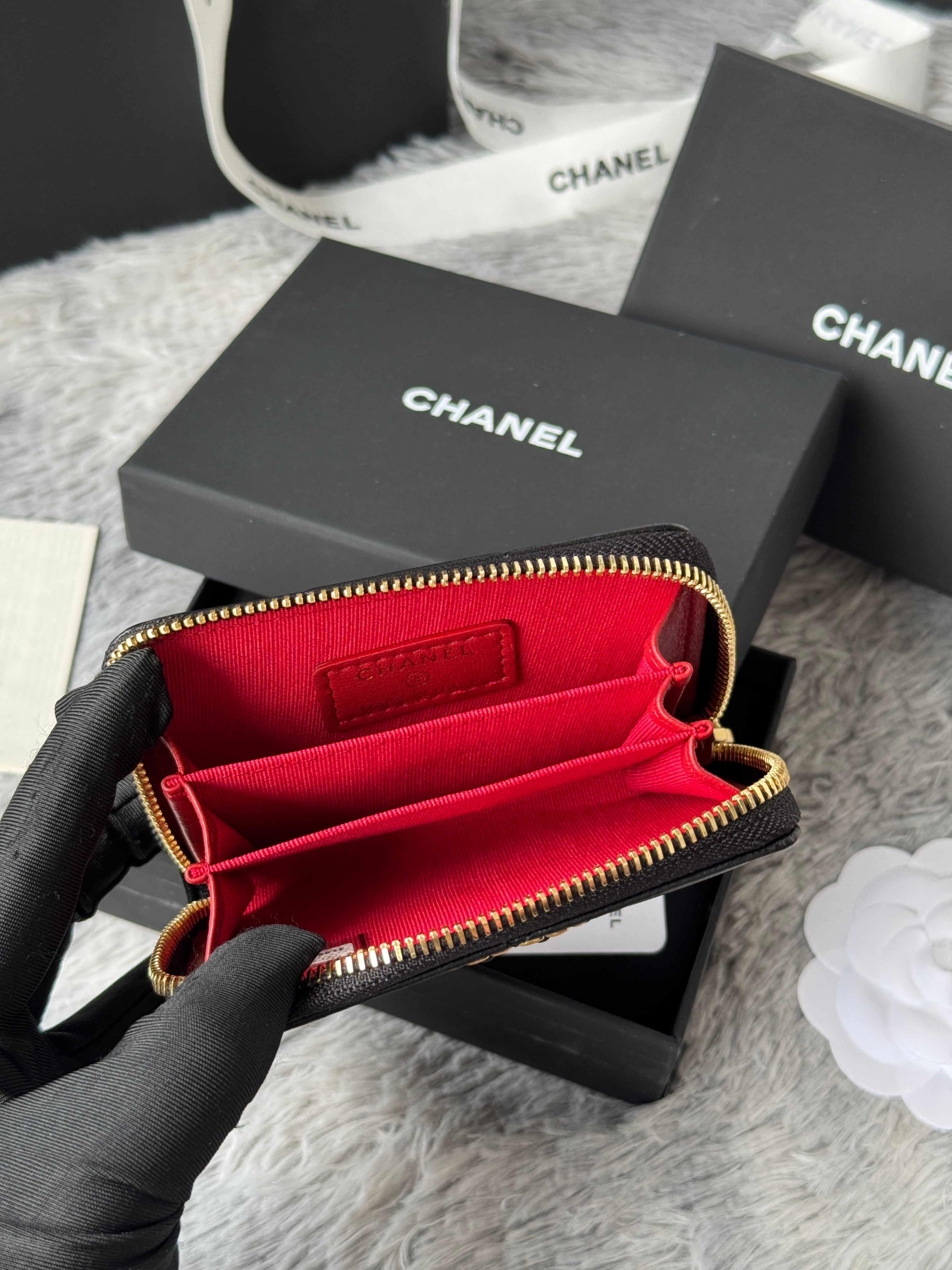 CC Sliver Buckle Boy Zipper Coin Wallet Black Sheepskin 229741