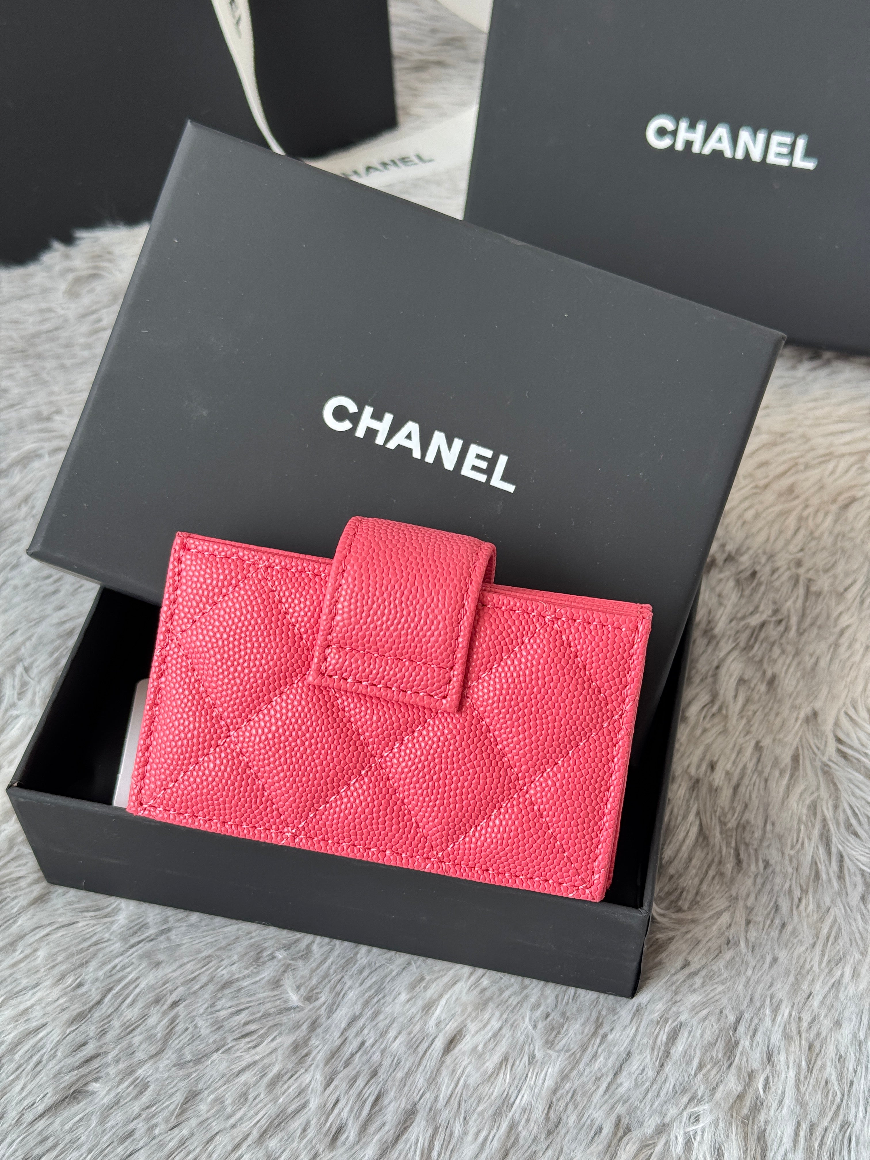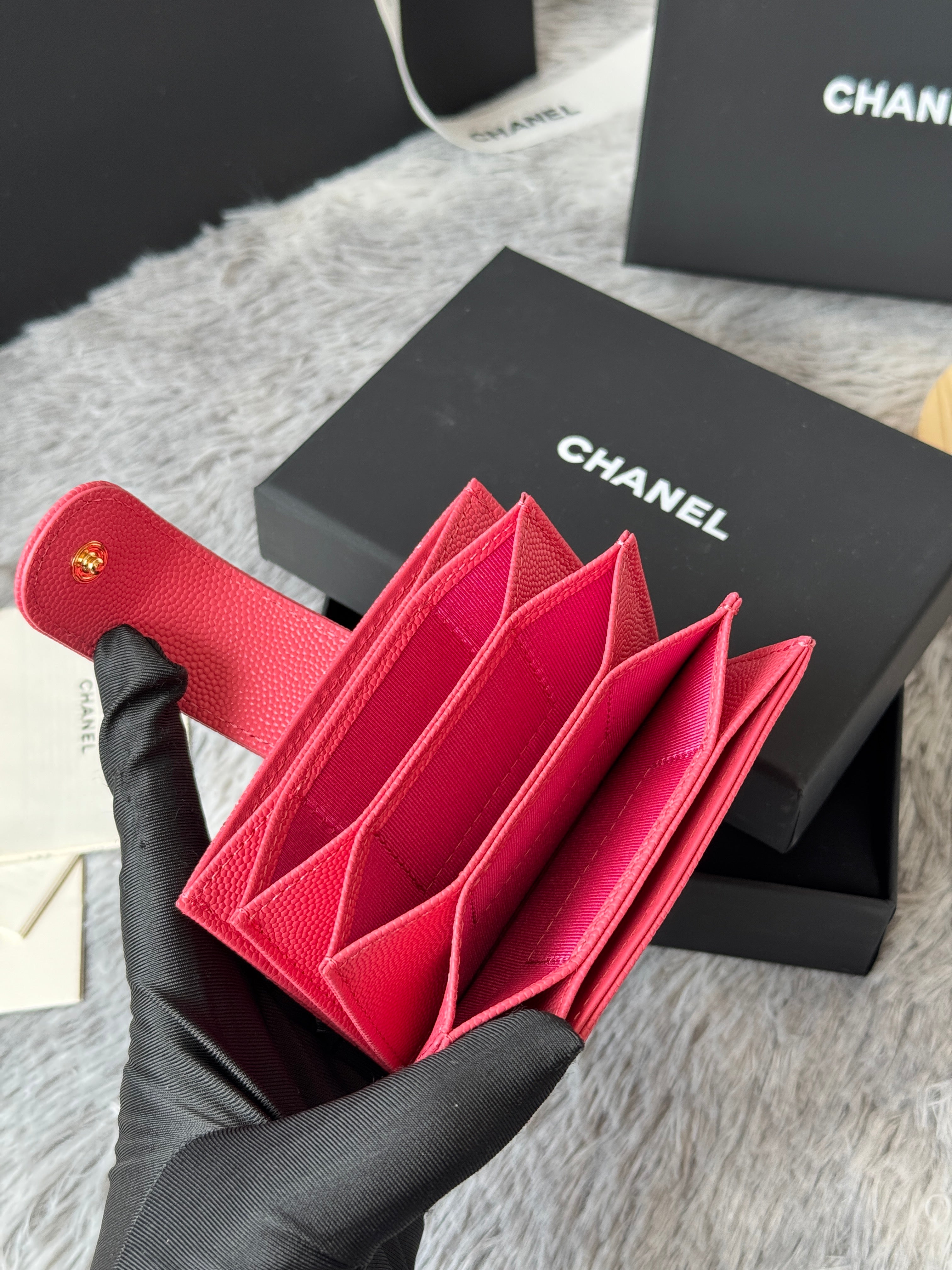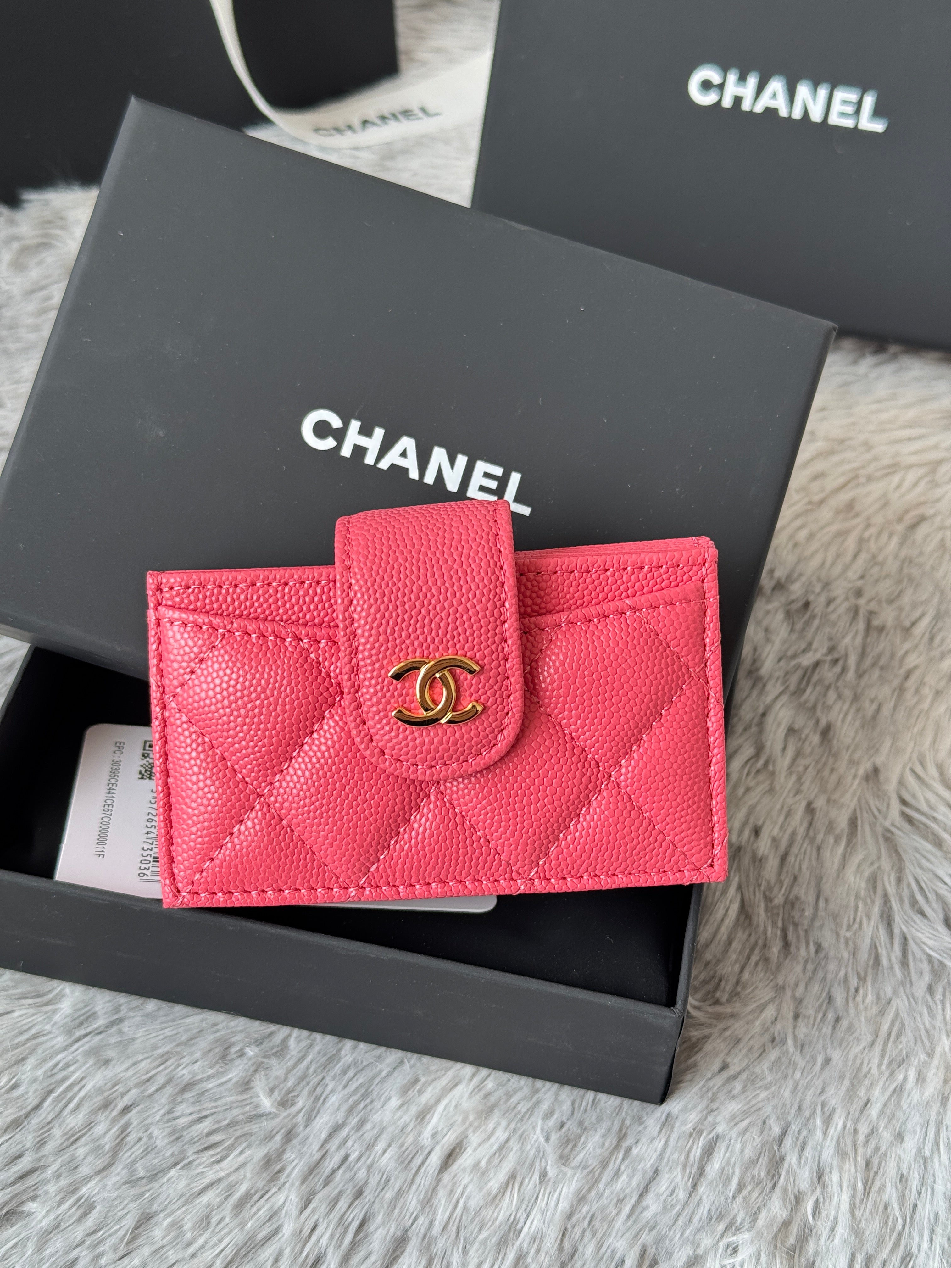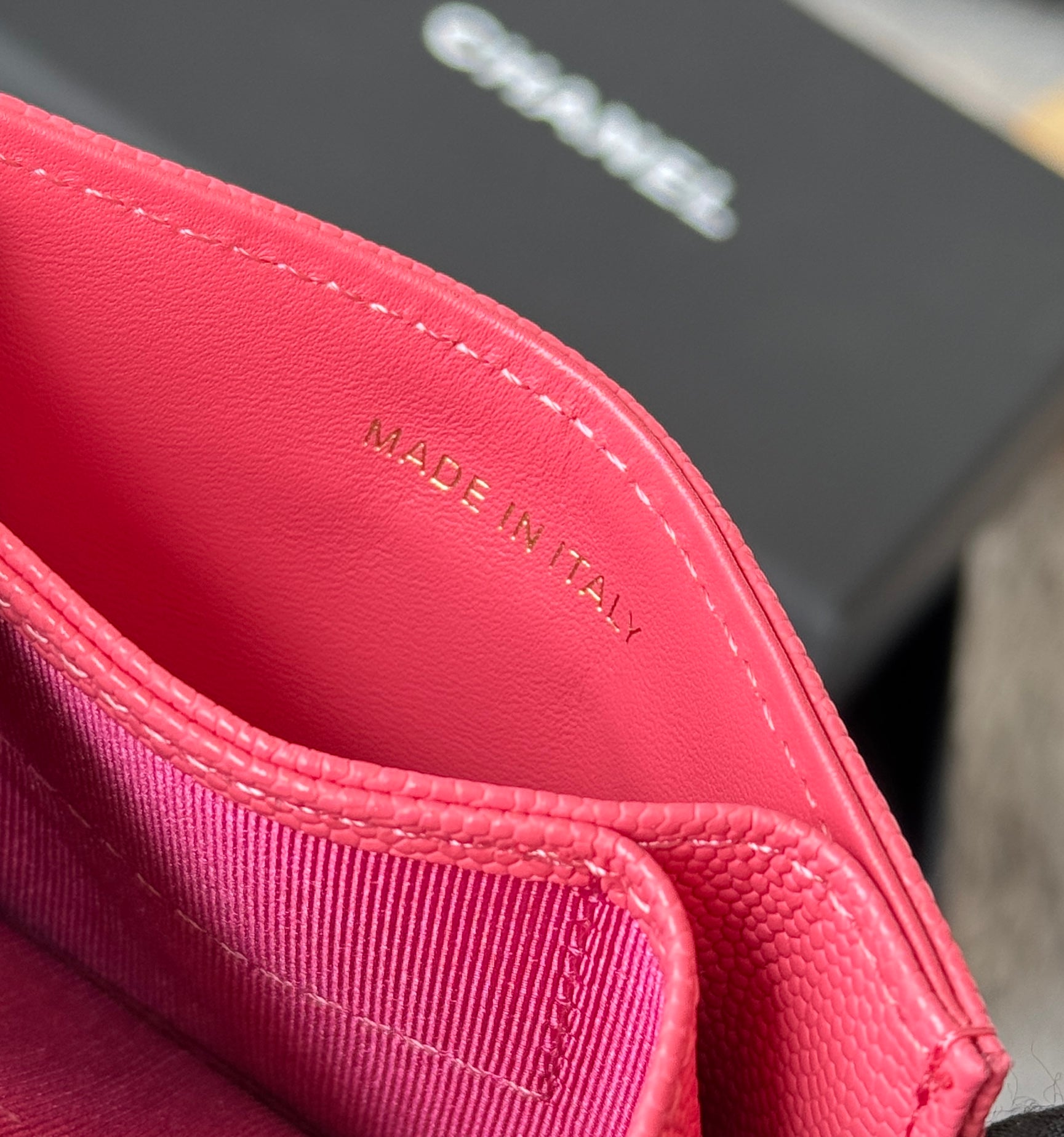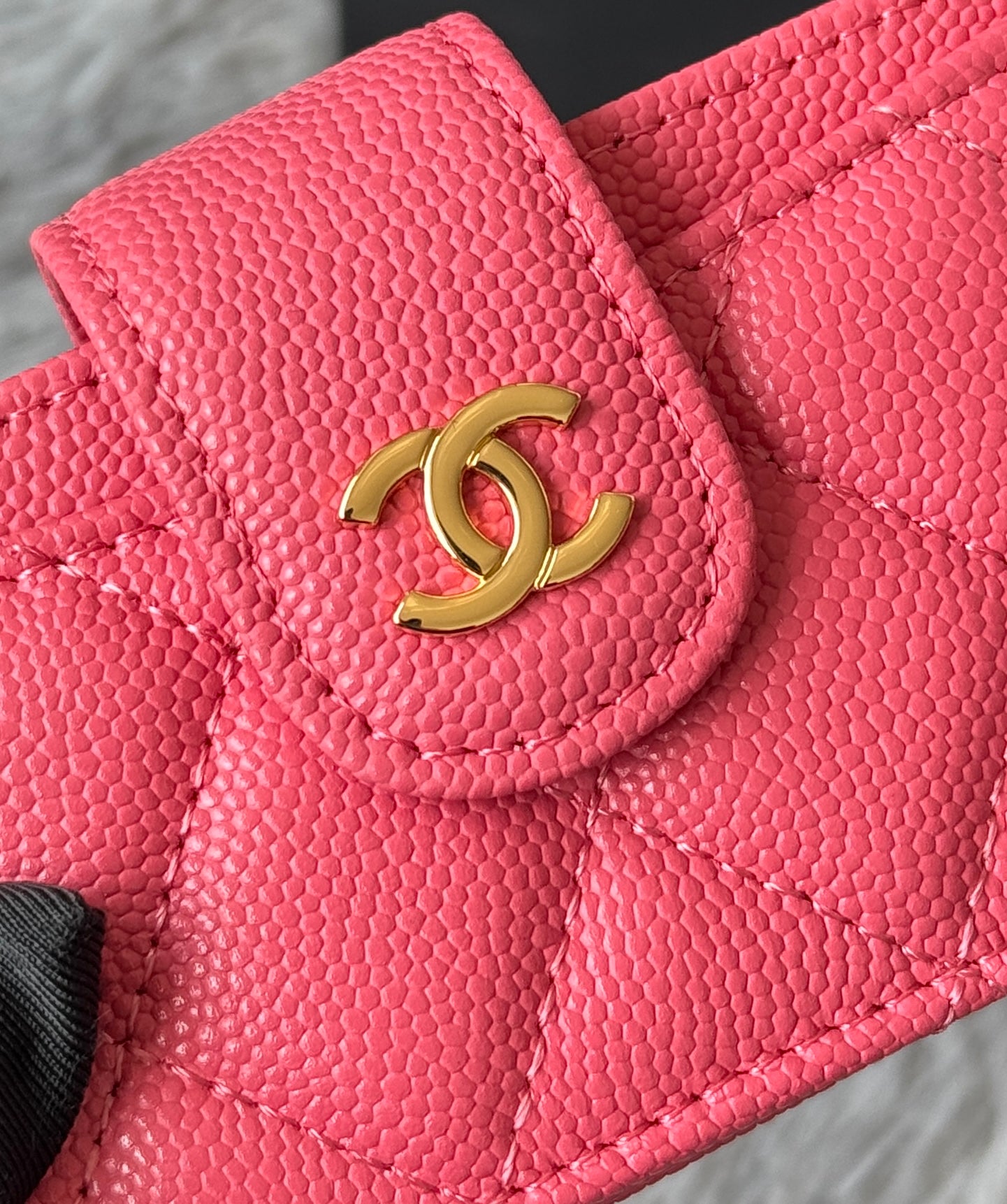 CC 24 Classic Wallet On Chain 11cm Pink Caviar Leather 240678