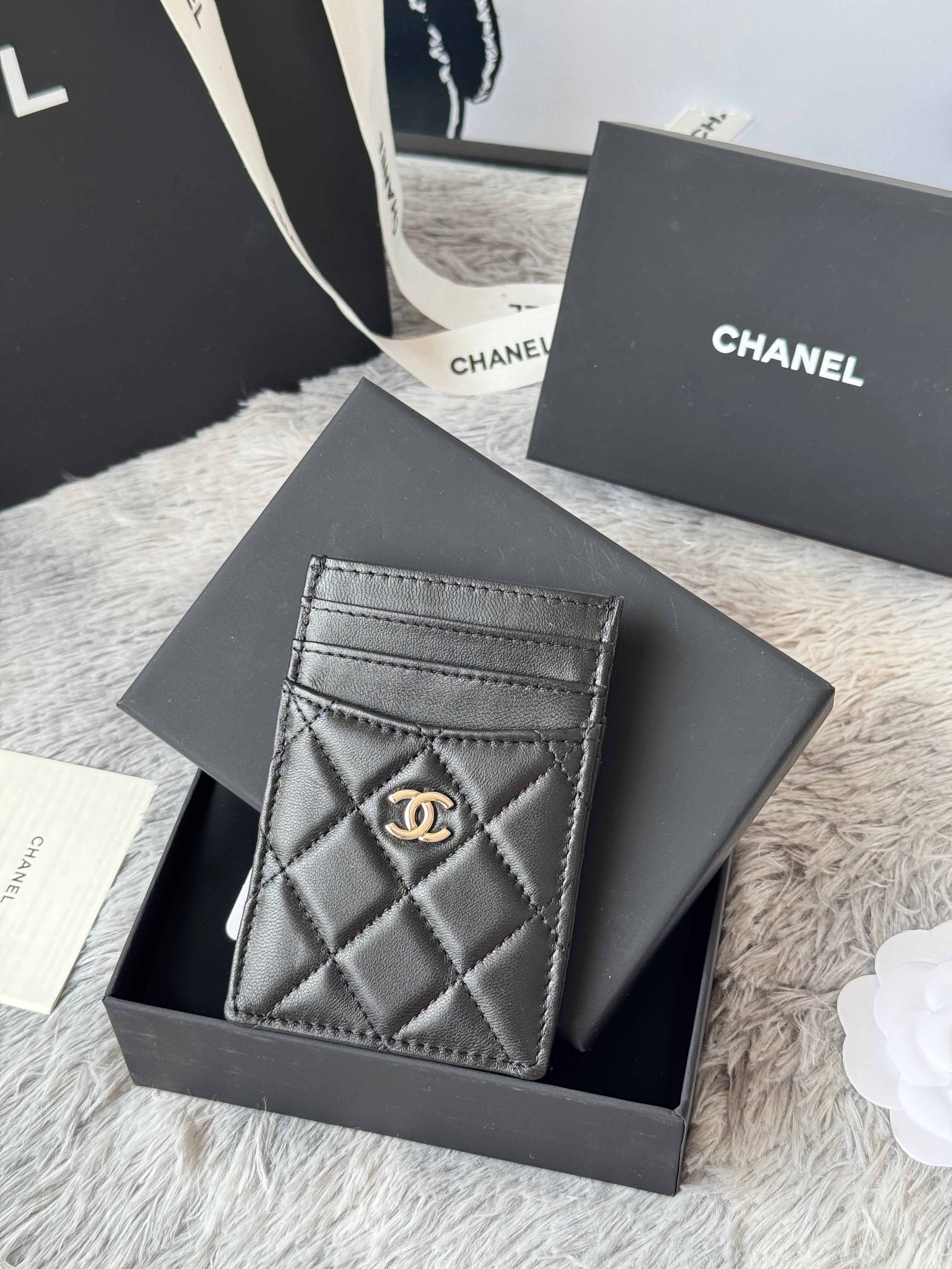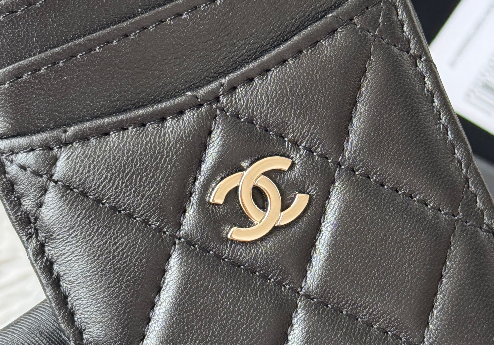 CC Zip Card Holder Wallet Black Gold Metal Lamskin 240617