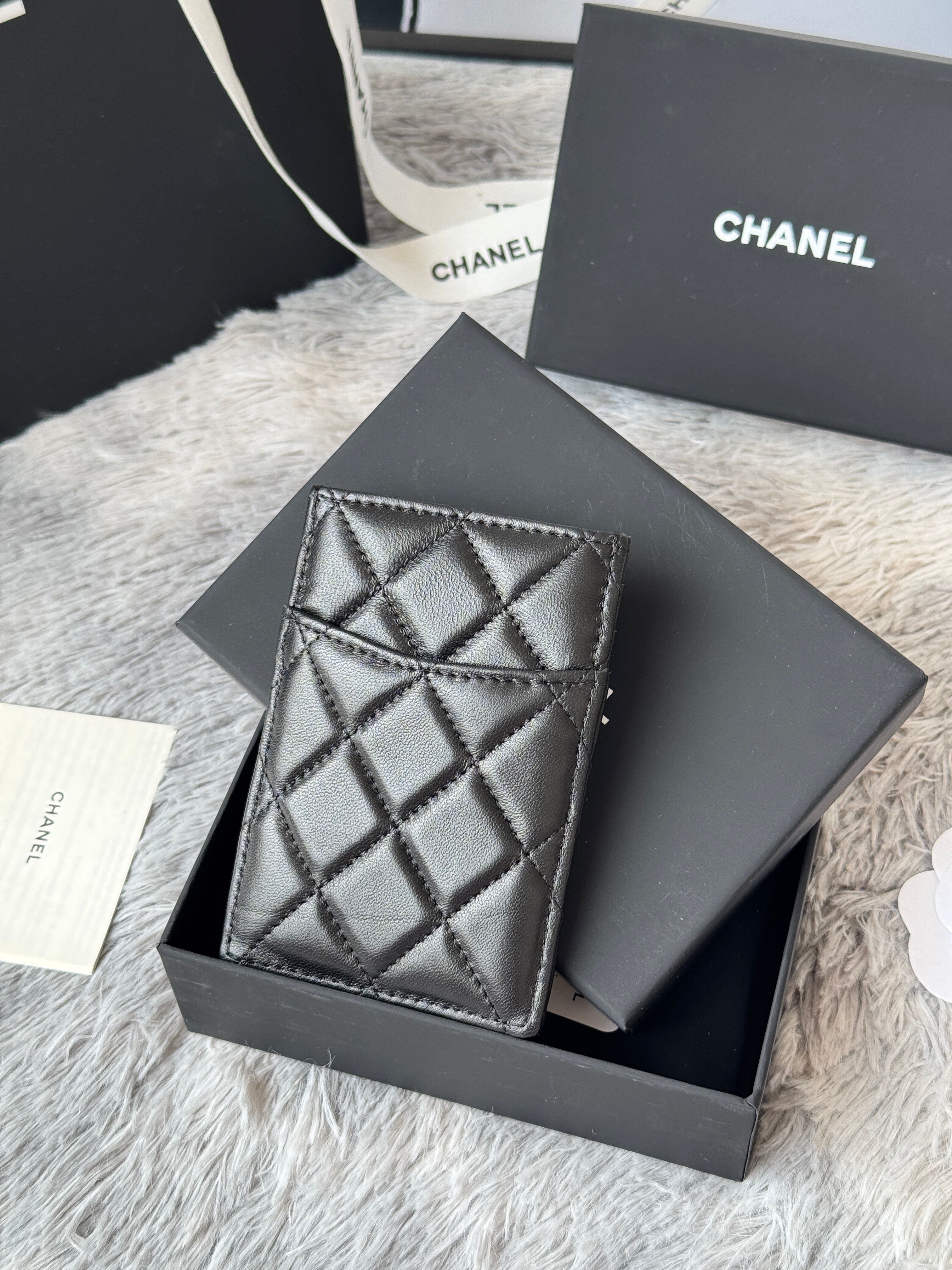 CC Carld Holder Black Sliver-tone Metal Lamskin 242674