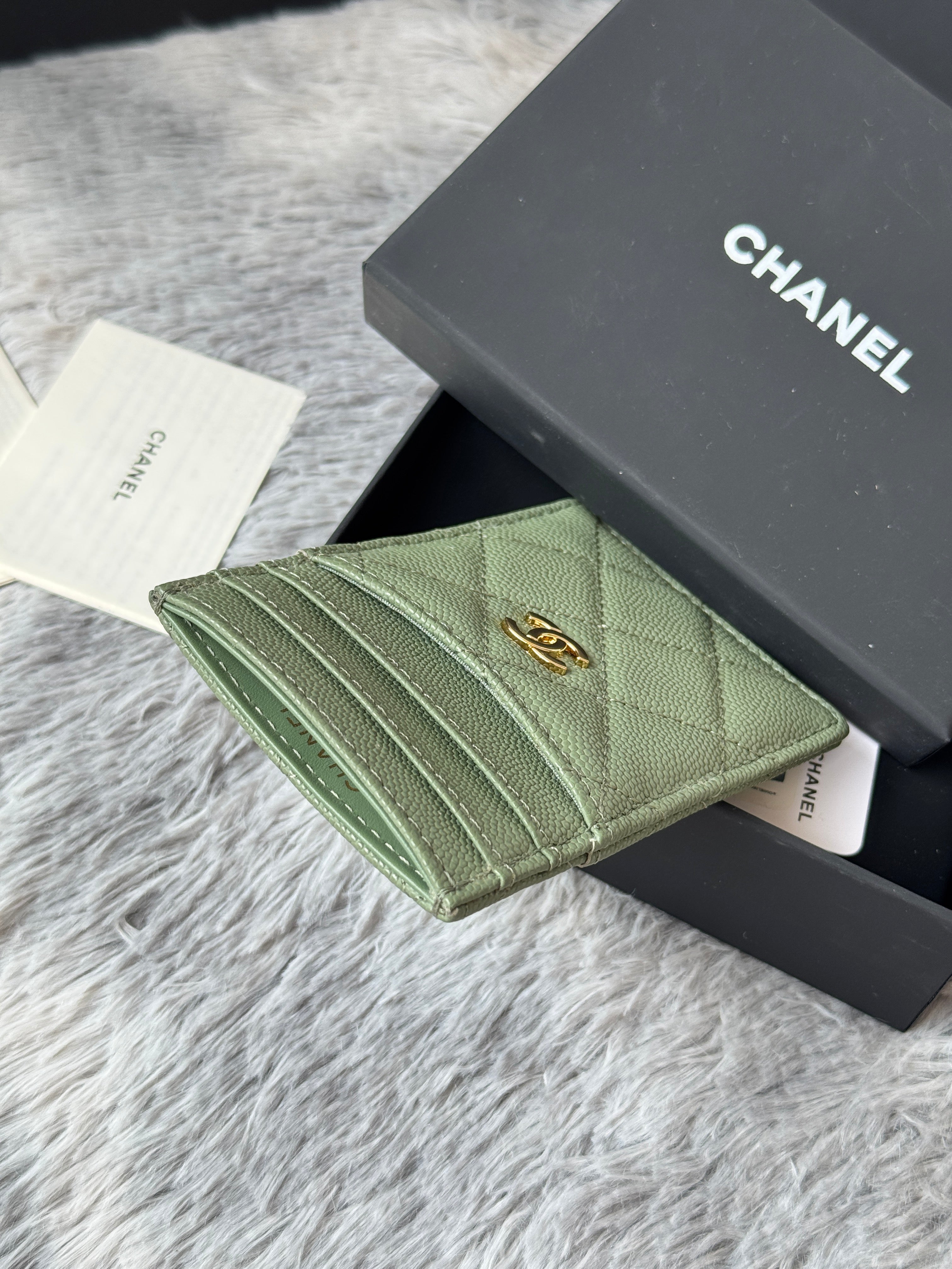CC Carld Holder Olive Green Grain Calfskin 242696