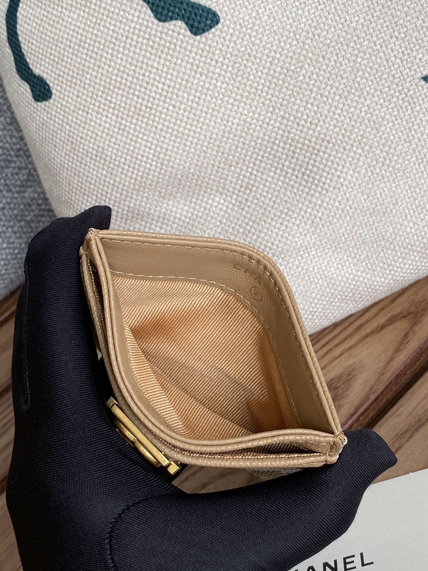 cc 19 zipped coin purse 11cm grey lambskin gold hardware