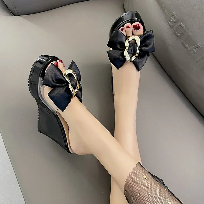 Butterfly Wedge Sandals - Transparent Platform Slides for Women
