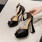 Eilyken Satin Bead Peep Toe Platform Heels - Ankle Strap Party Sandals