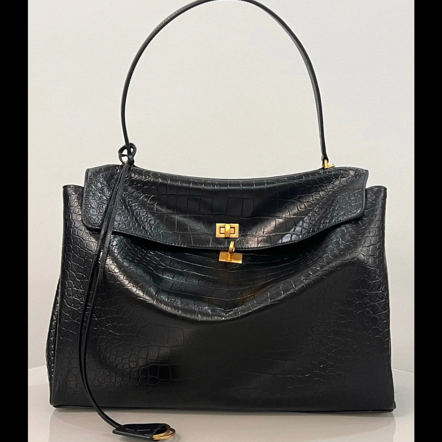 Balenciaga Large Rodeo Bag 40 Black Crocodile Skin Gold Hardware