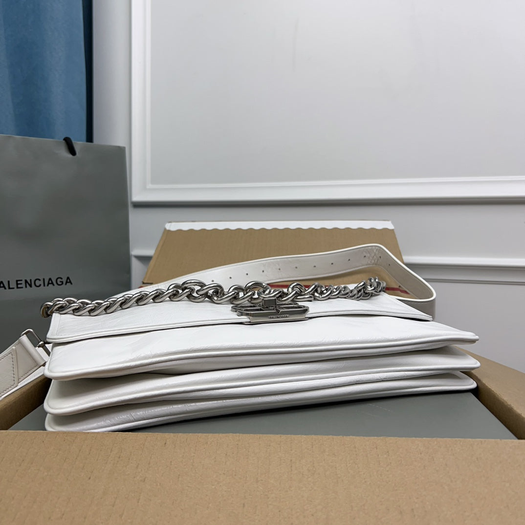 BB SOFT FLAP BAG 36 IN WHITE PEACH CALFSKIN SILVER HARDWARE