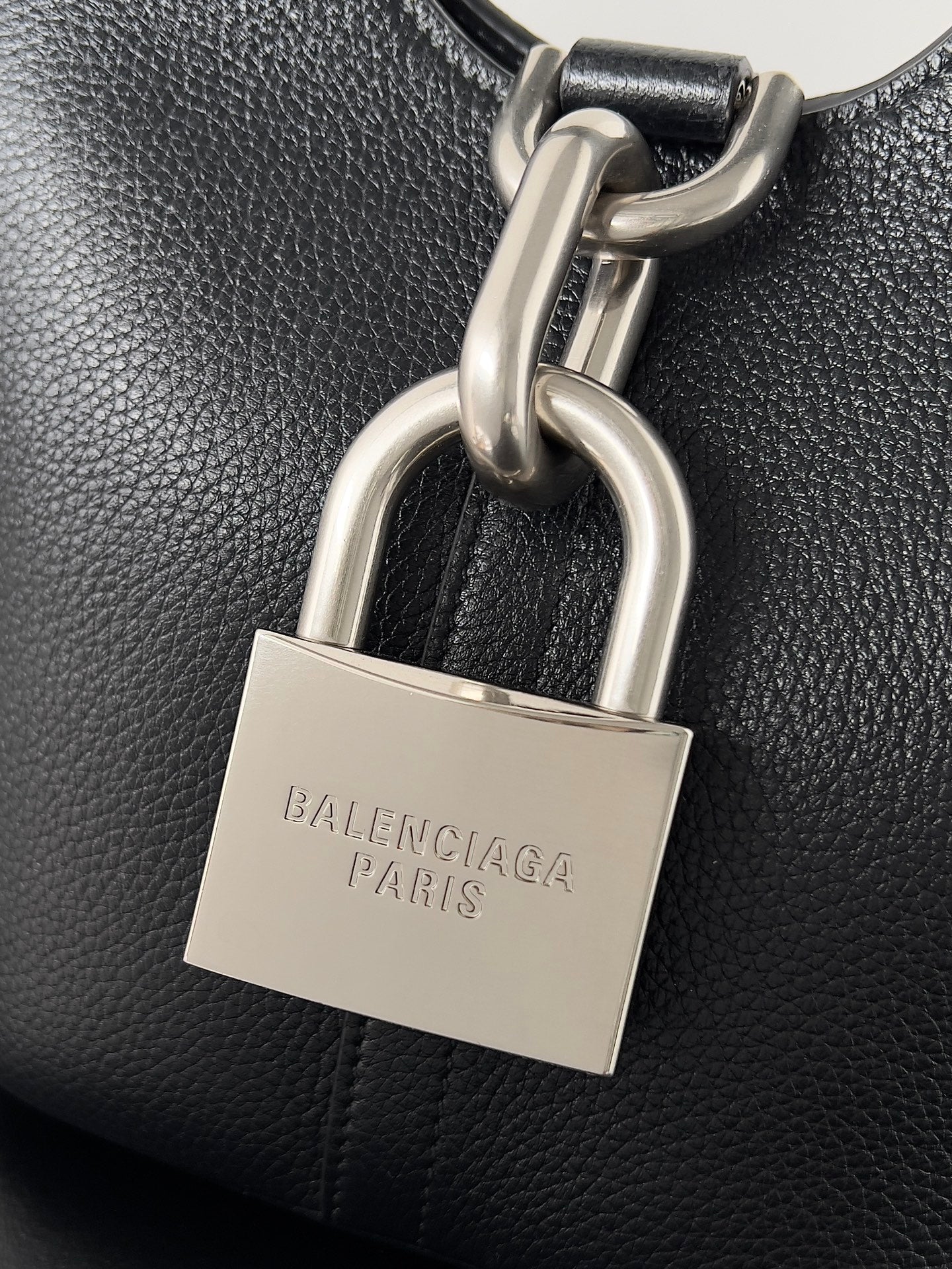 SILVER LOCKER SHOULDER BAG 24 IN BLACK CALFSKIN