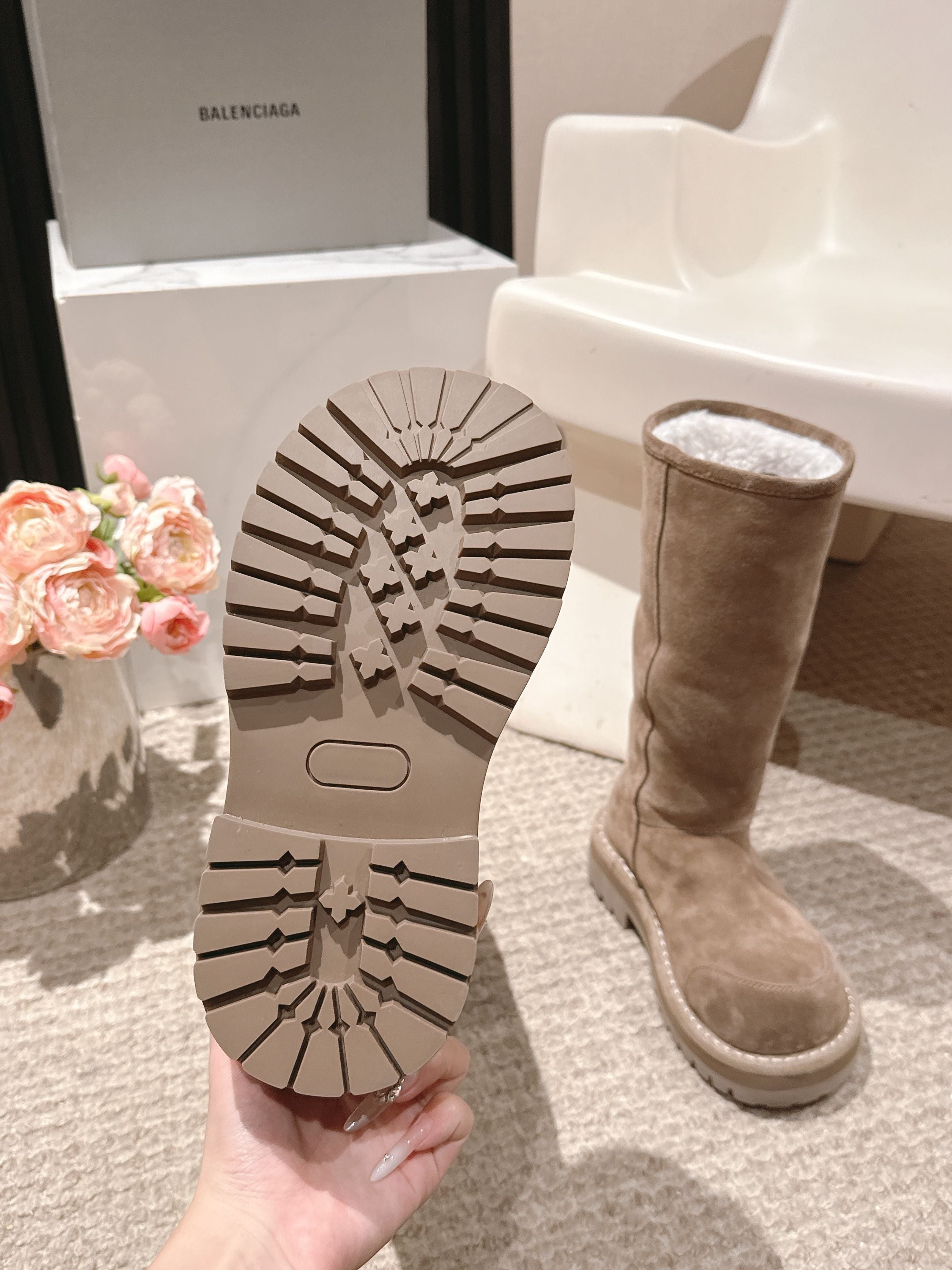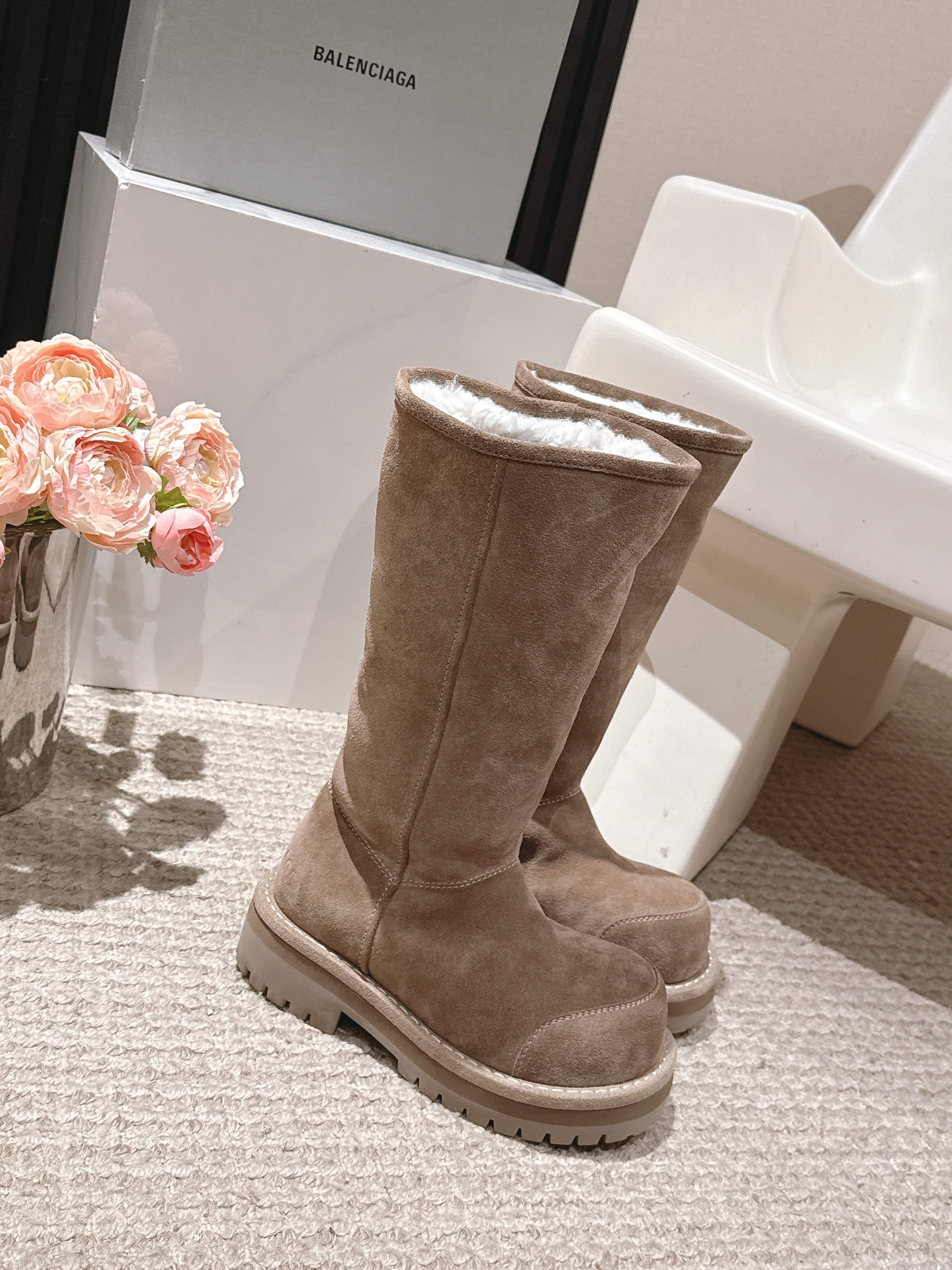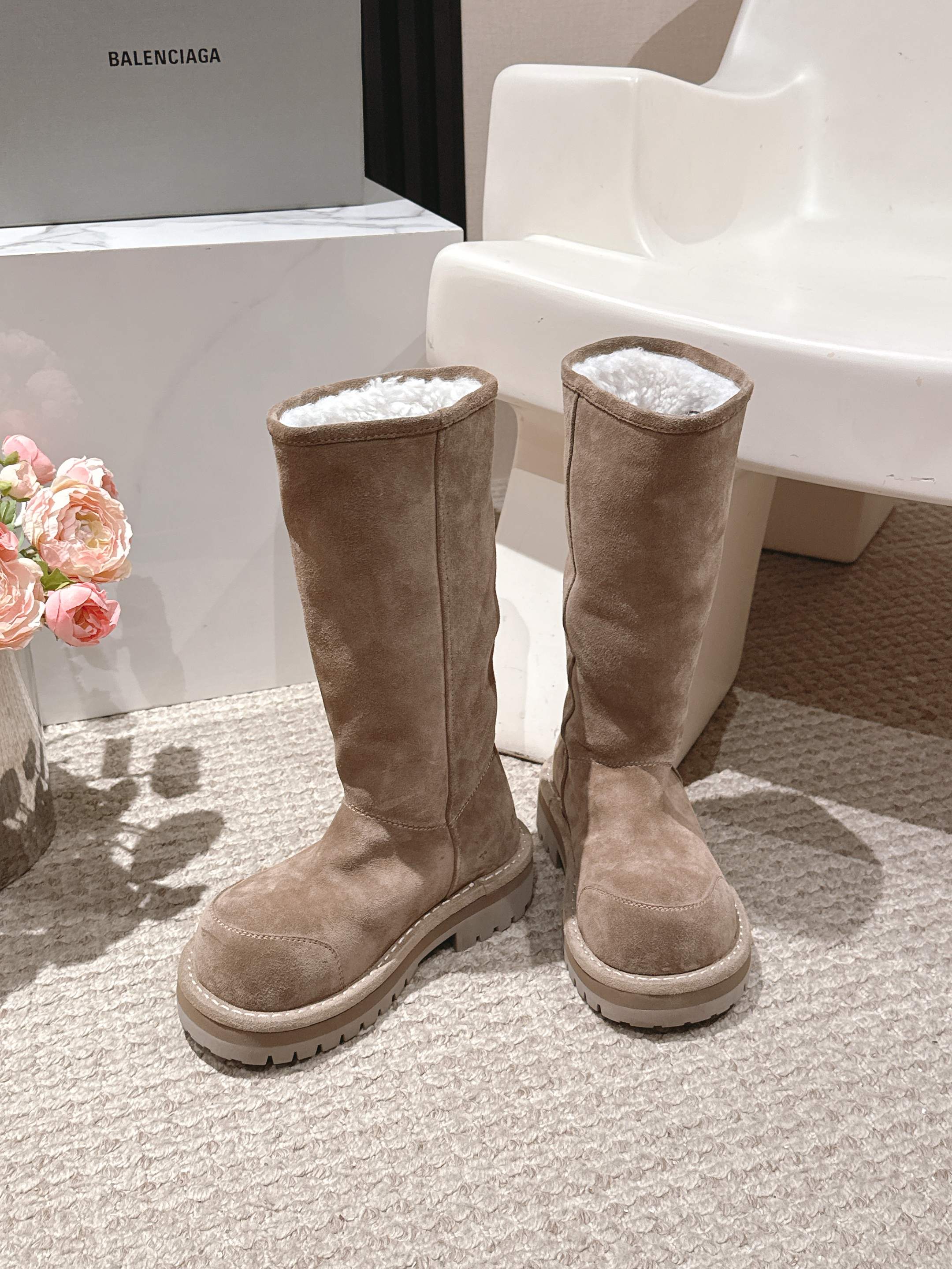 Balenciaga 25s snow boots beige suede wool 467189