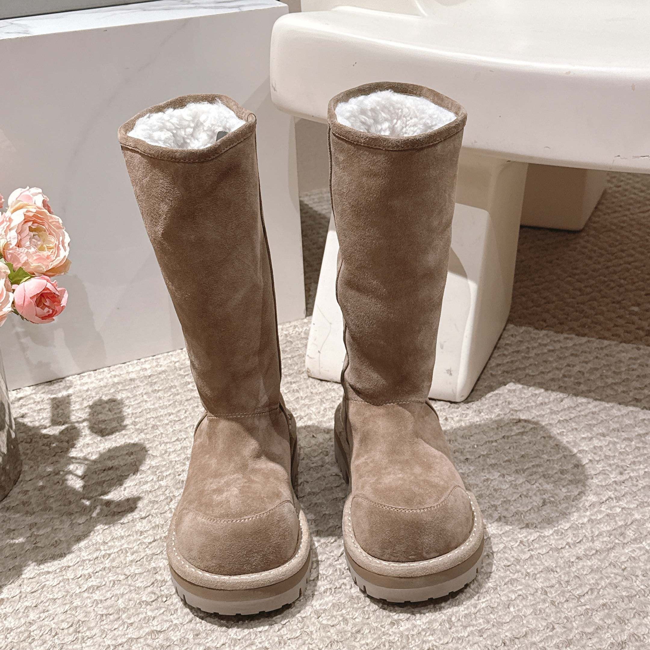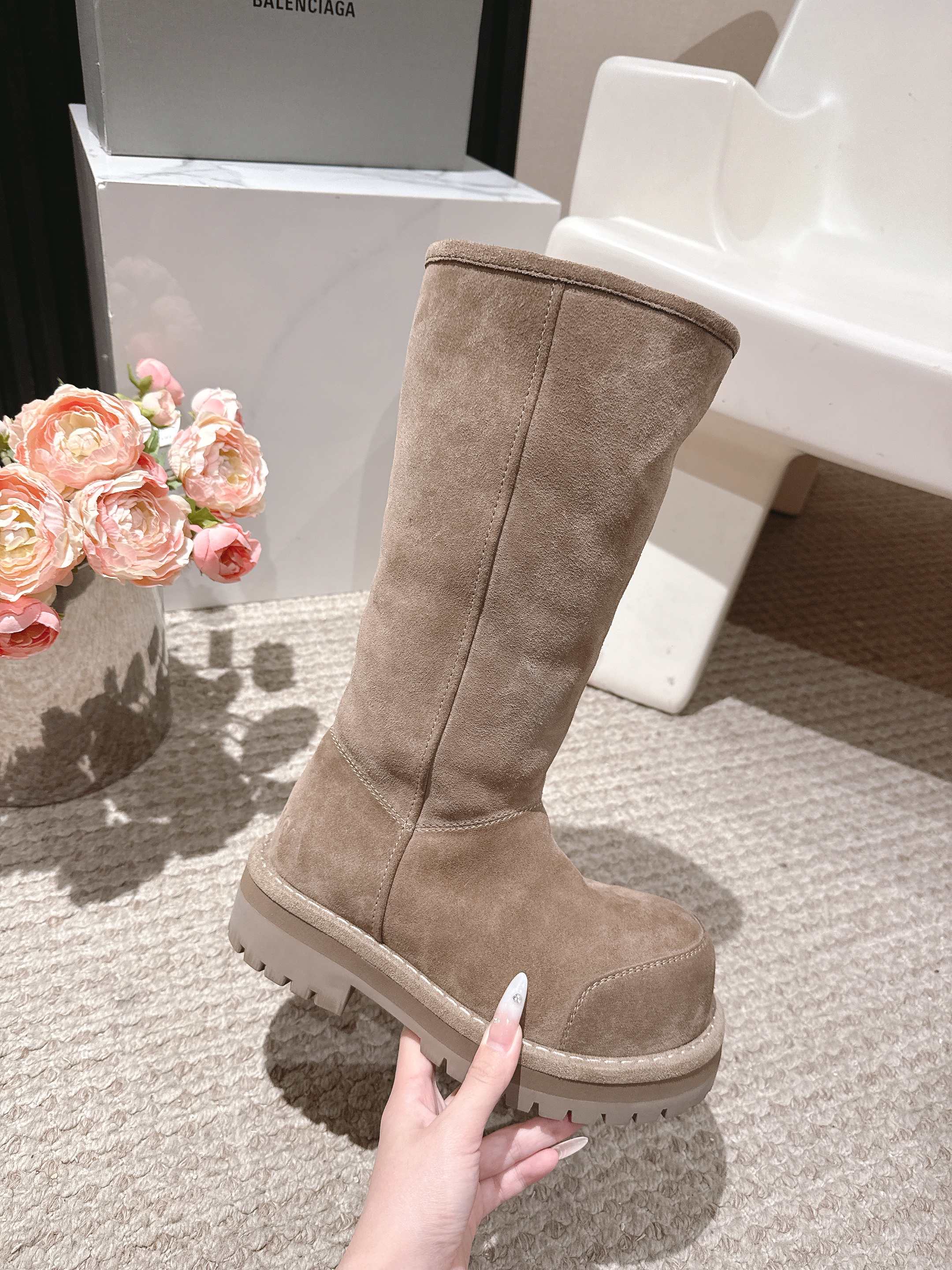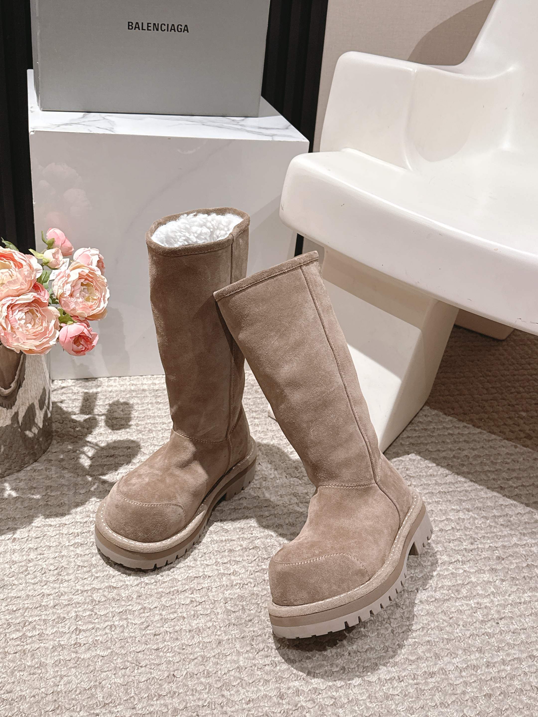 Balenciaga 25s snow boots beige suede wool 467189