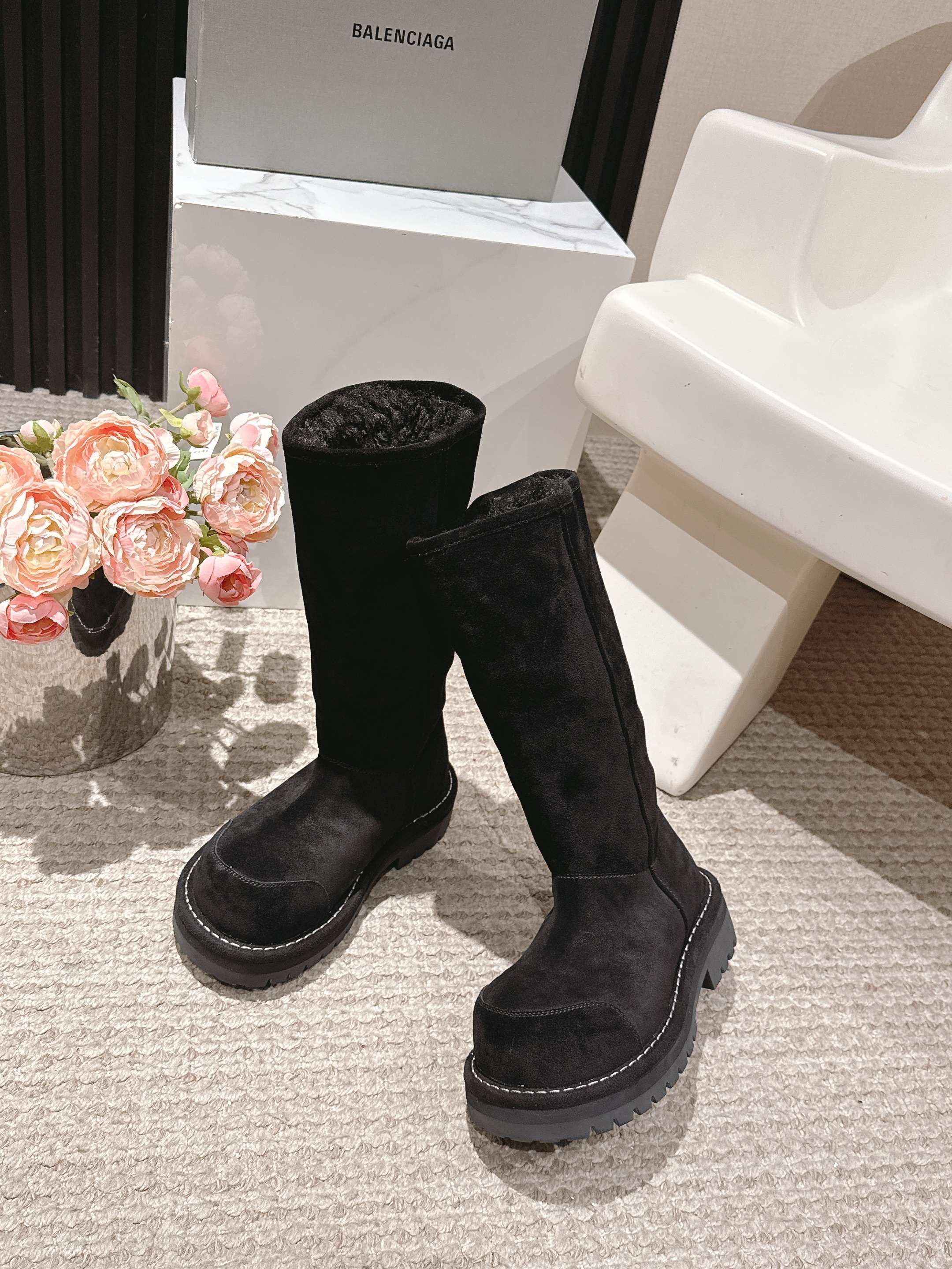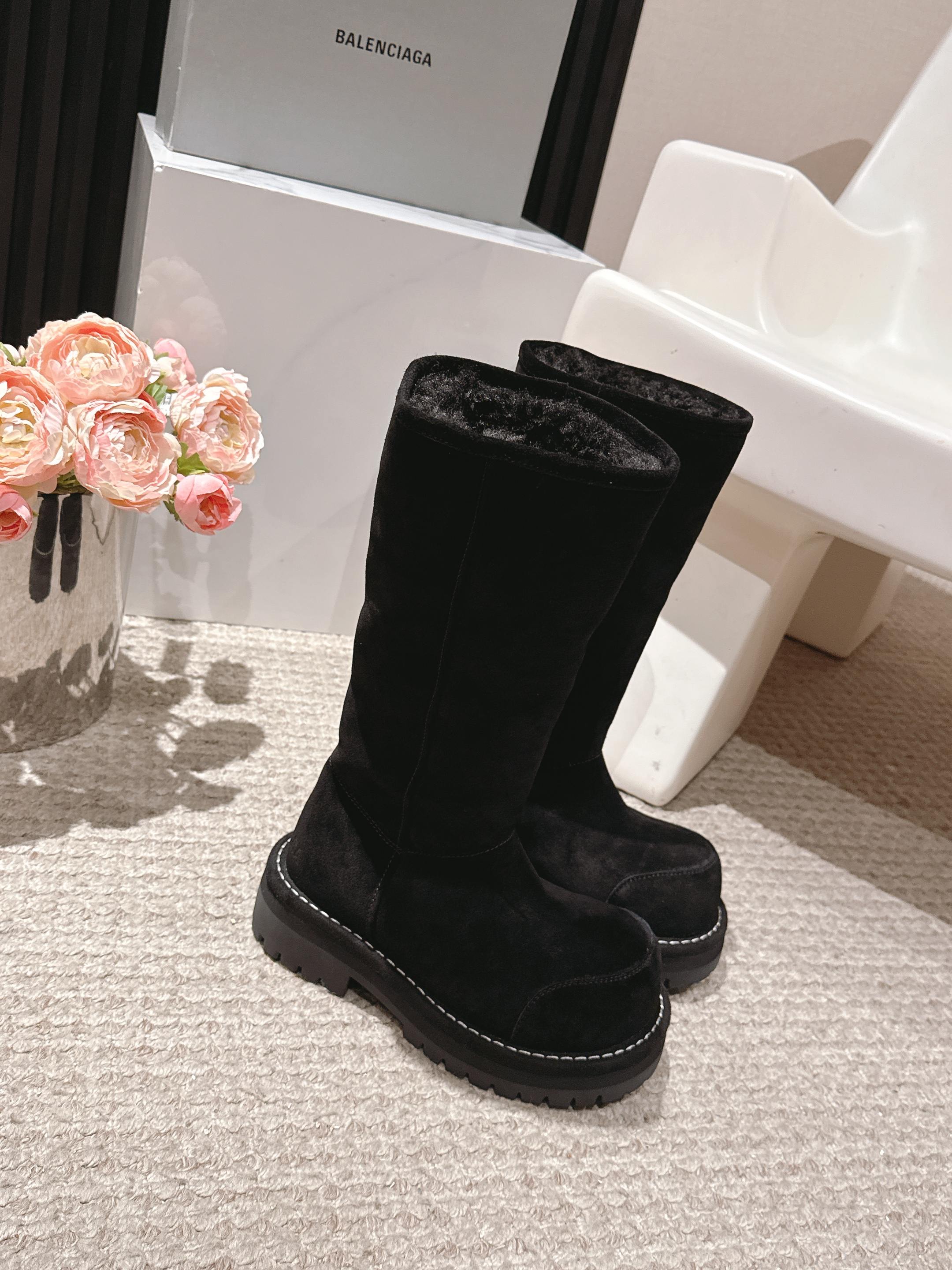 Balenciaga 25s snow boots black suede wool 467188
