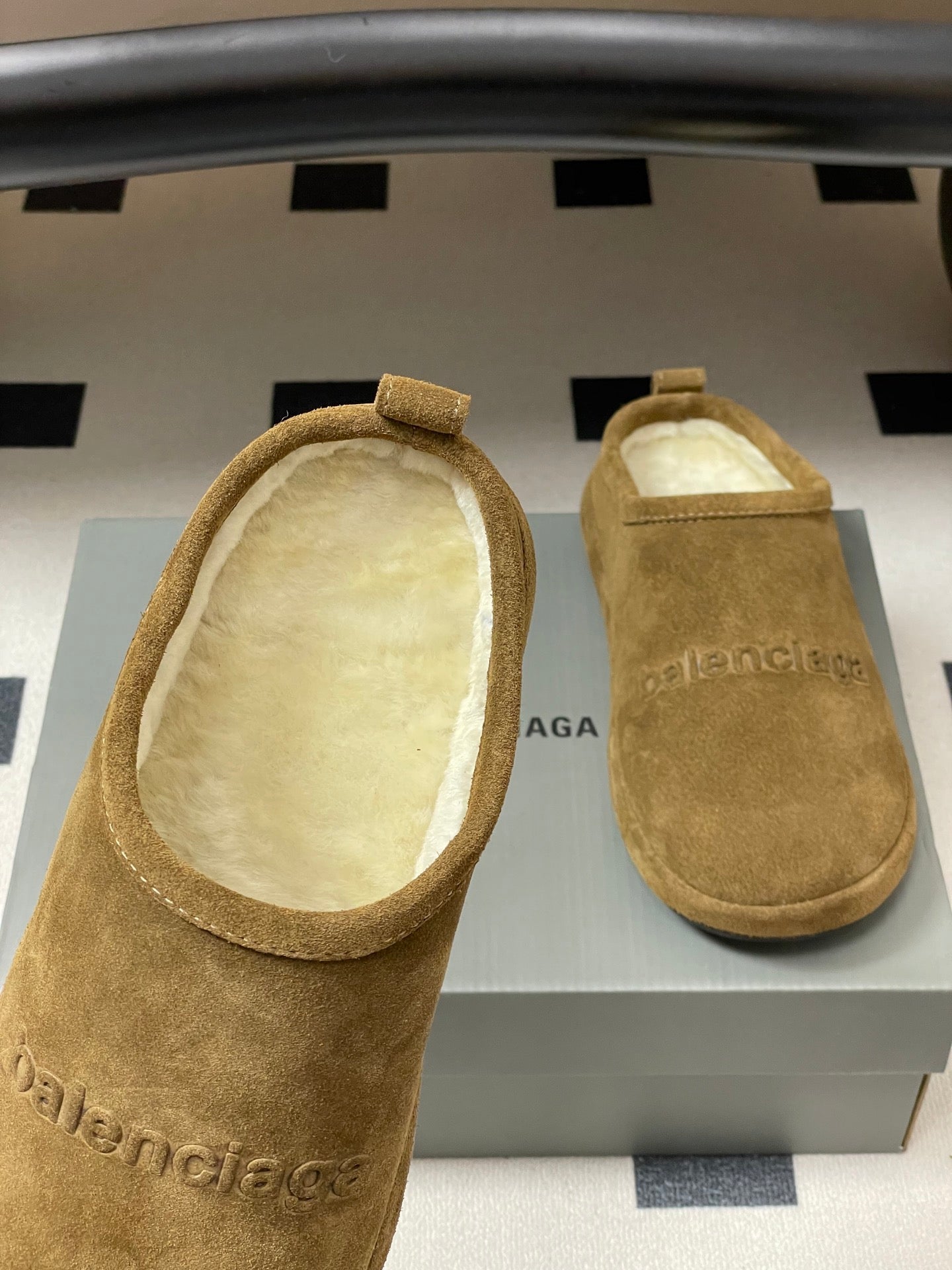 Balenciaga Mule Slip-On Light Brown Suede Wool 534533
