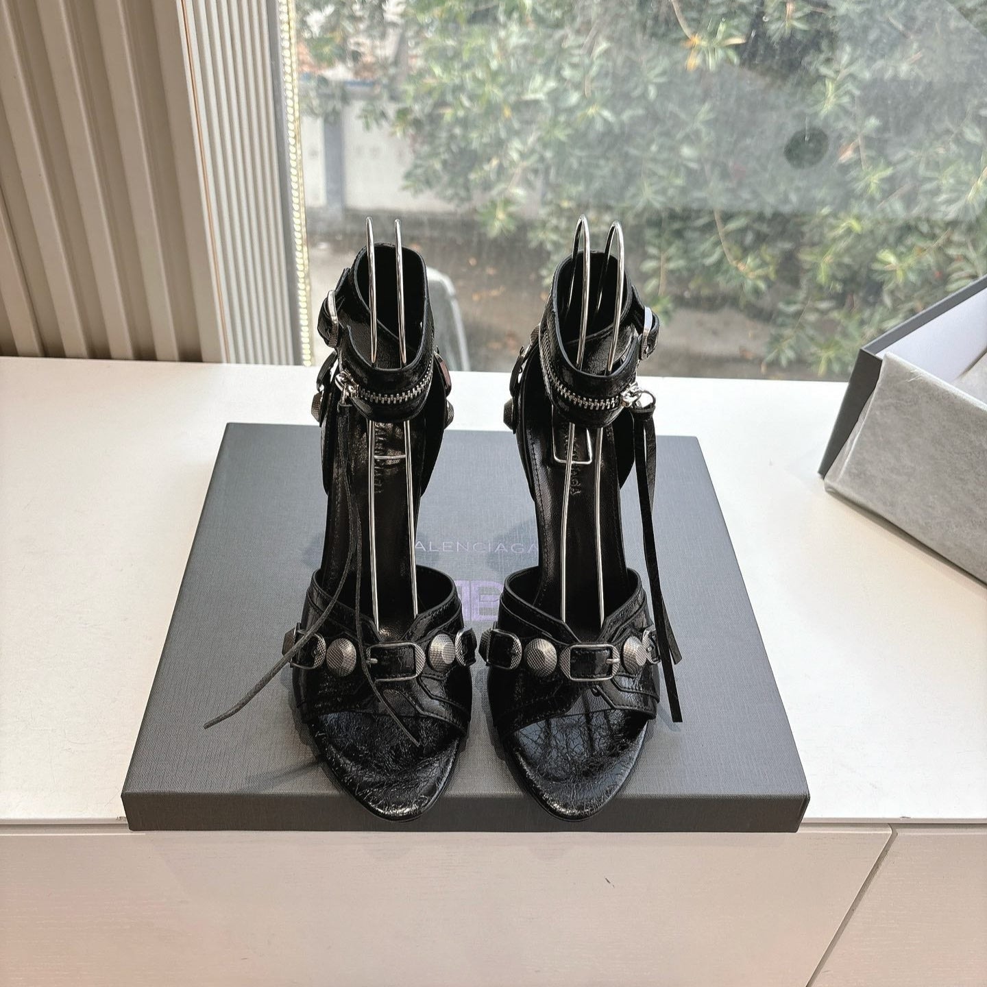 CAGOLE HIGH-HEEL SANDALS IN BLACK LAMBSKIN