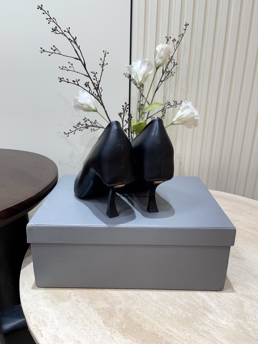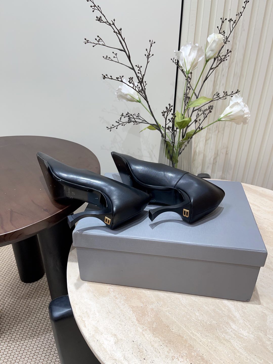 CURVED HEEL DEEP MOUTH PUMPS IN BLACK CALFSKIN