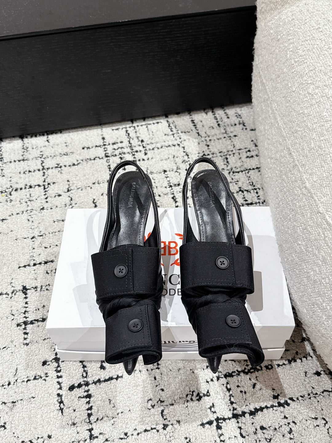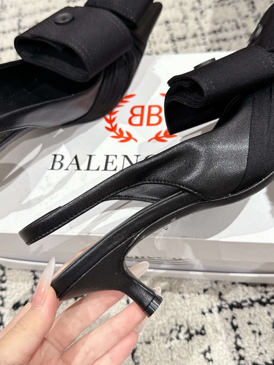 KNIFE CHEMISE 45MM SLINGBACK IN BLACK COTTON AND CALFSKIN