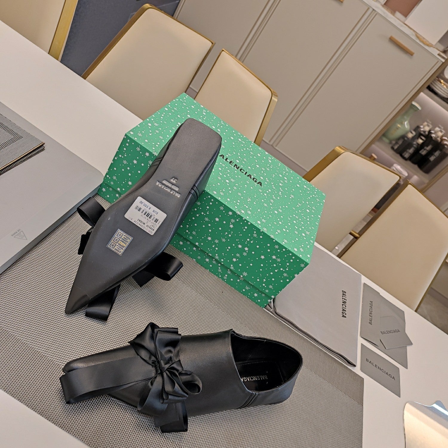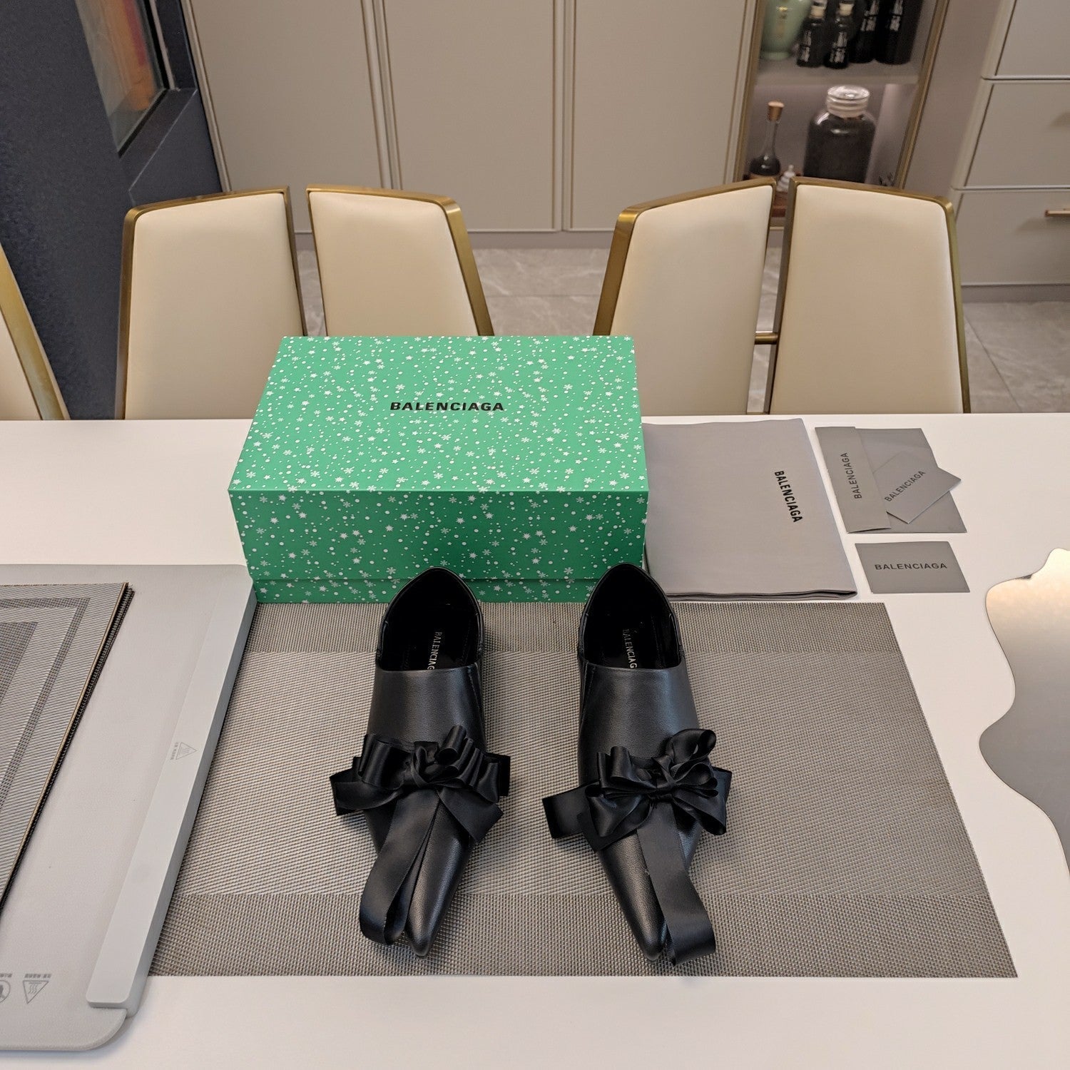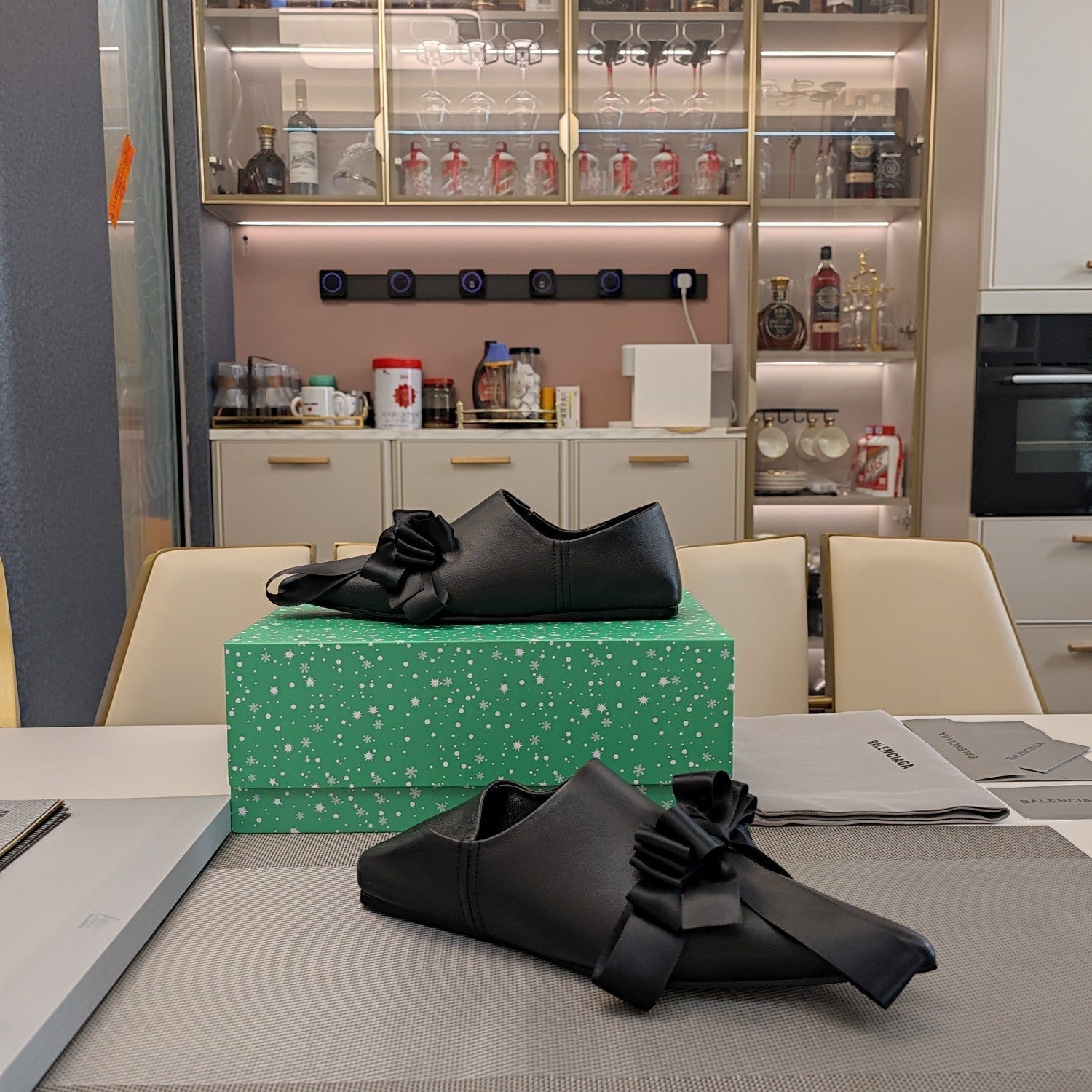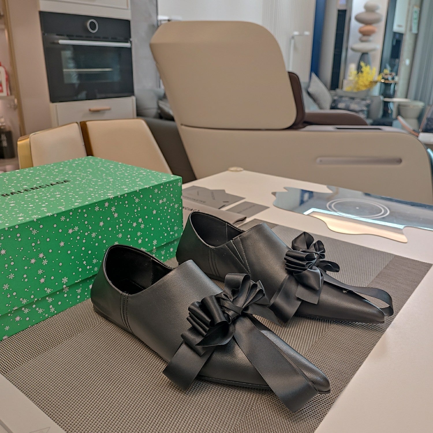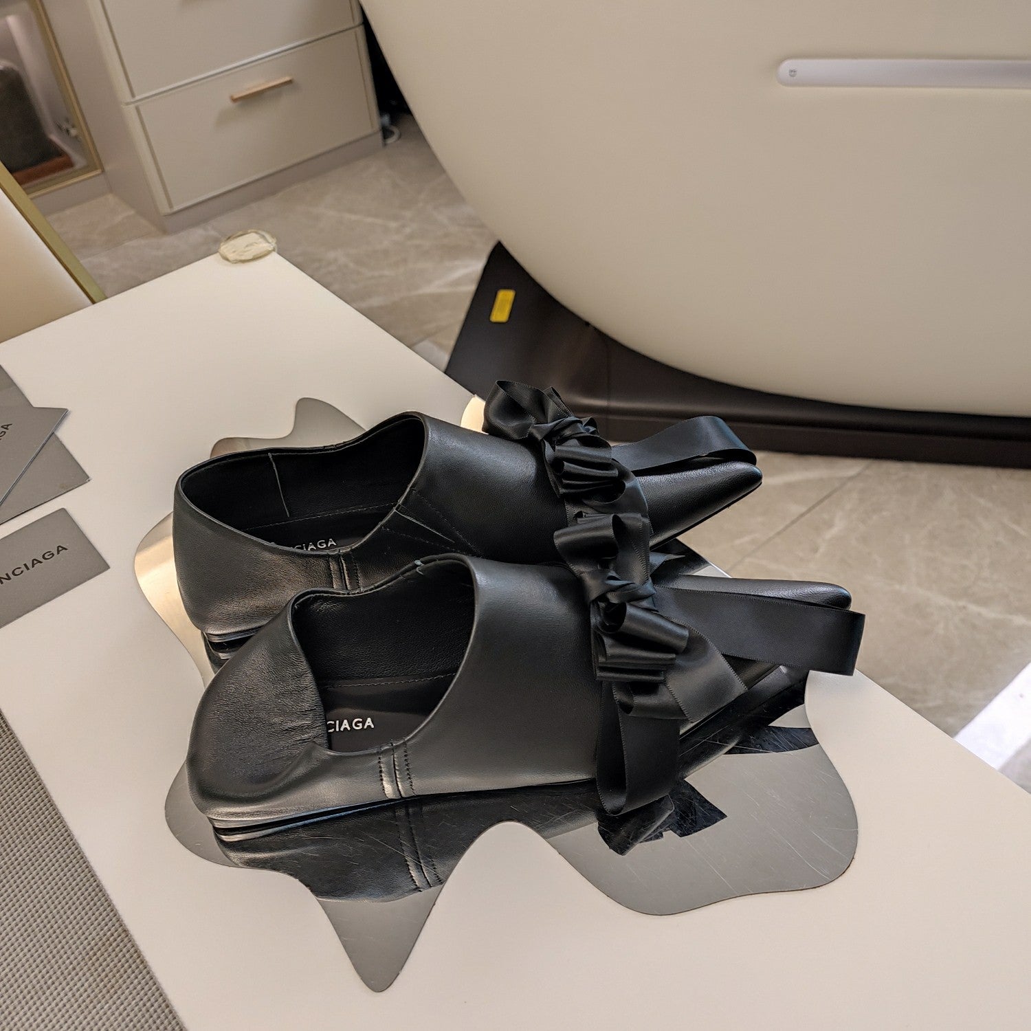 POINTED-TOE FLATS WITH BOW IN BLACK SOFT LAMBSKIN