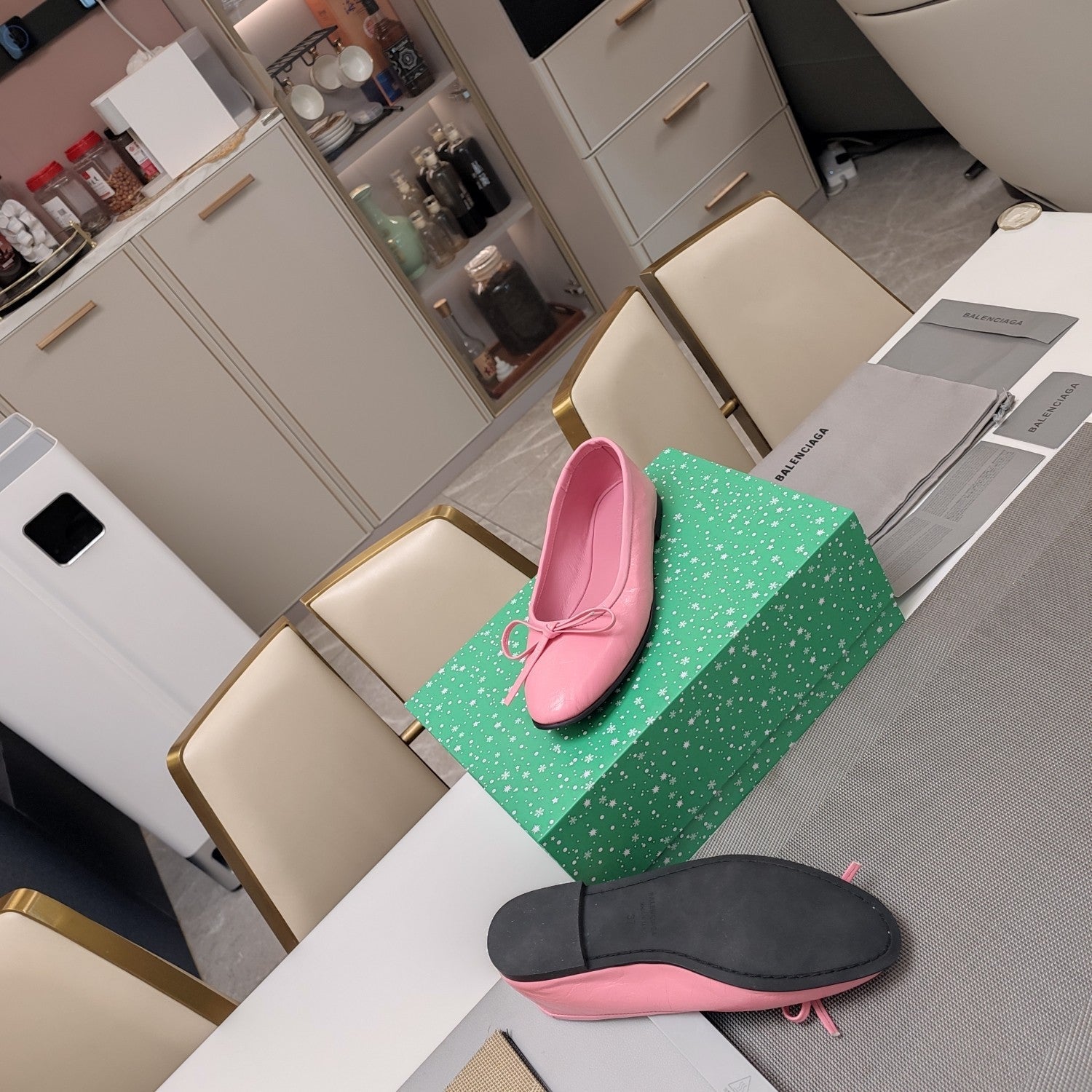 RHINESTONE BALLET FLATS WITH BOW IN SEA PINK WAX-OIL SHEEPSKIN