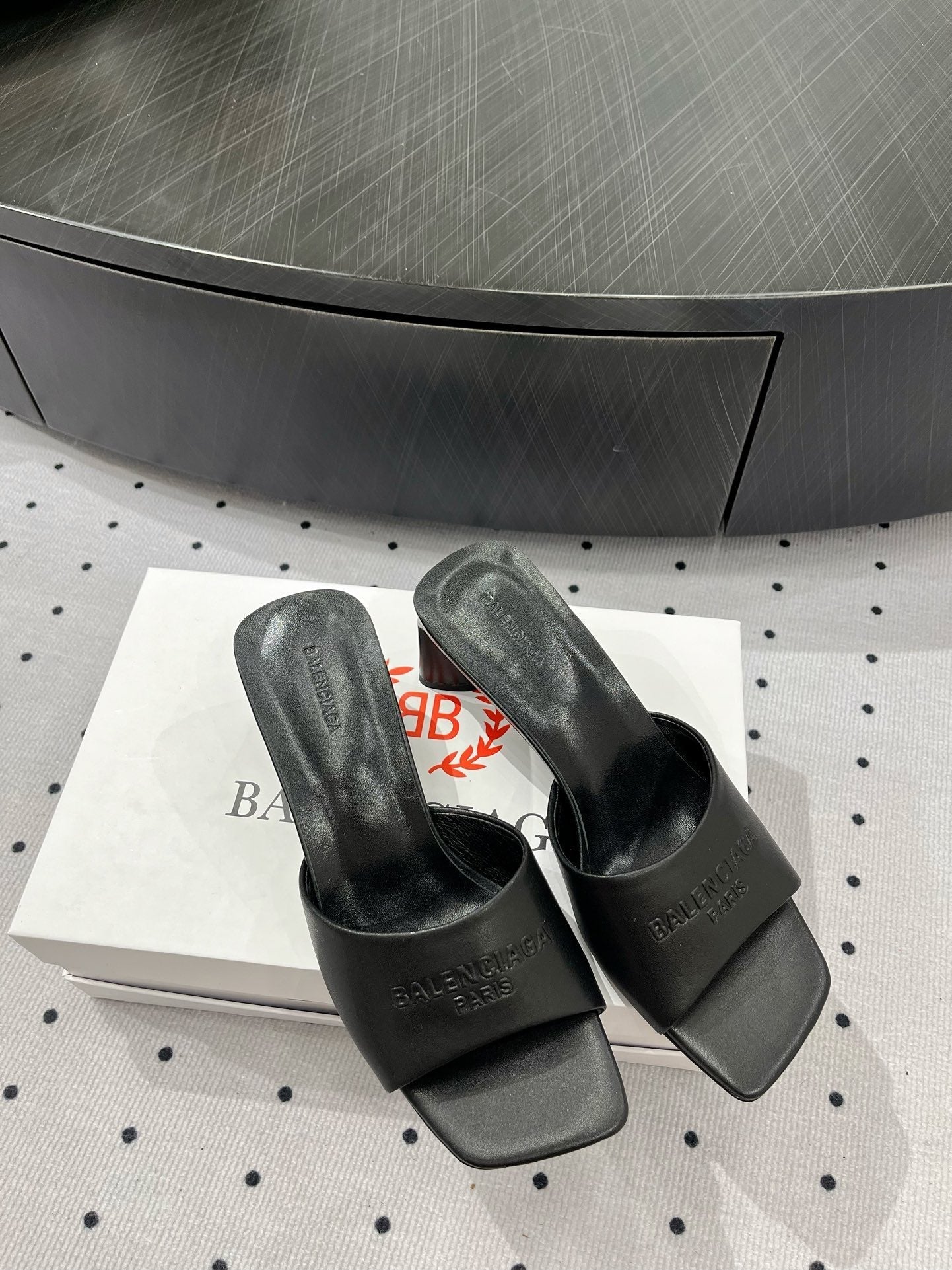 SQUARE-TOE MULES MEDIUM HEEL IN BLACK CALFSKIN LOGO EMBOSSED