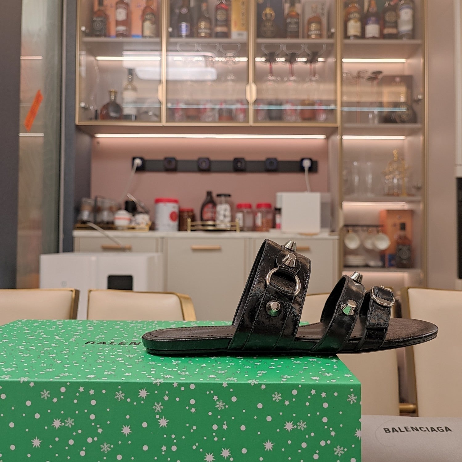 STRAPPY FLAT SANDALS IN BLACK STUDDED WAX-OIL SHEEPSKIN