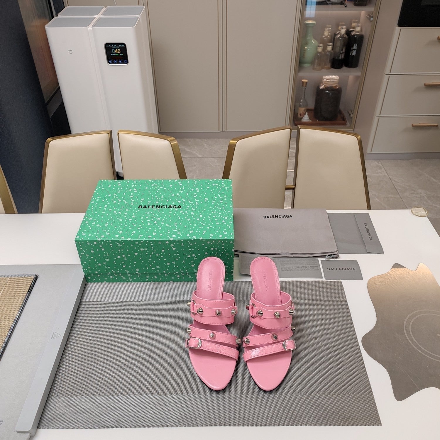 STRAPPY HIGH-HEELED SANDALS IN WEWAK PINK STUDDED WAX-OIL SHEEPSKIN