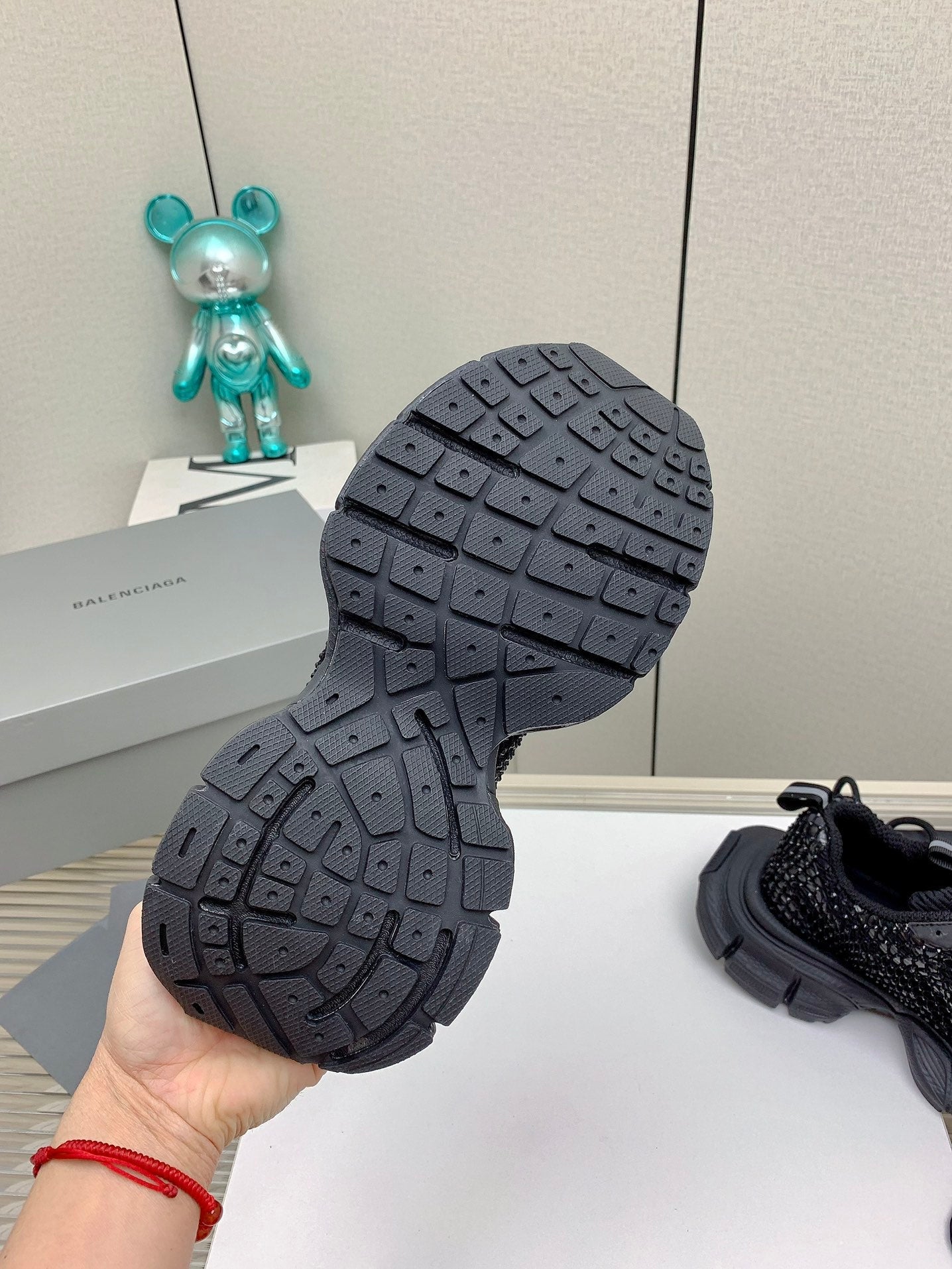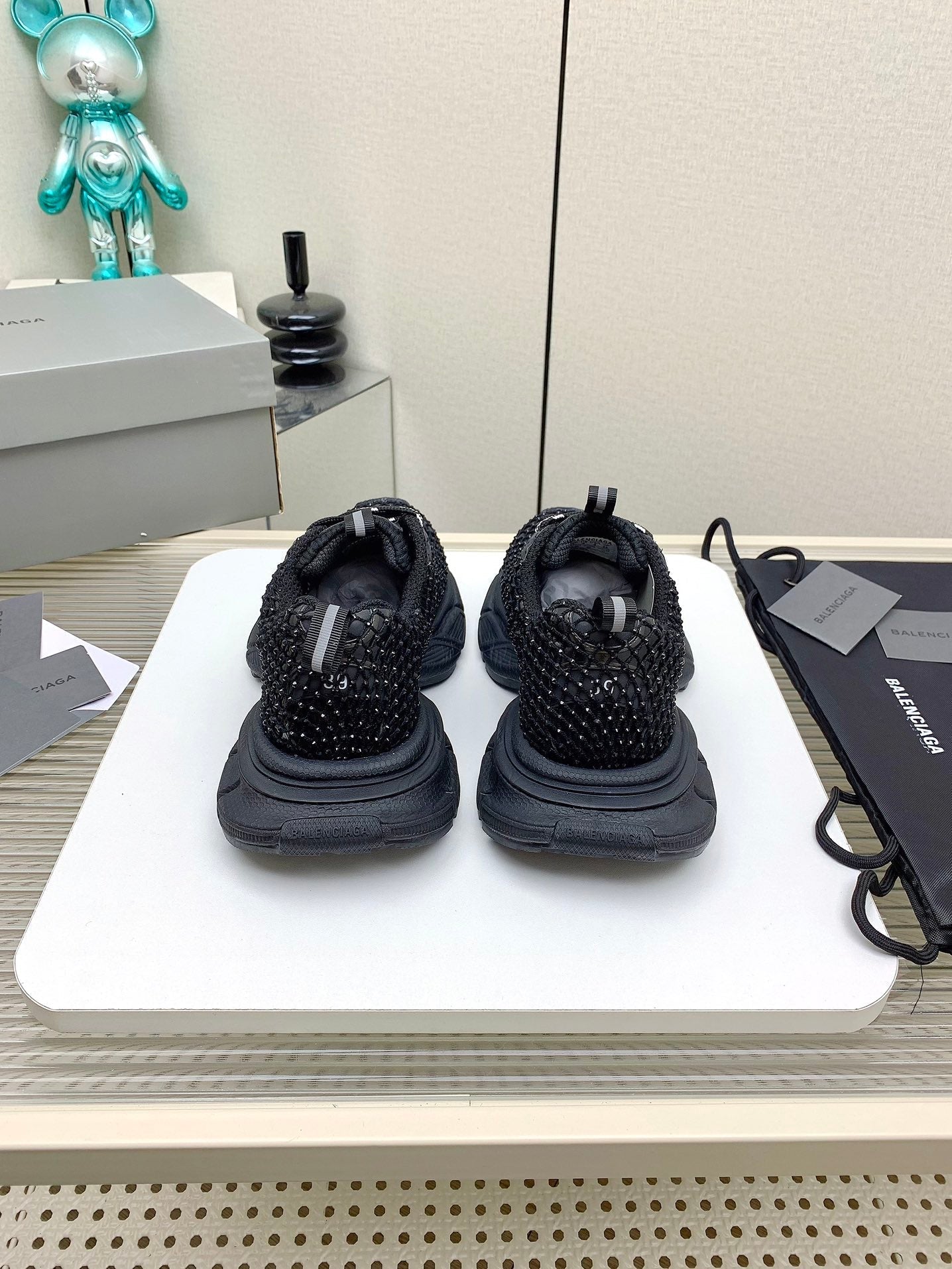 XL FISHNET SNEAKER IN BLACK MESH, POLYURETHANE, POLYESTER WITH RHINESTONES