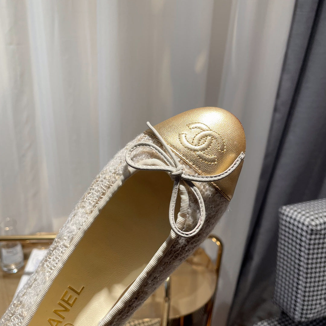 ballet flat gold white tweed gold metalic calfskin