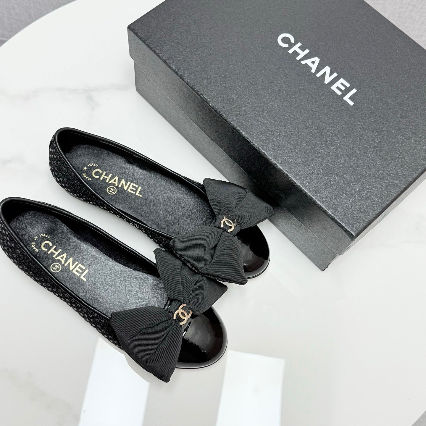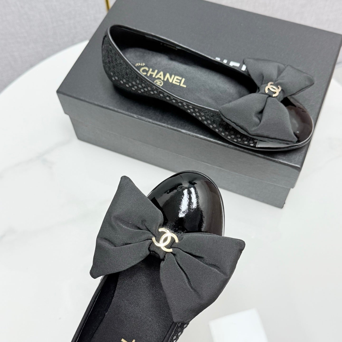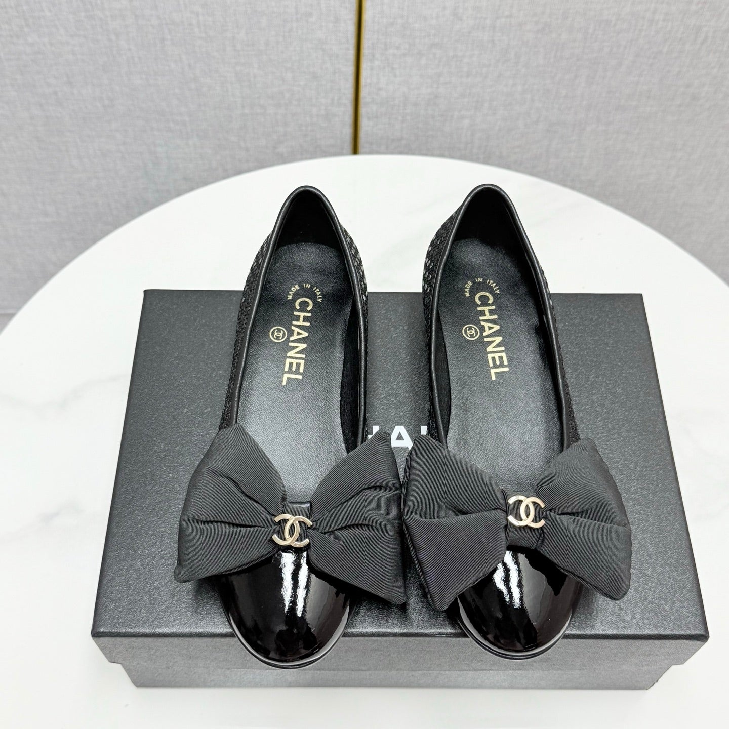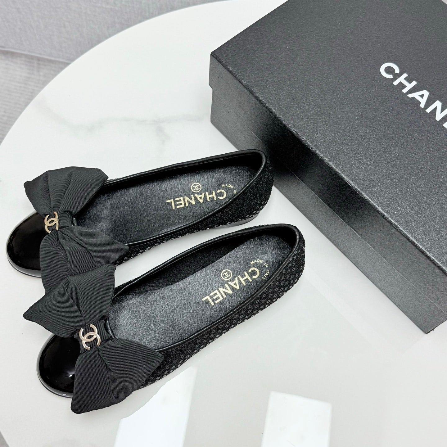 CC 25 Bow Ballet Flats Black Canvas And Grosgrain 368808