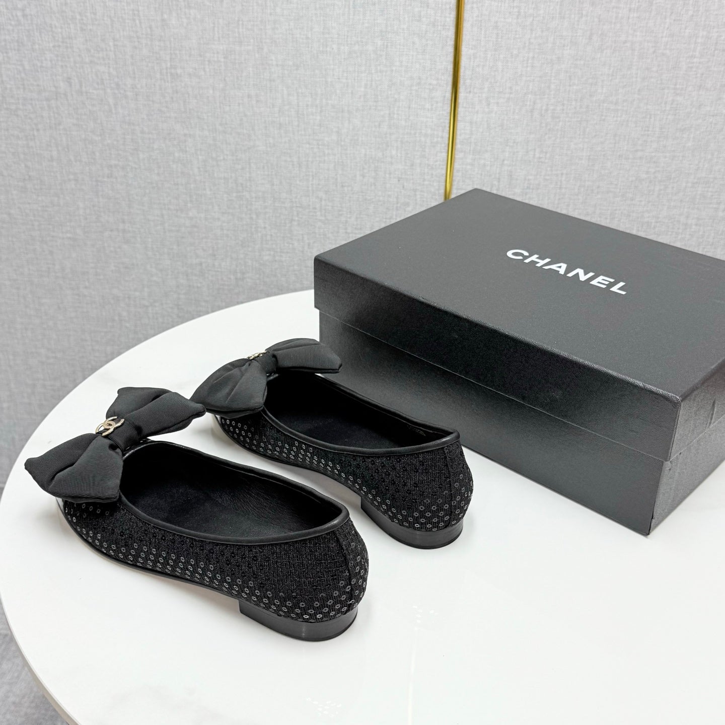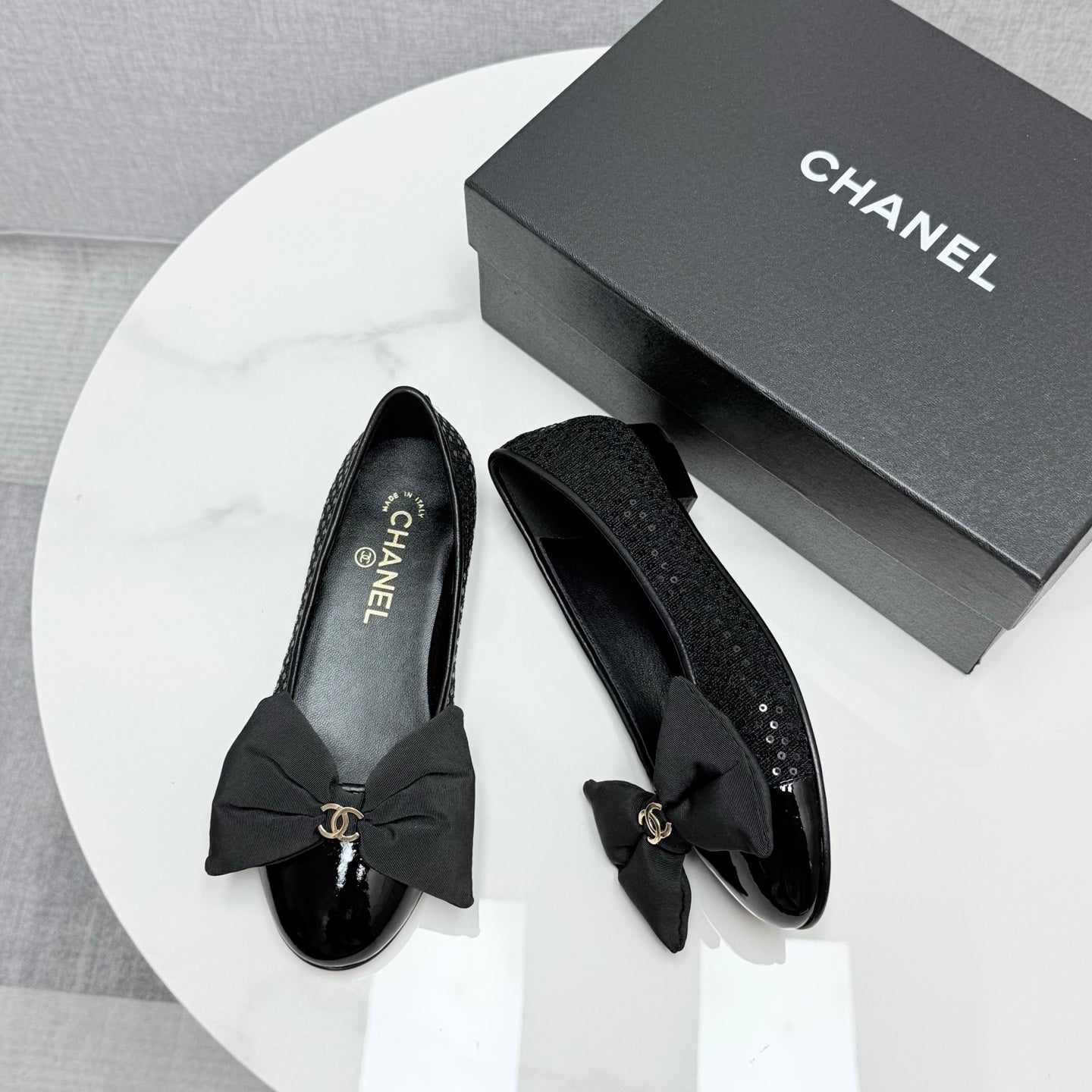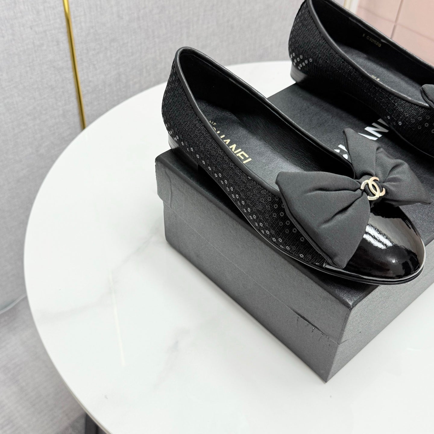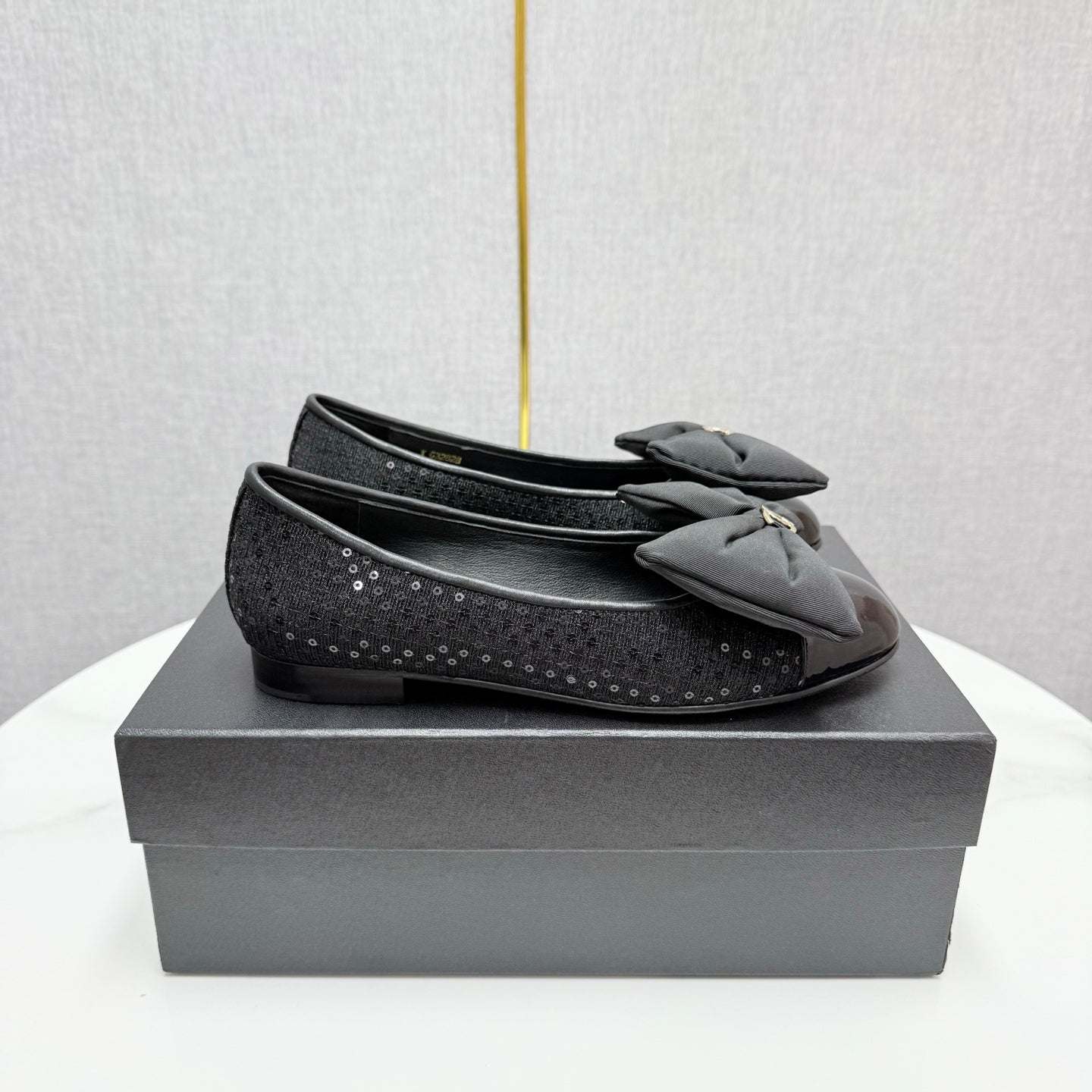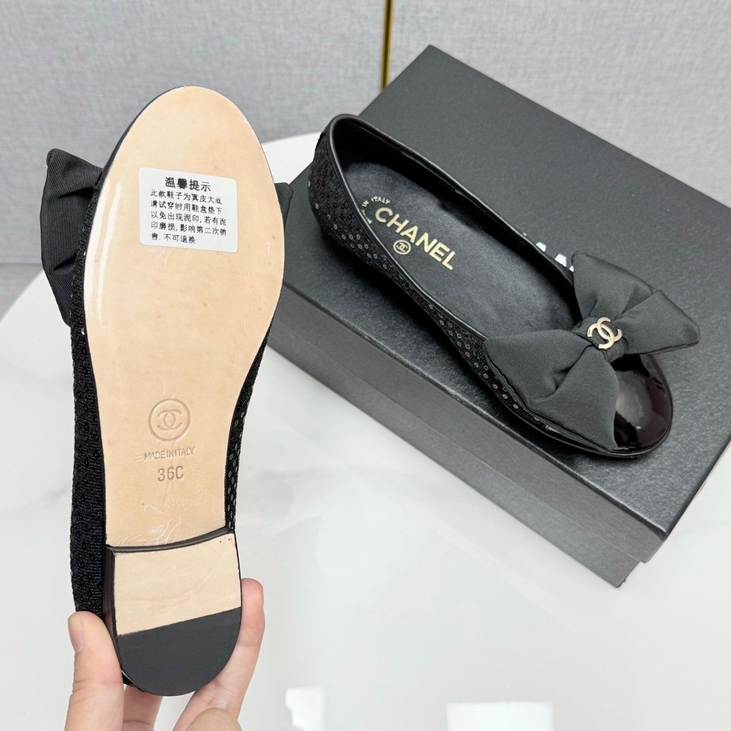 CC 25 Bow Ballet Flats Black Canvas And Grosgrain 368808