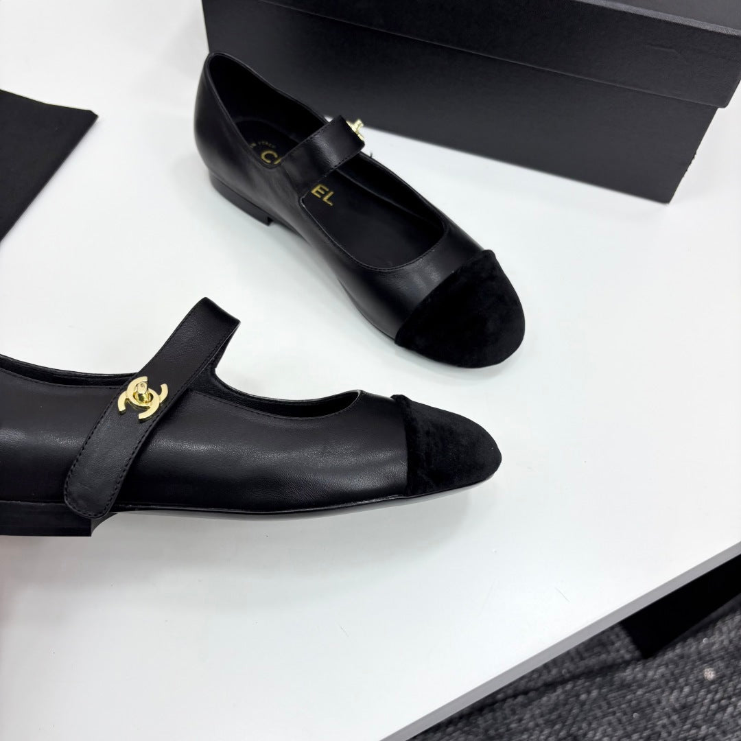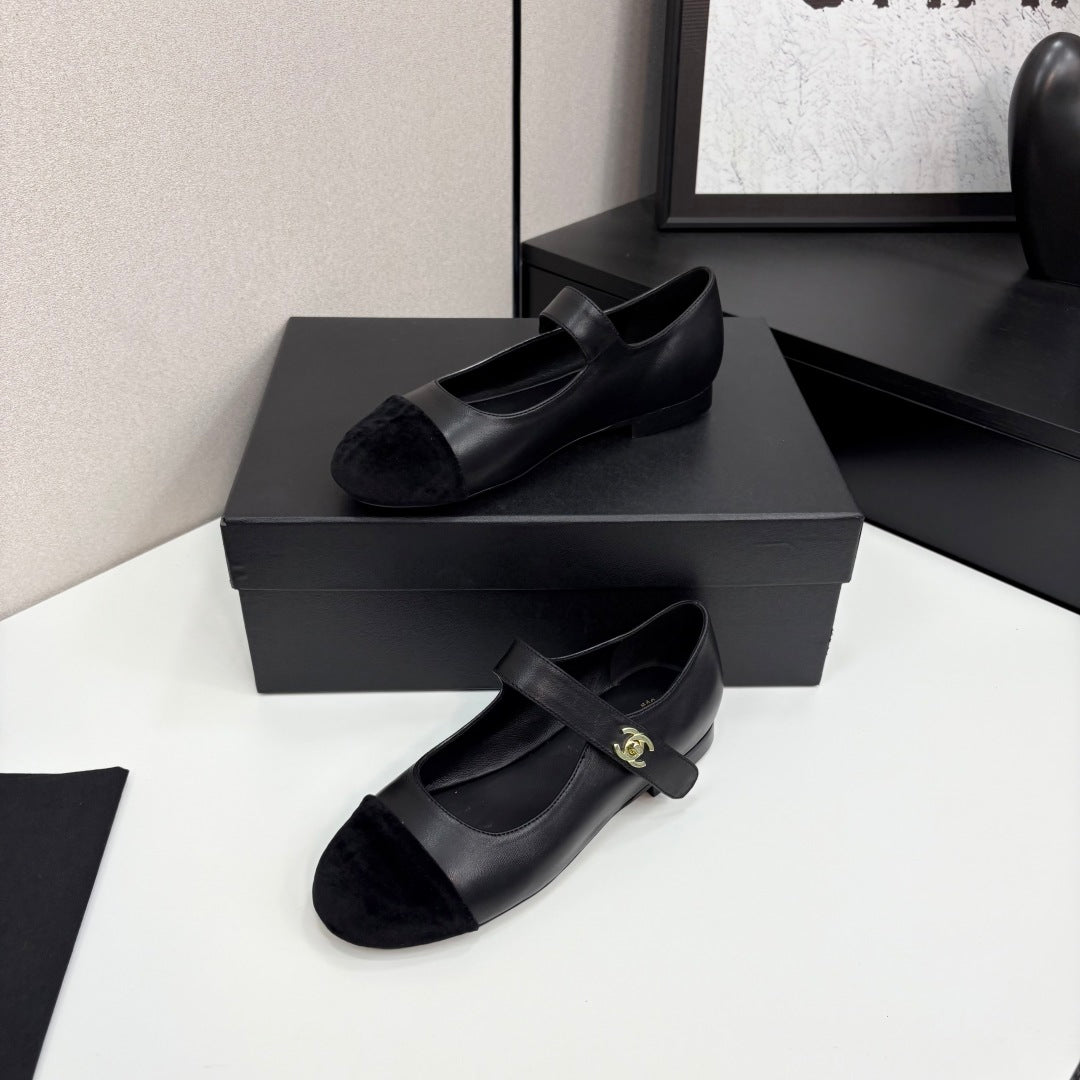 CC 25 Mary Janes In Black Sheepskin And Grosgrain 352467