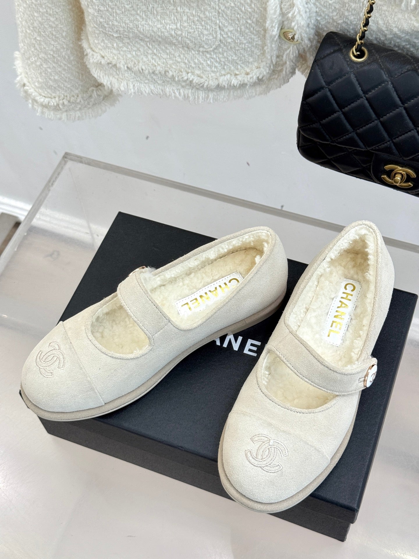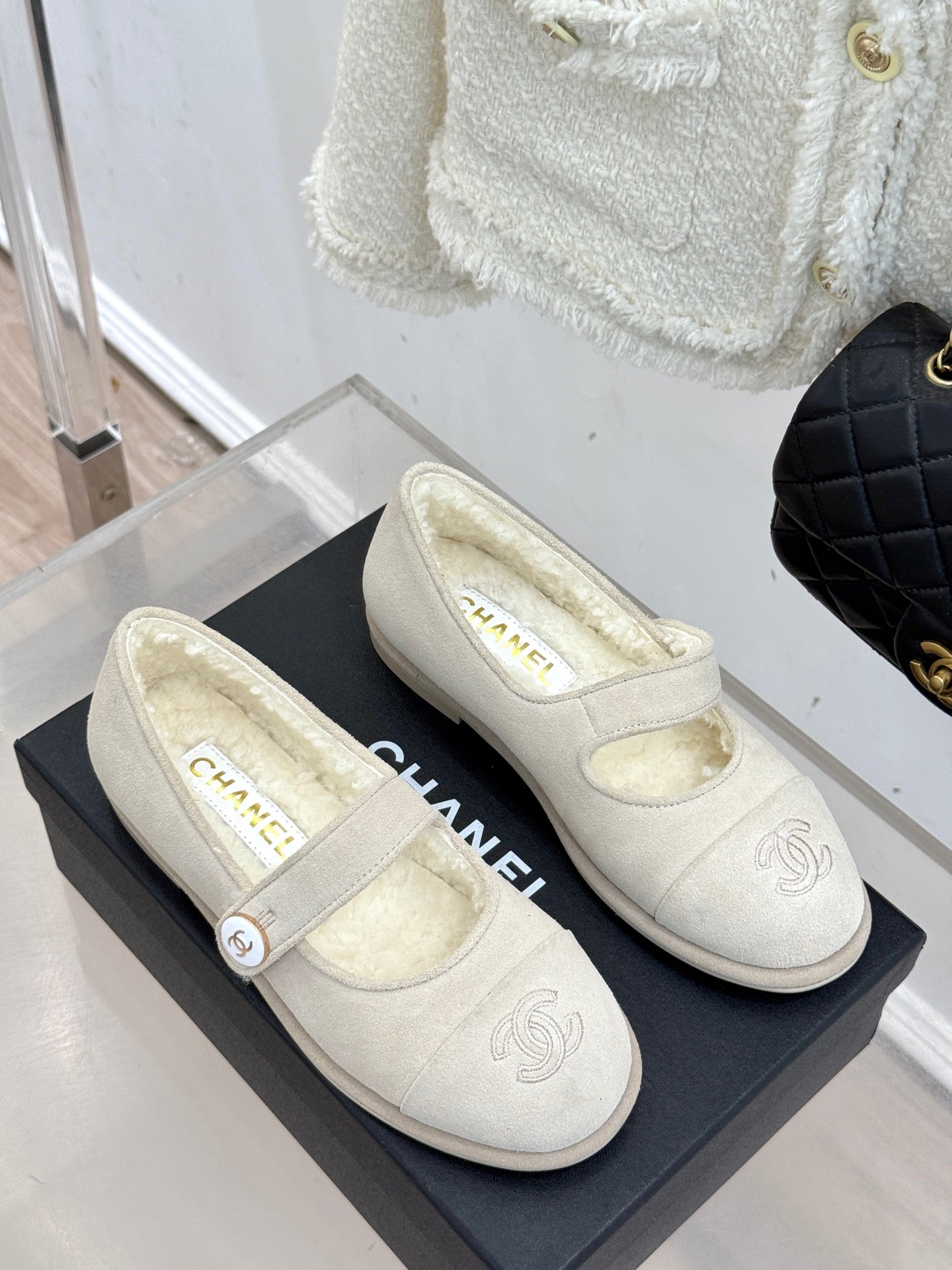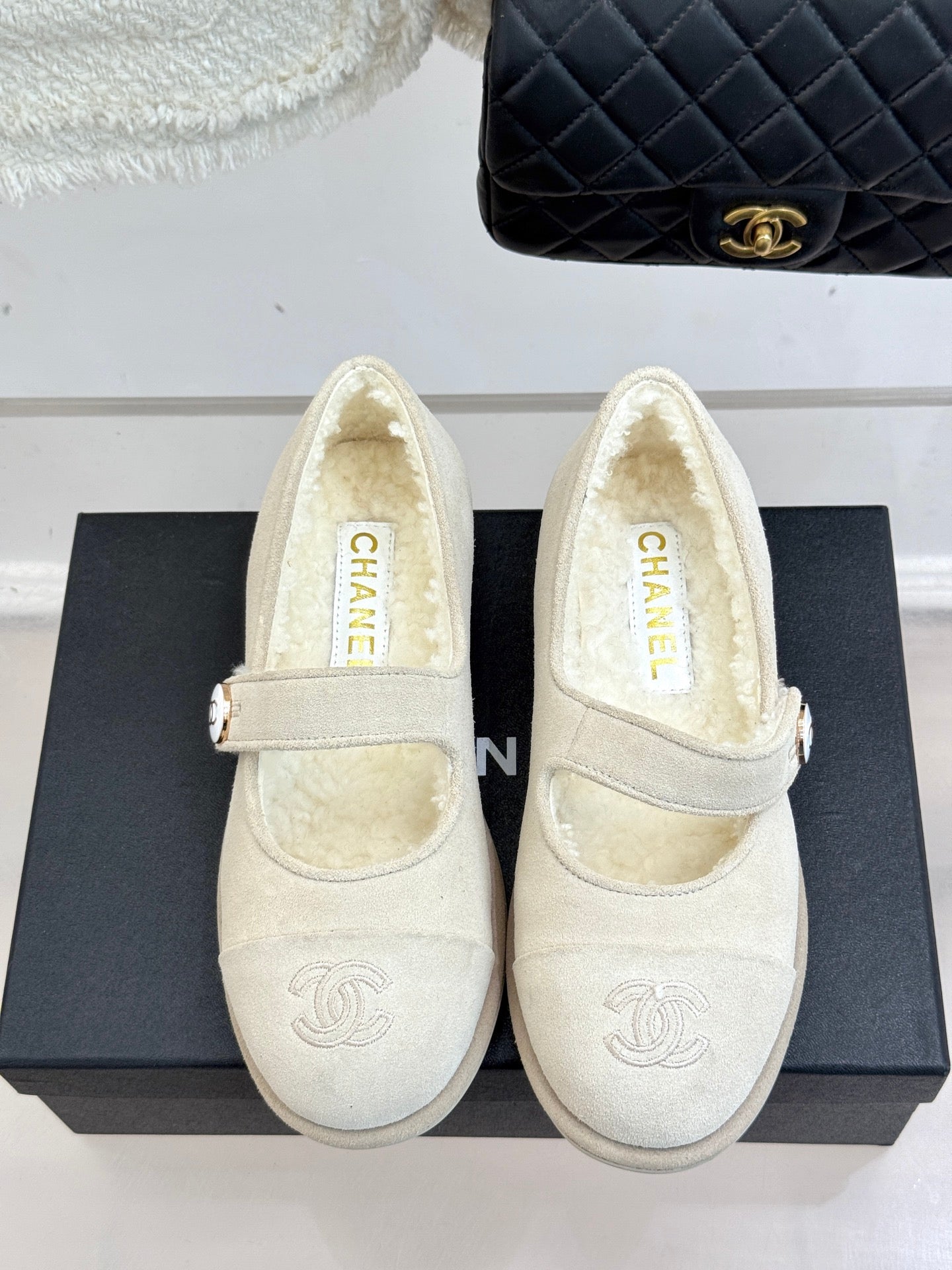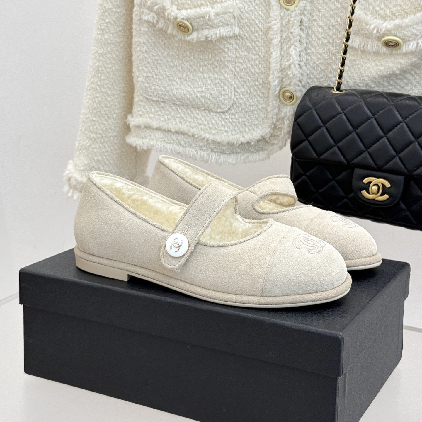 CC 25A Mary Janes Beige Suede And Lambswool 404662