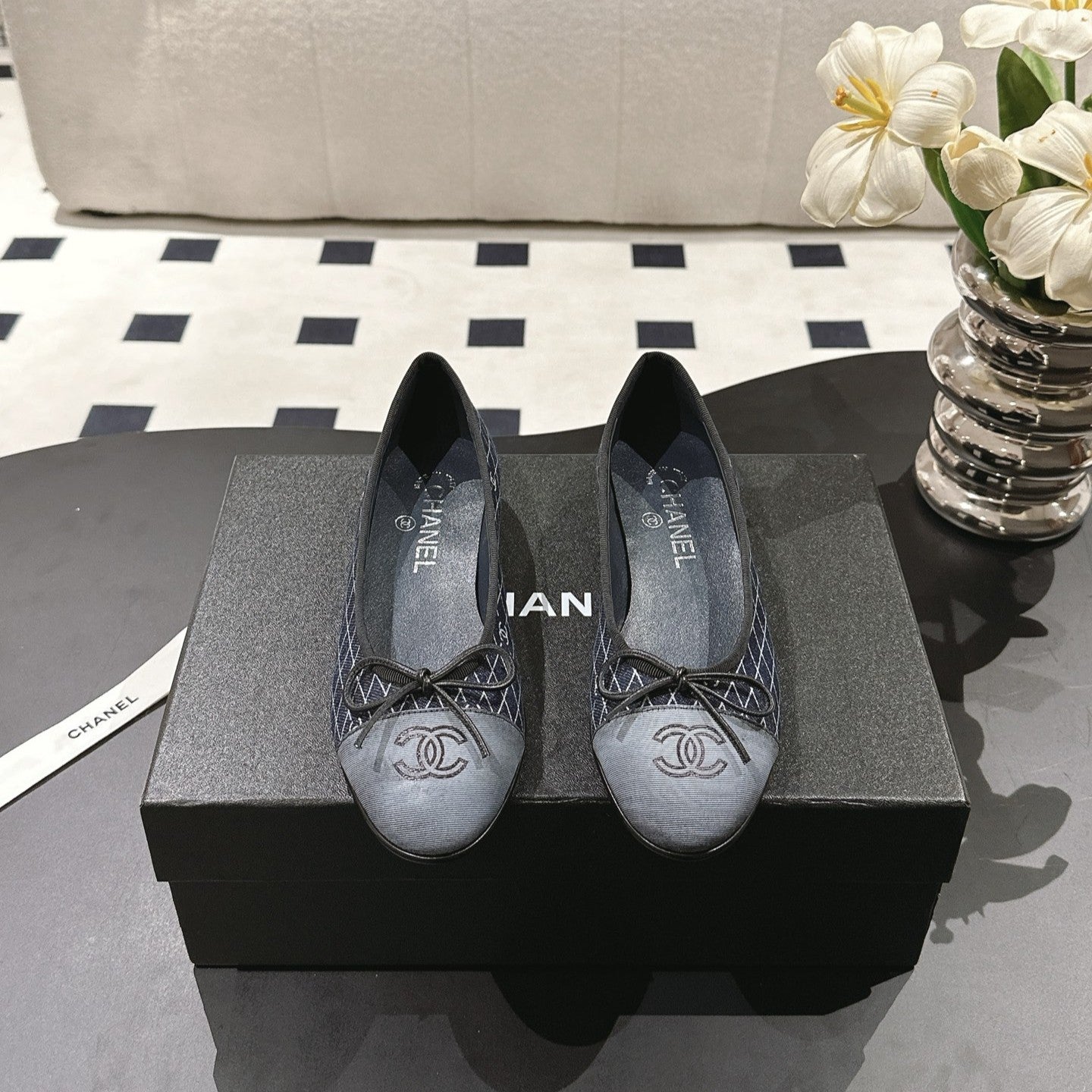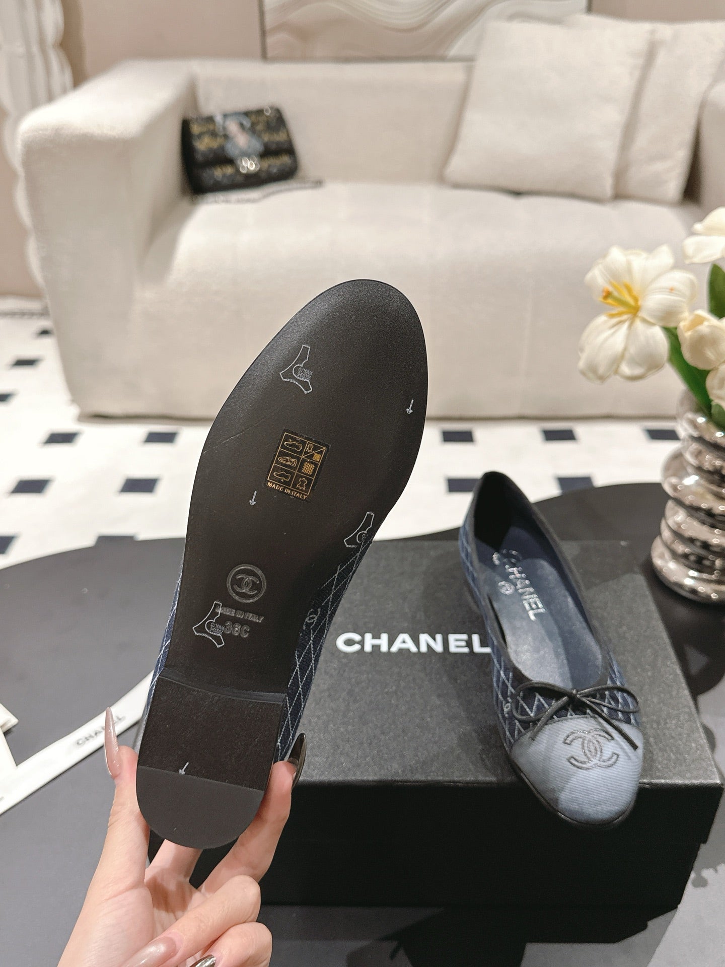 cc 25c ballet flat cross line pattern dark blue denim 237480