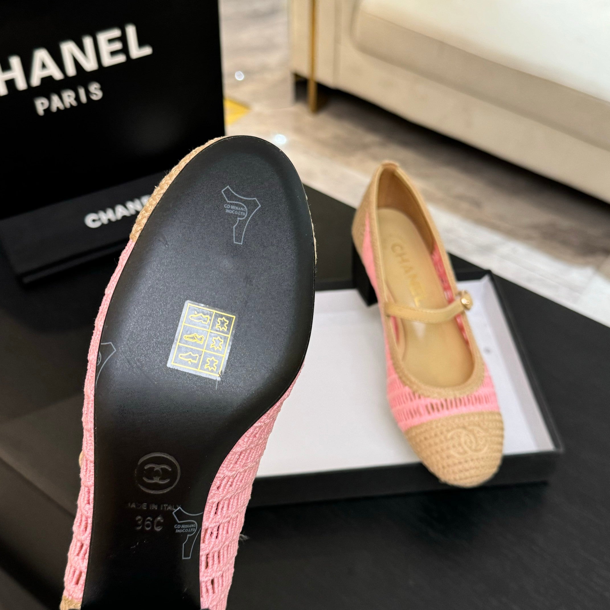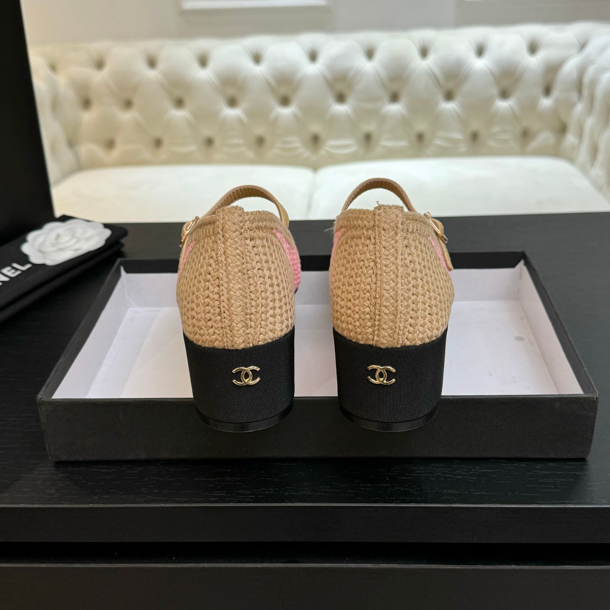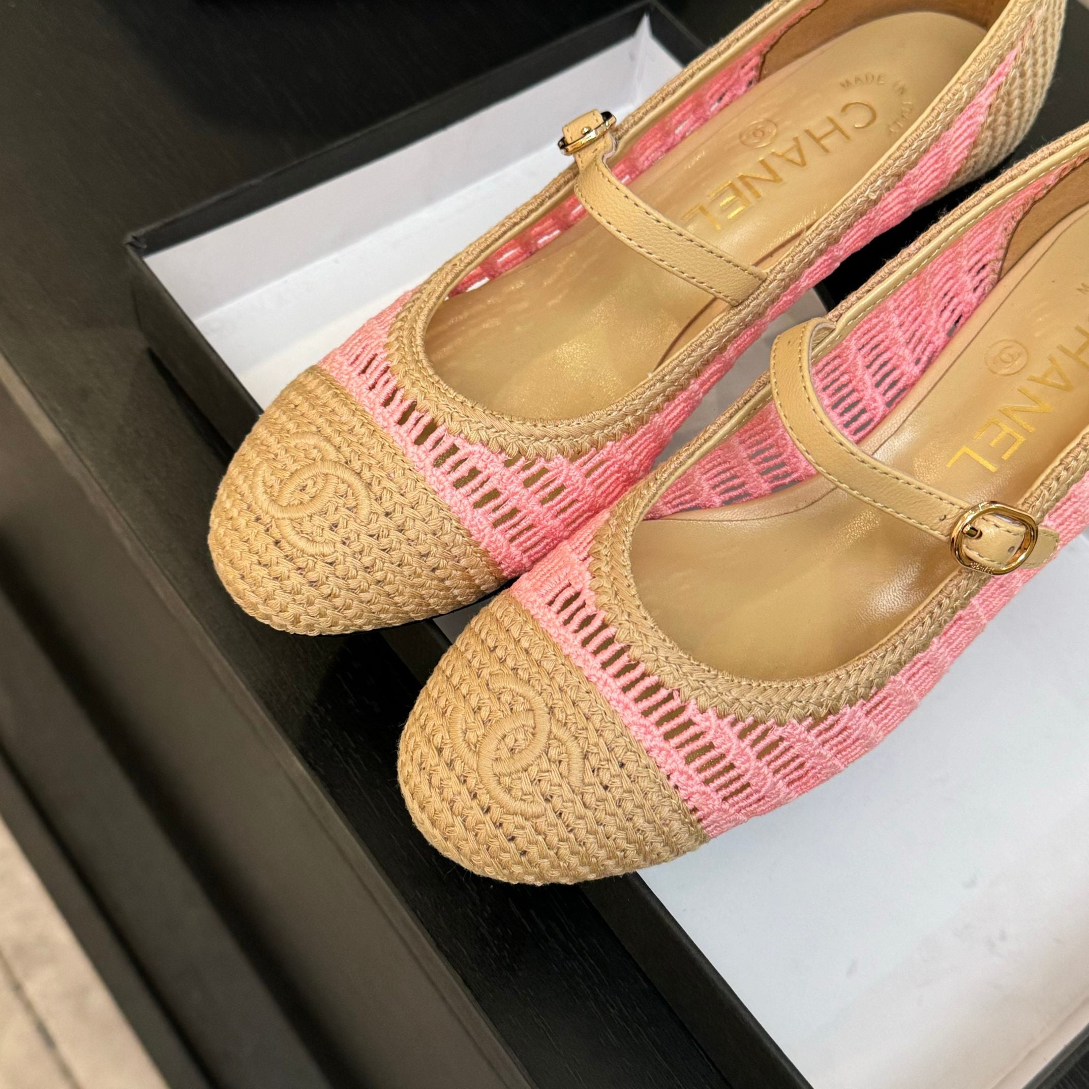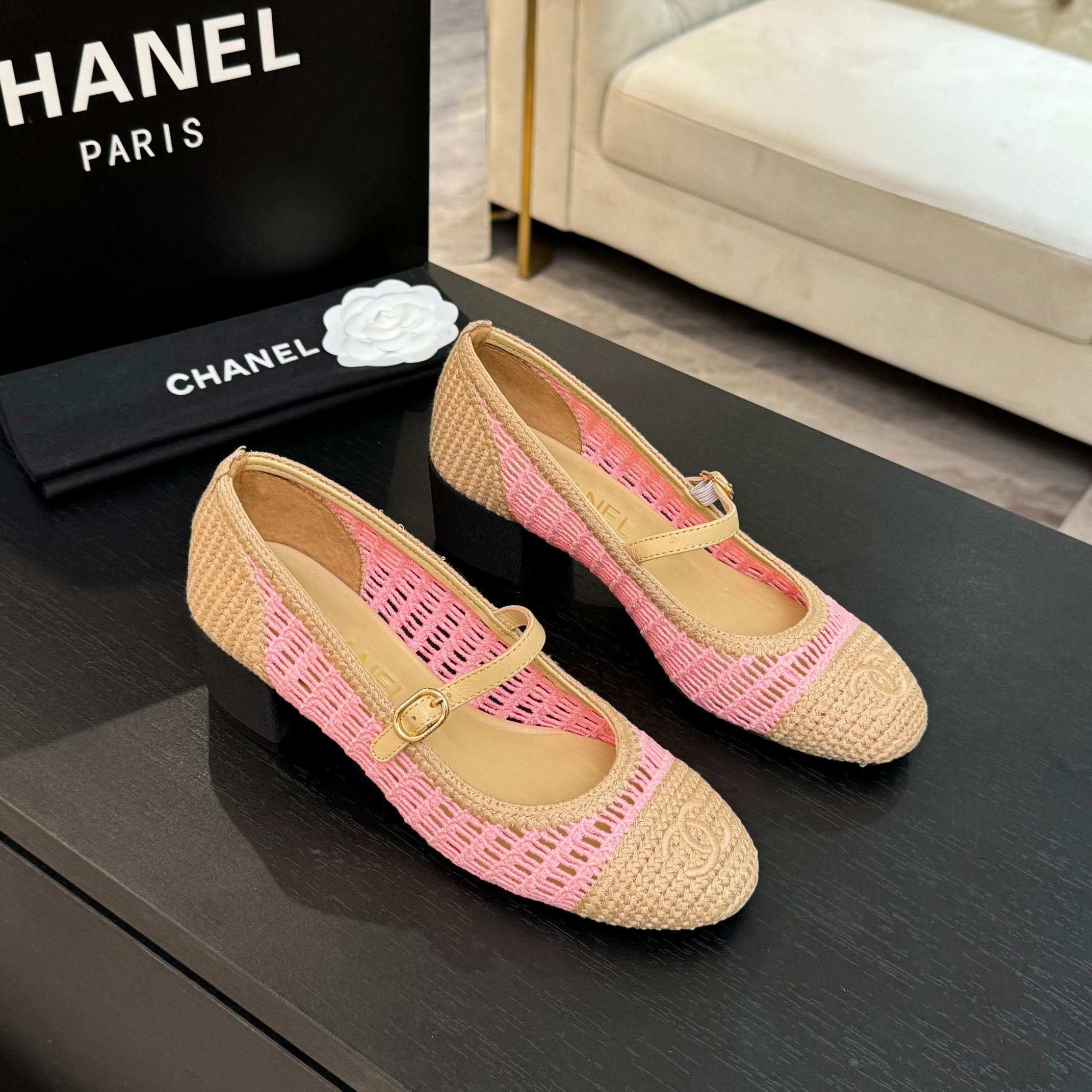 CC 25P Mary Jane 50mm Beige Pink Raffia 373788