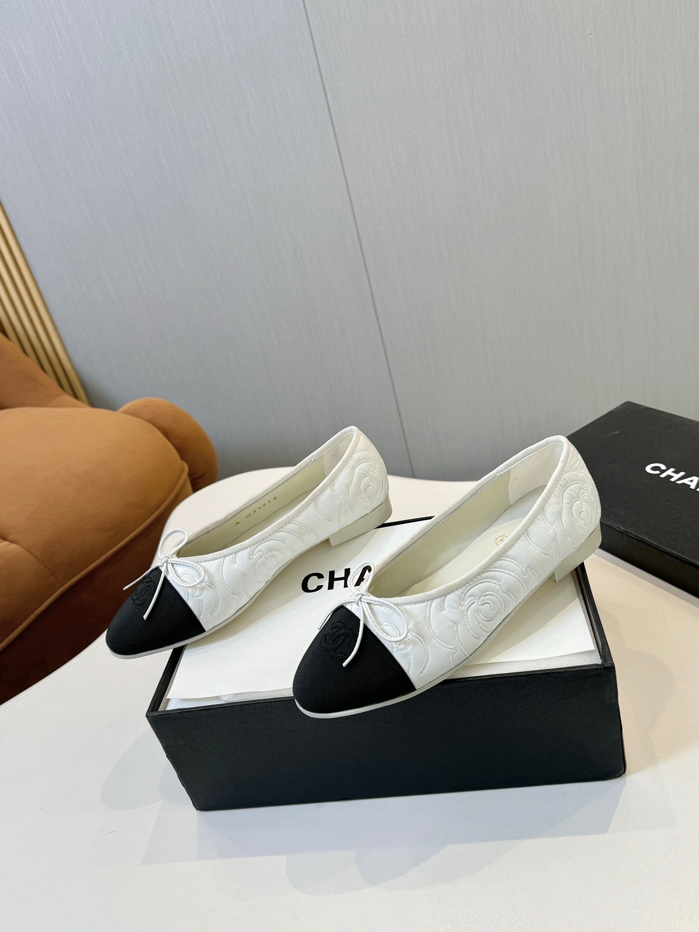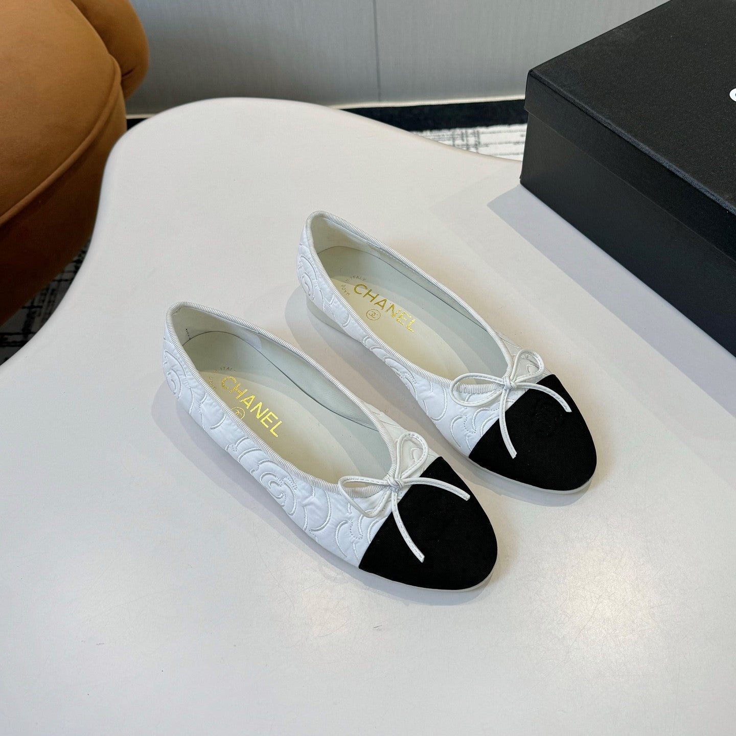 CC 25ss Métiers d’art Ballet Flats 10mm Black White Fabric Grosgrain 417039