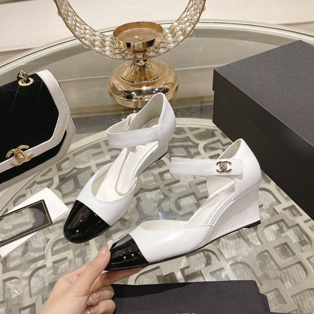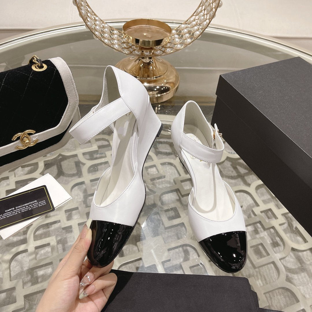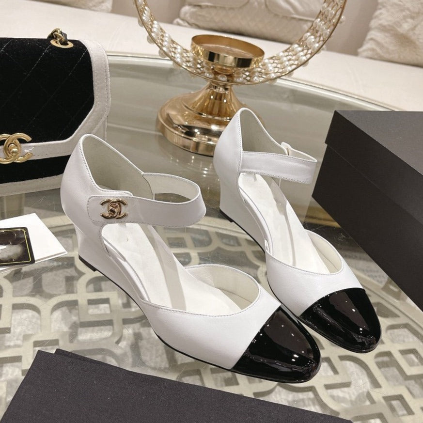 cc ballet 6cm white black wedge heel