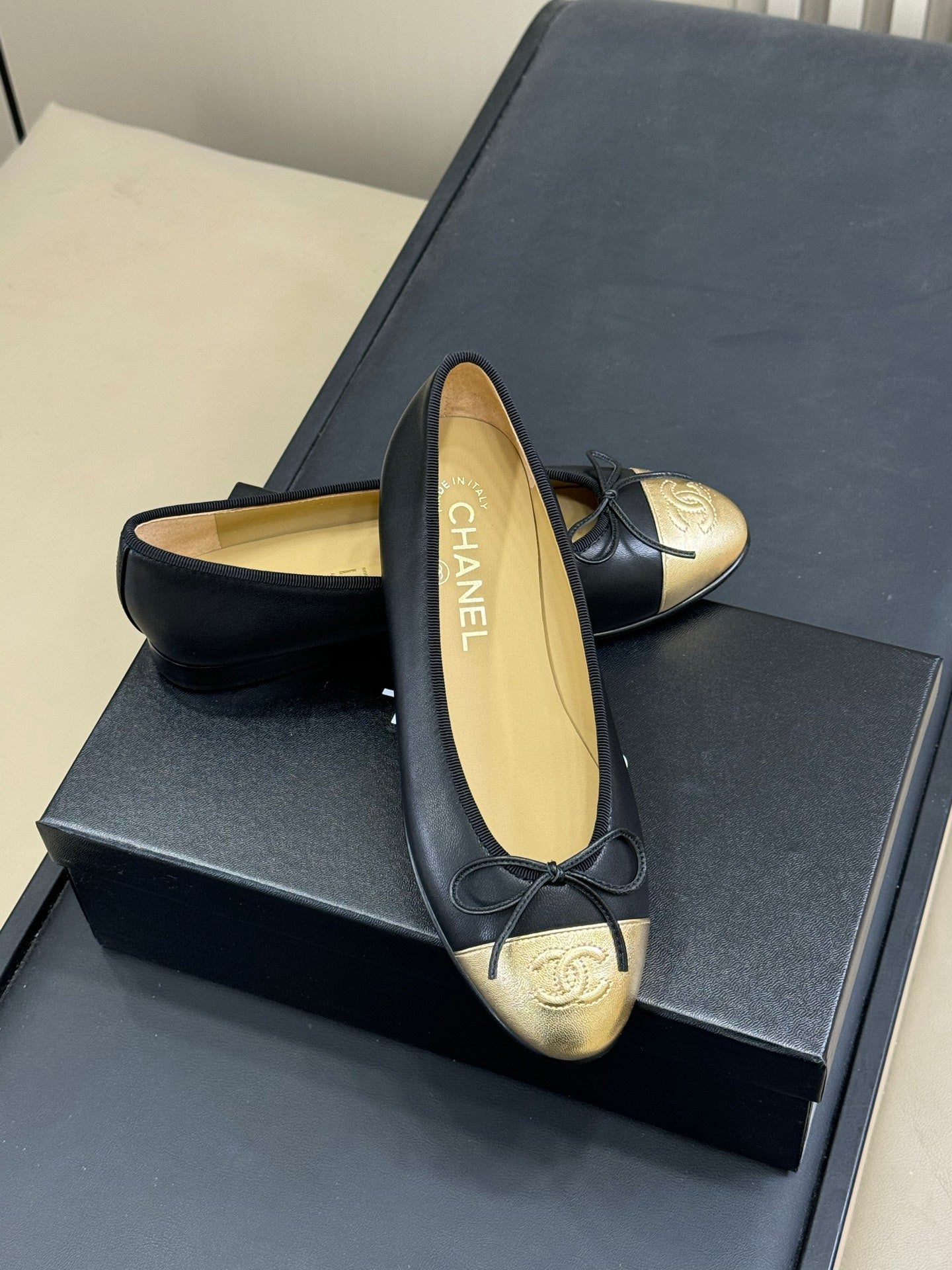 CC Classic Ballet Flats Black Gold Lambskin 282277