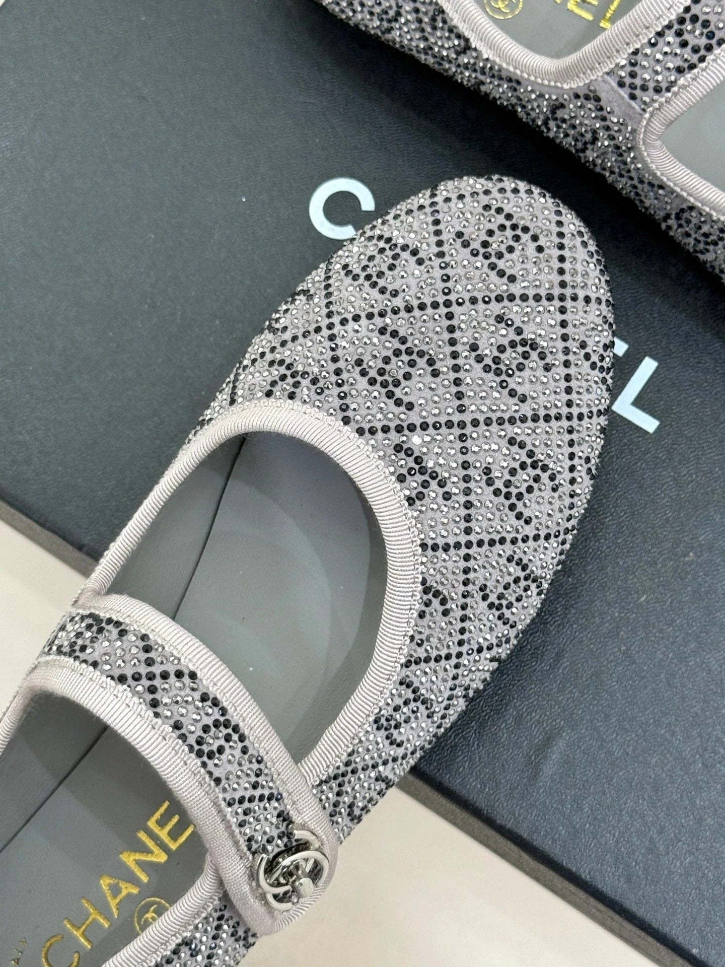 CC Flat Mary Jane 25ss In Grey Embellished With Rhinestones