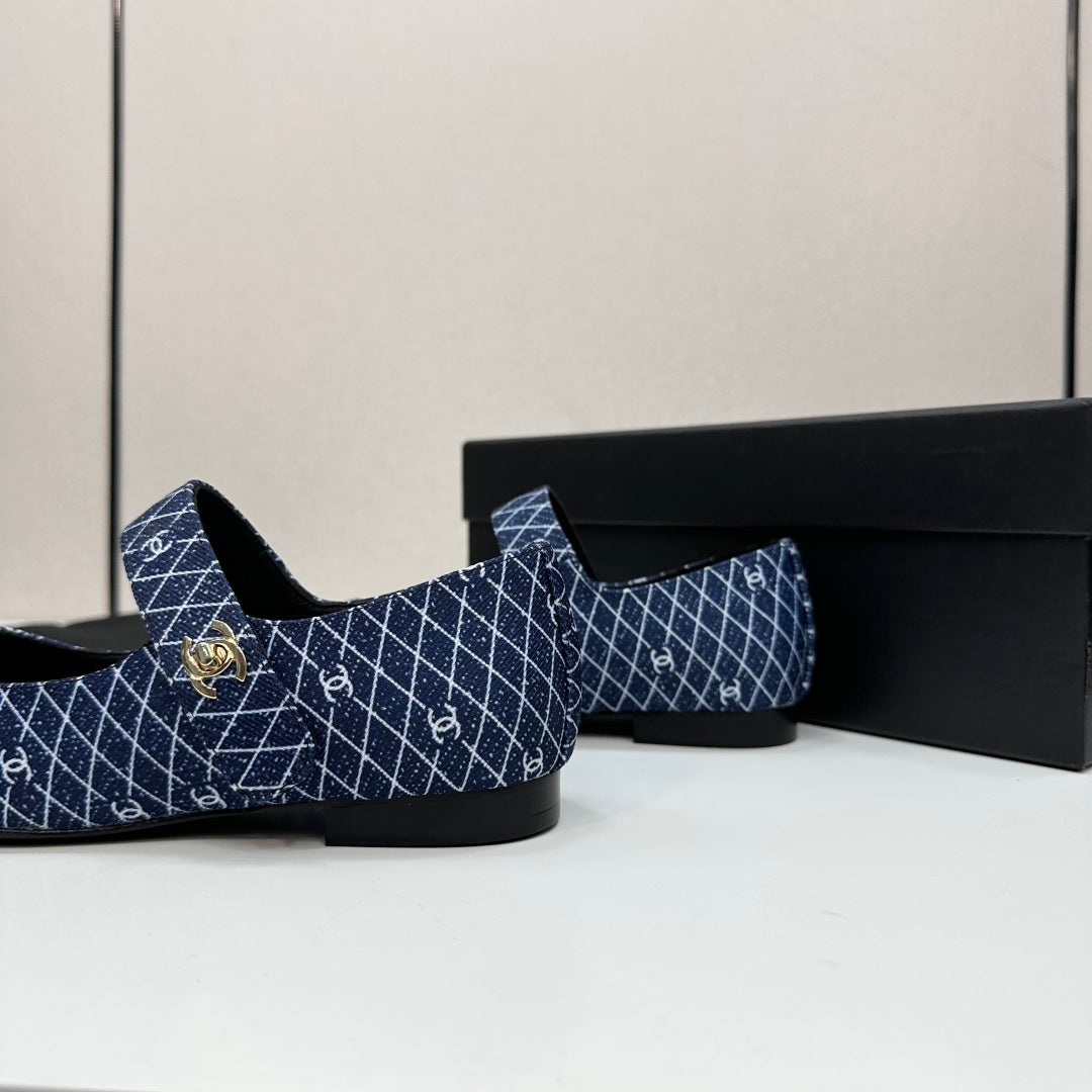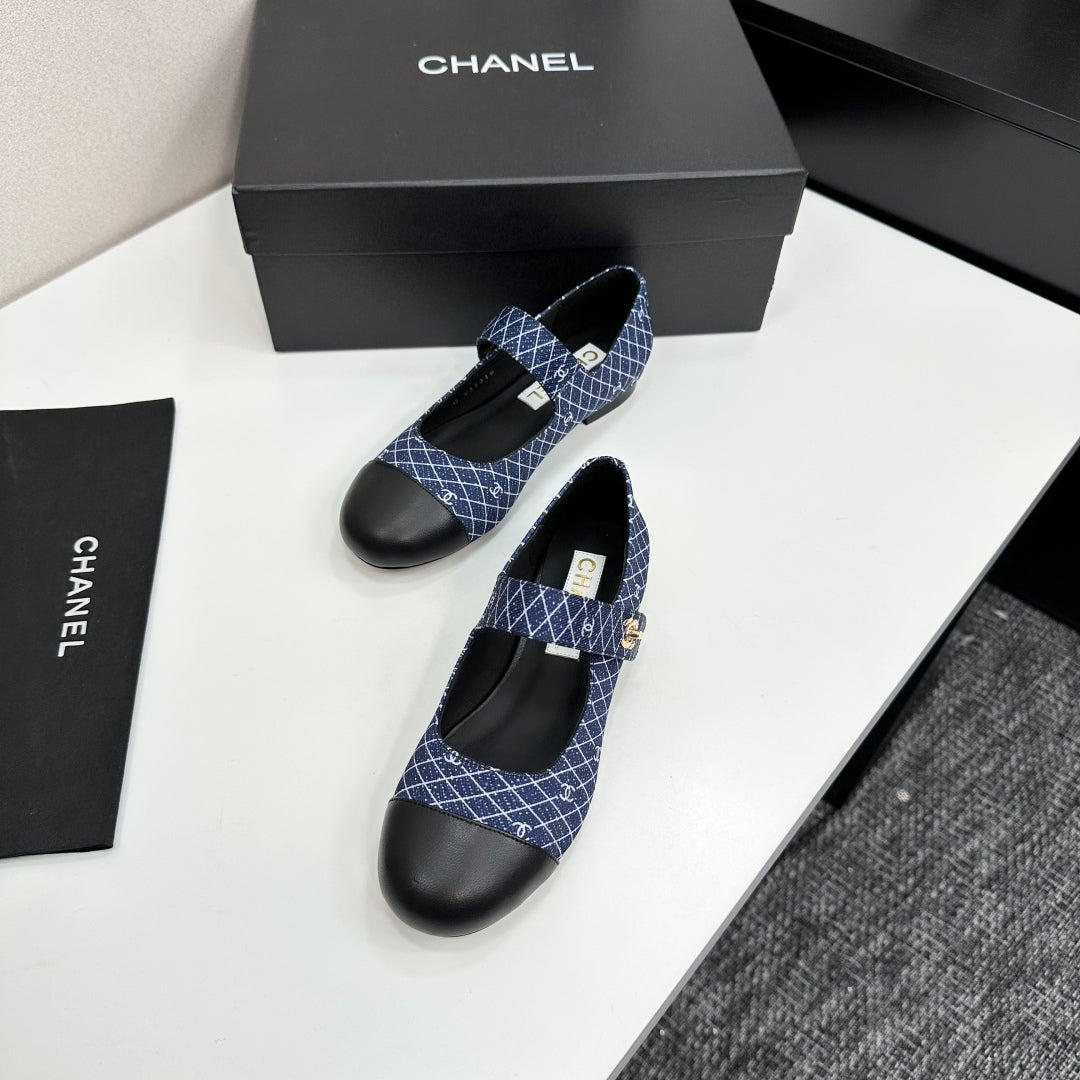 CC25 Mary Janes Navy Blue Fabric And Black Cowhide 352508