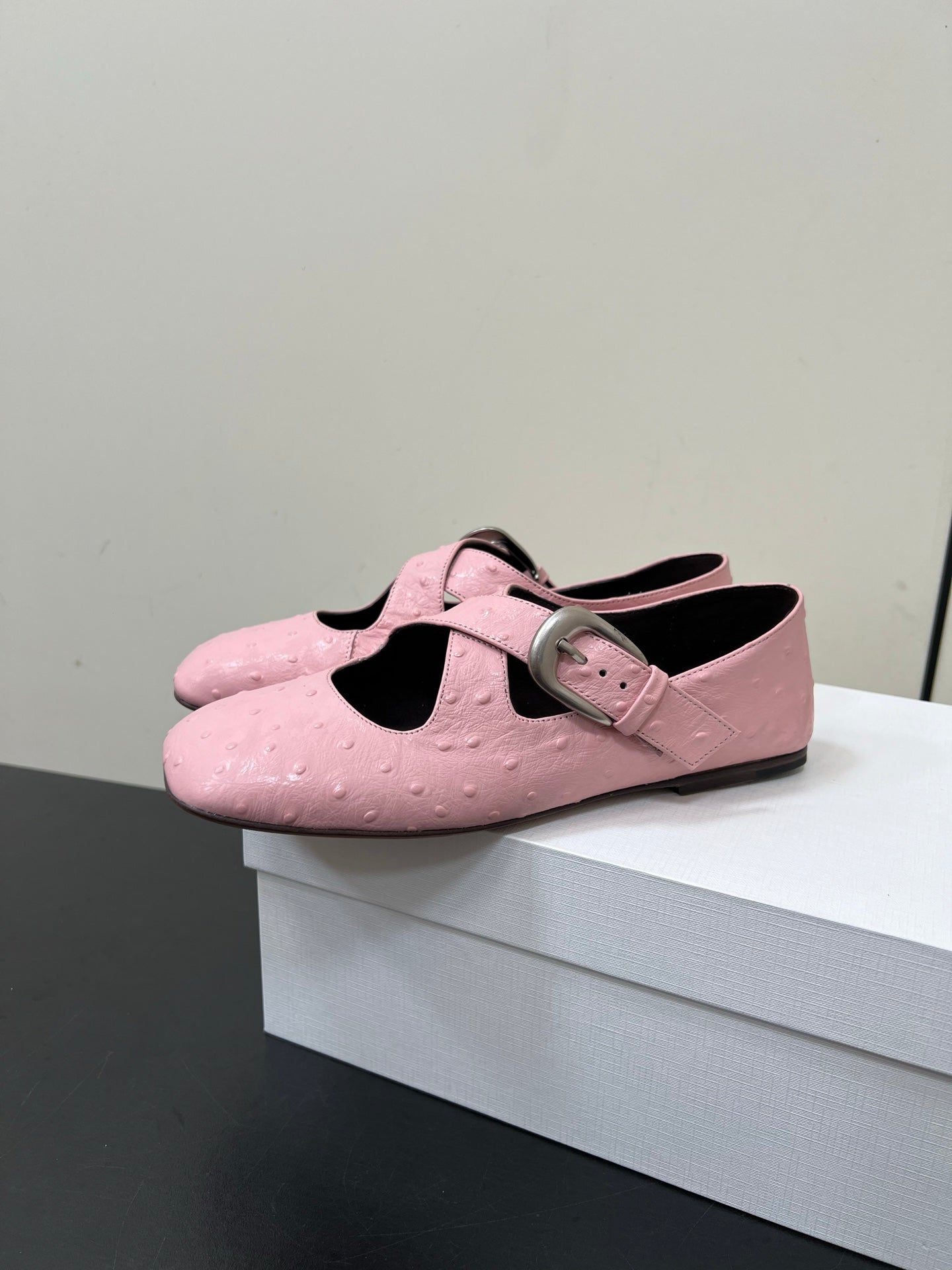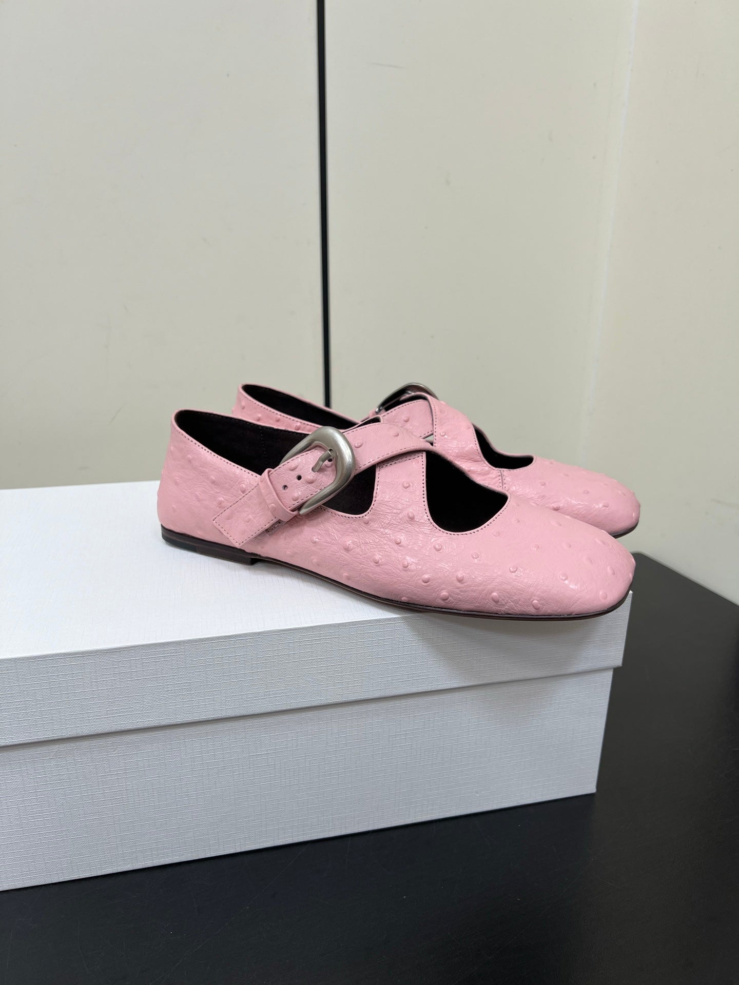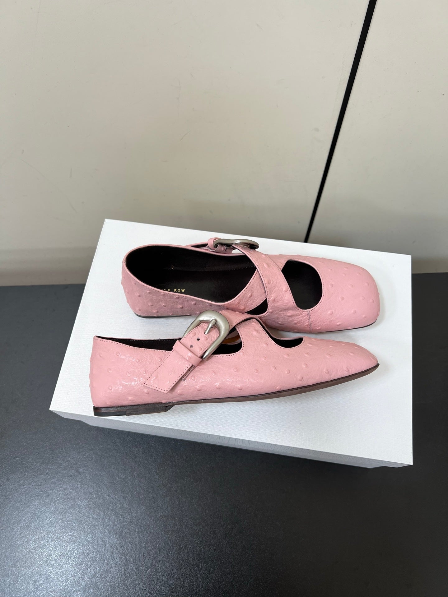 The Row Gaia Criss Mary Jane Pink Ostrich Leather 340001